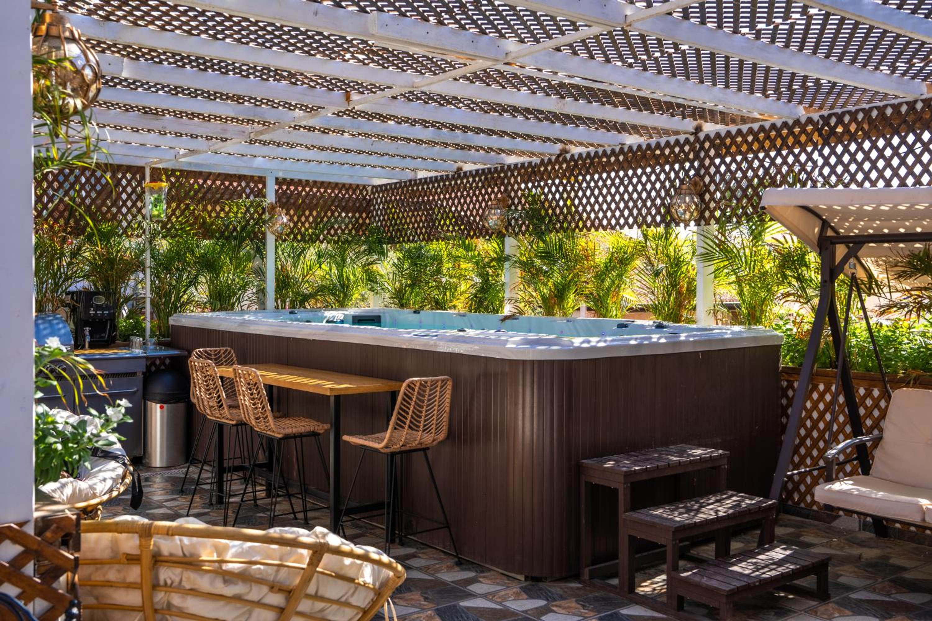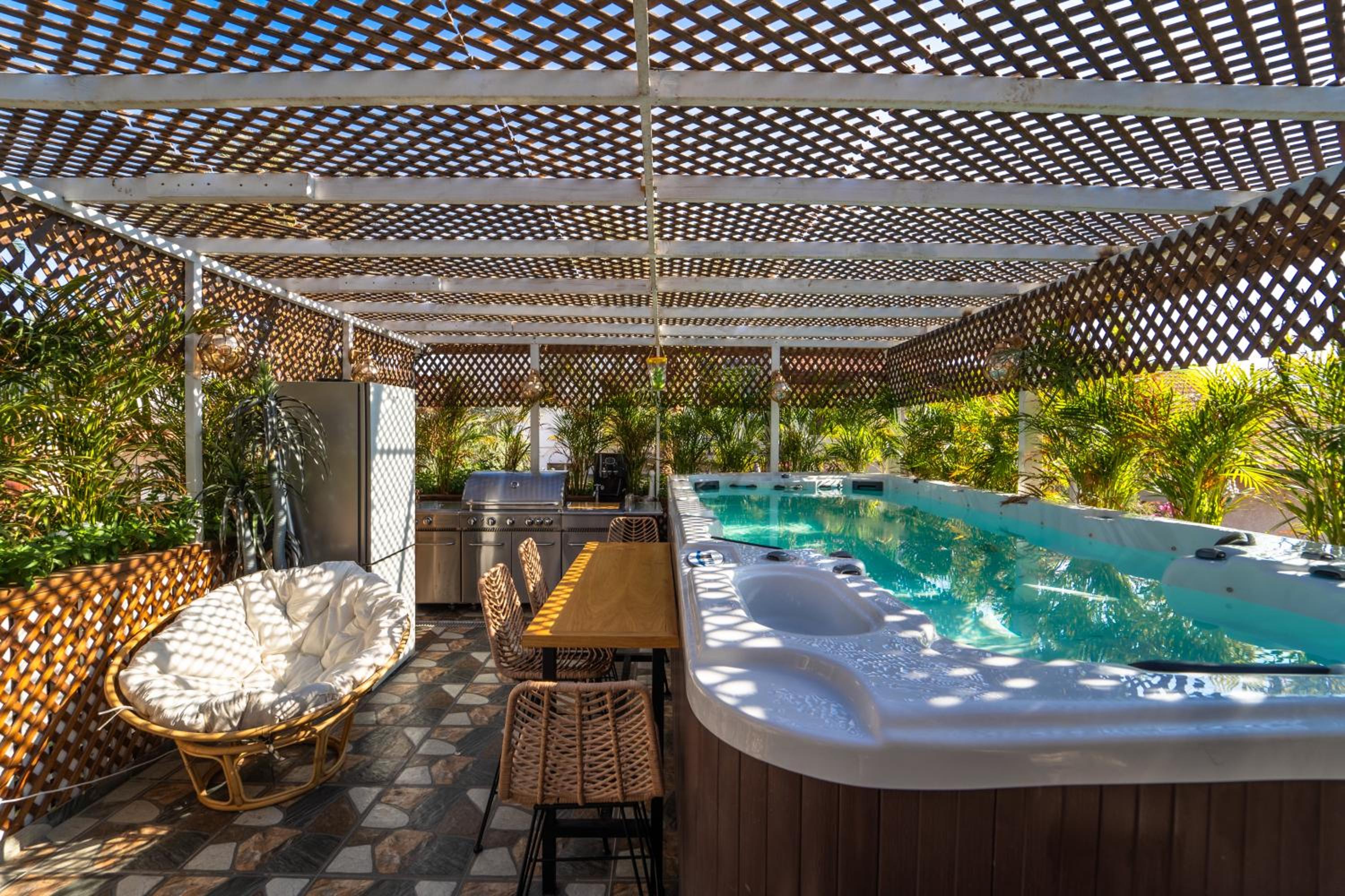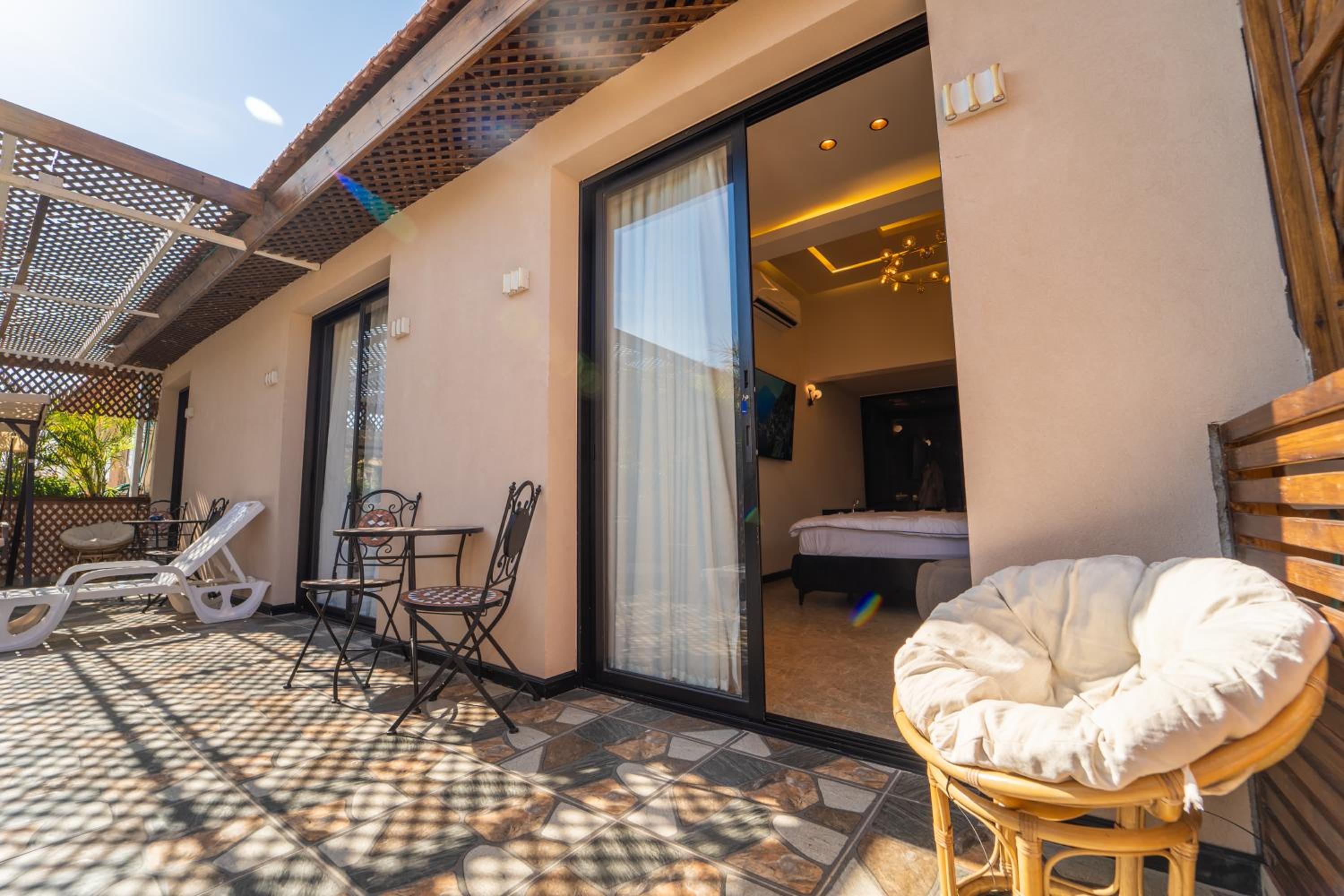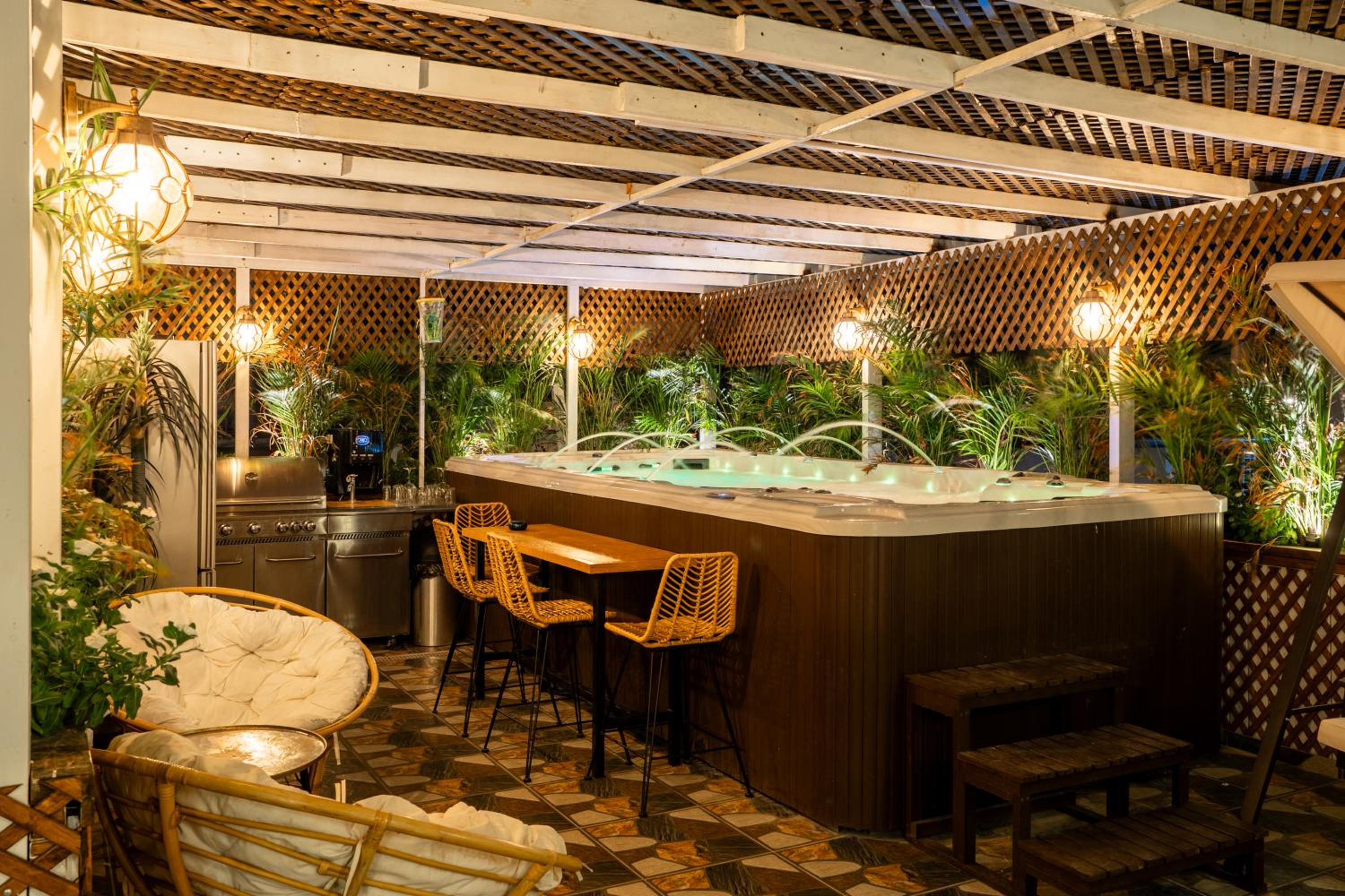 Exceptional private and quiet place for having good time and rest in Eilat resort . The place it self good for lonely couples with kids as a groops of 3-4 families. Huge jacuzzi outside with barbeque staff , small jacuzzies in the rooms as well. Place it self very green .