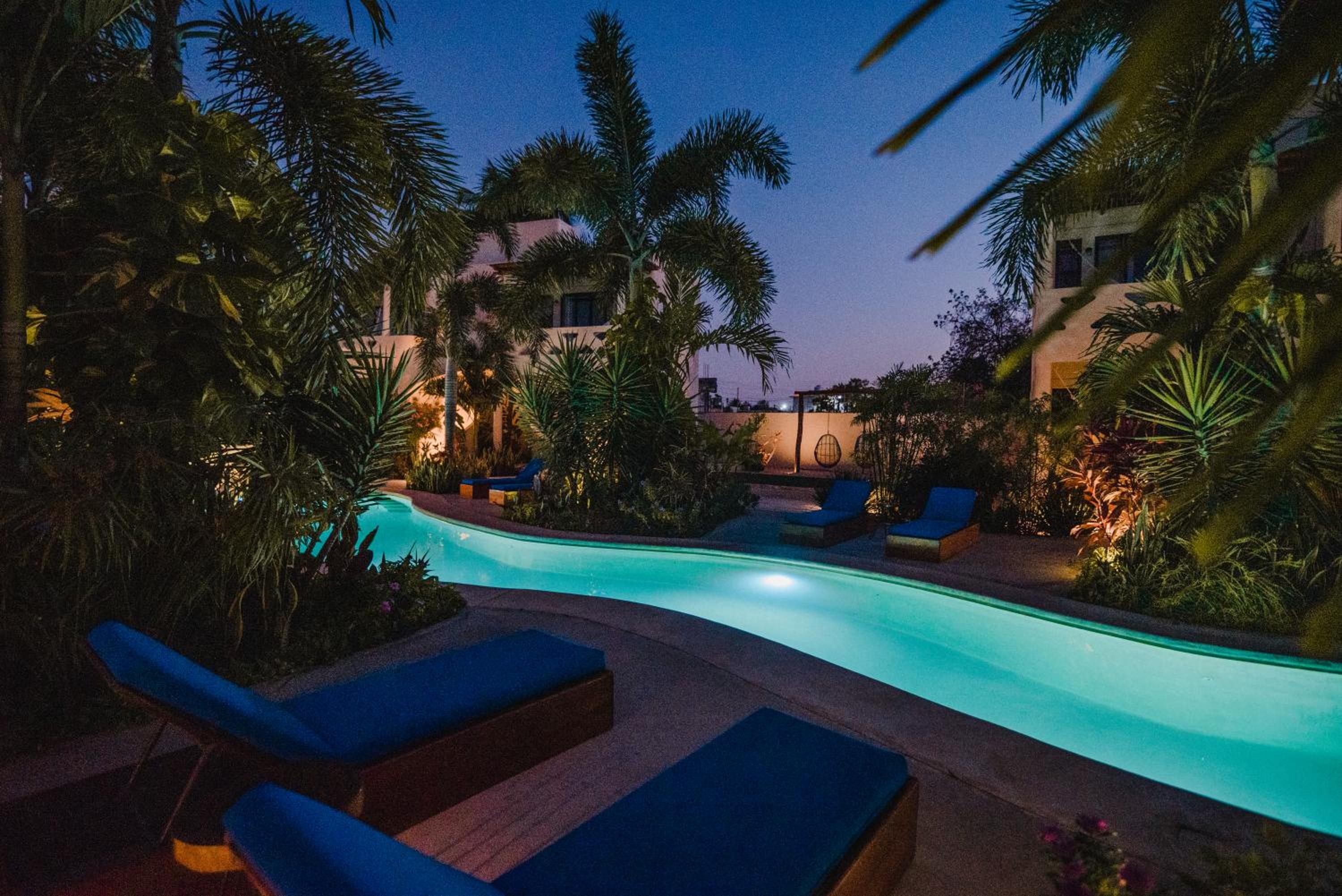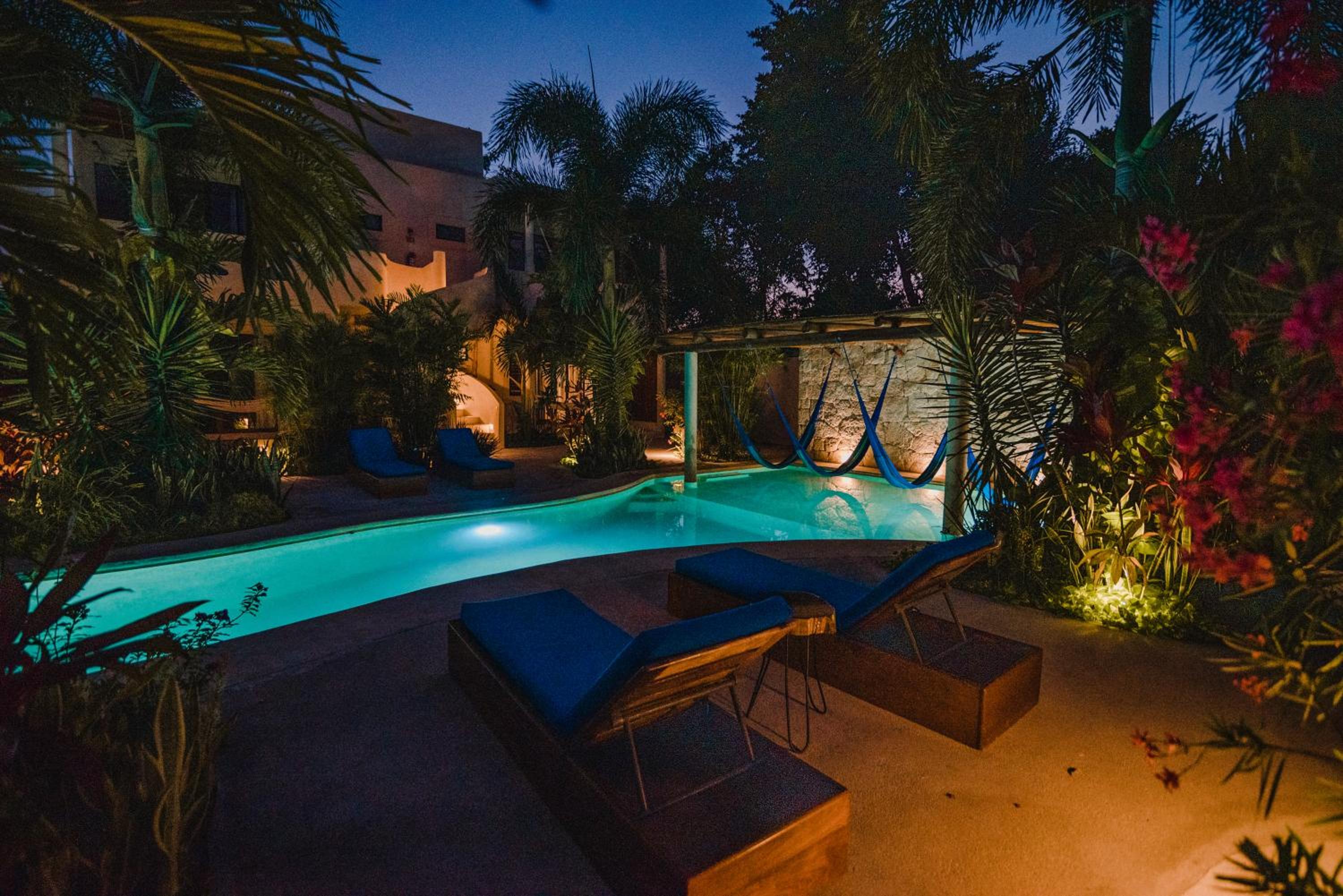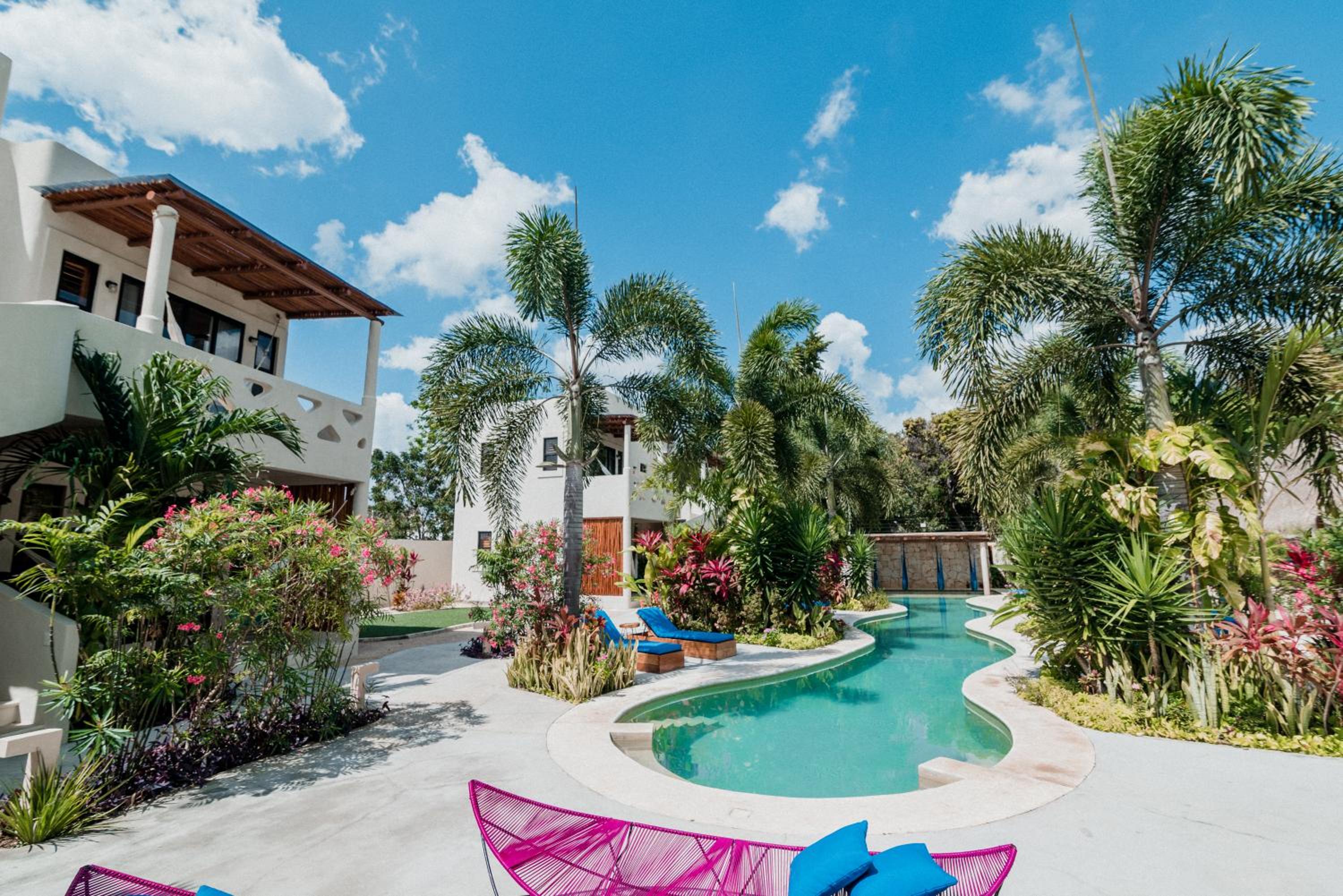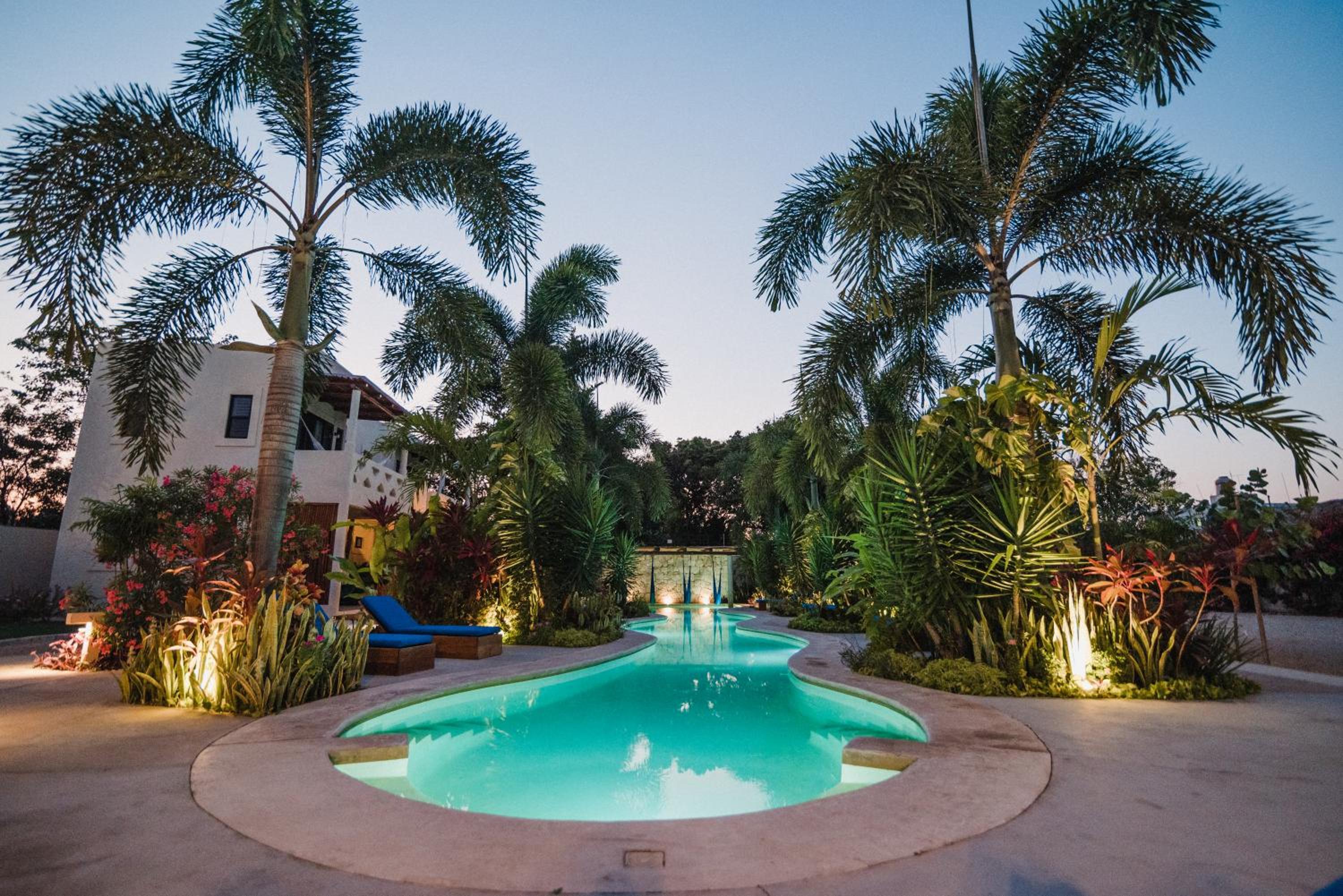 Outdoor Pool and Garden: Enjoy a refreshing swim in the outdoor pool or take a leisurely stroll in the lush garden at Blue Palm Bacalar.