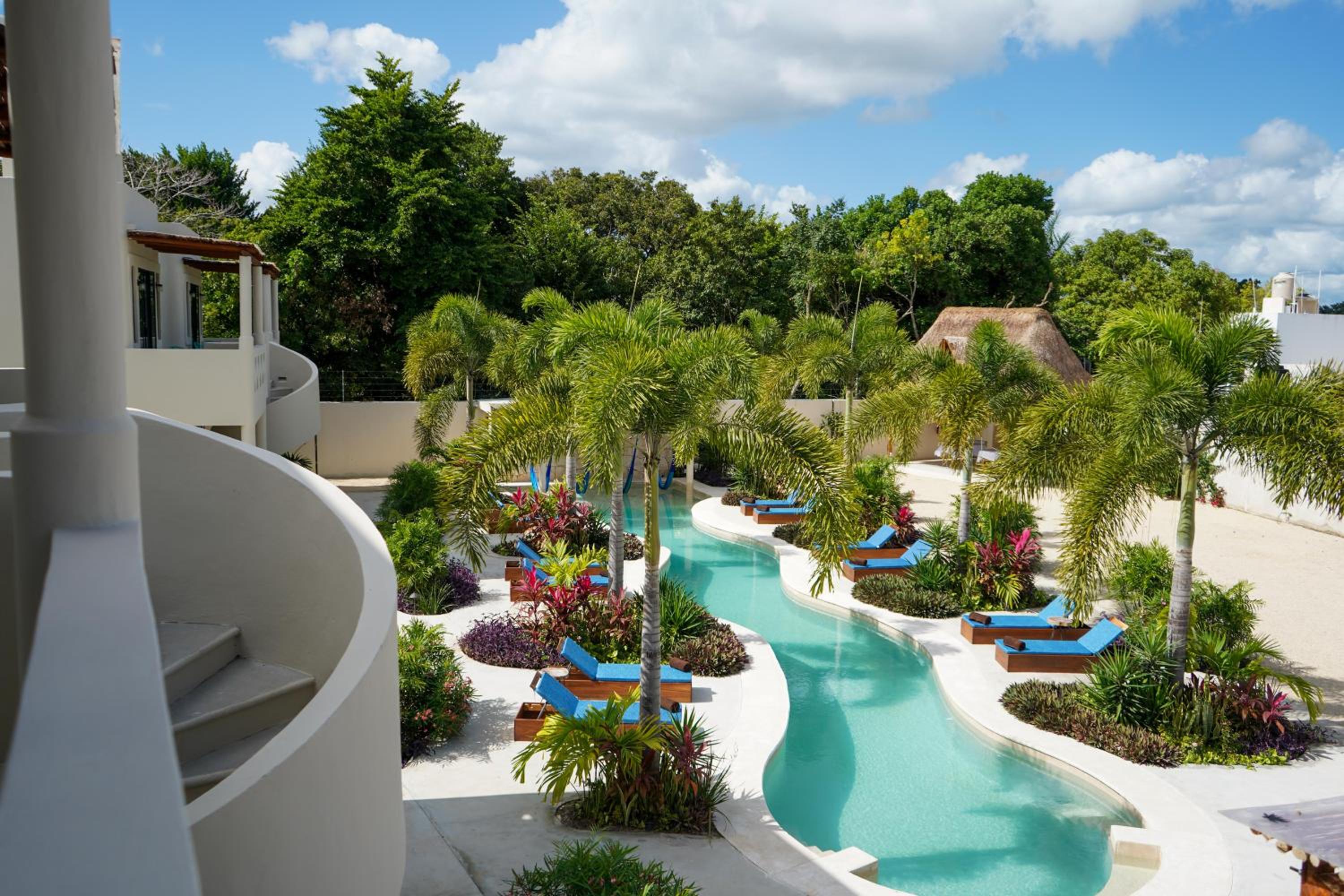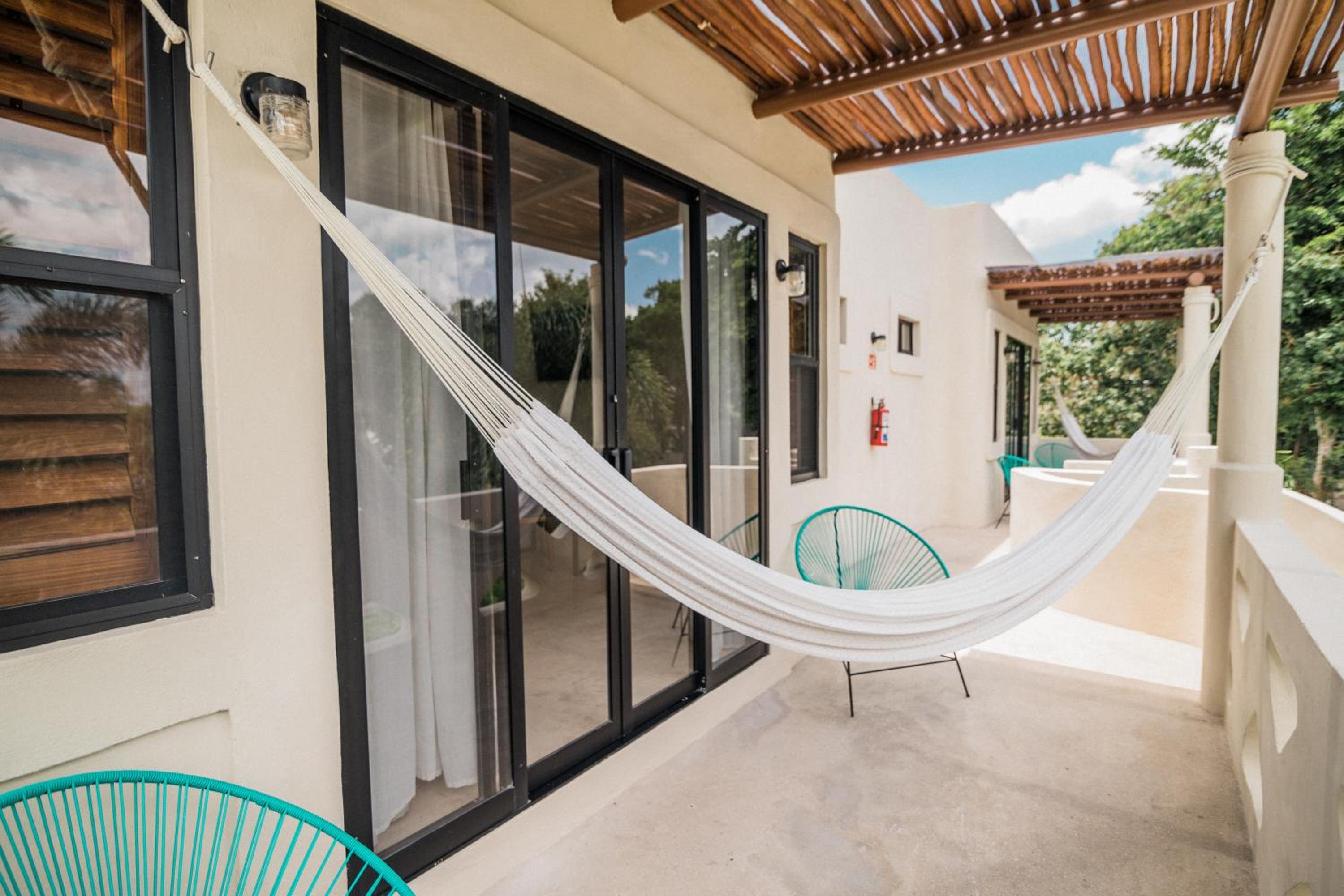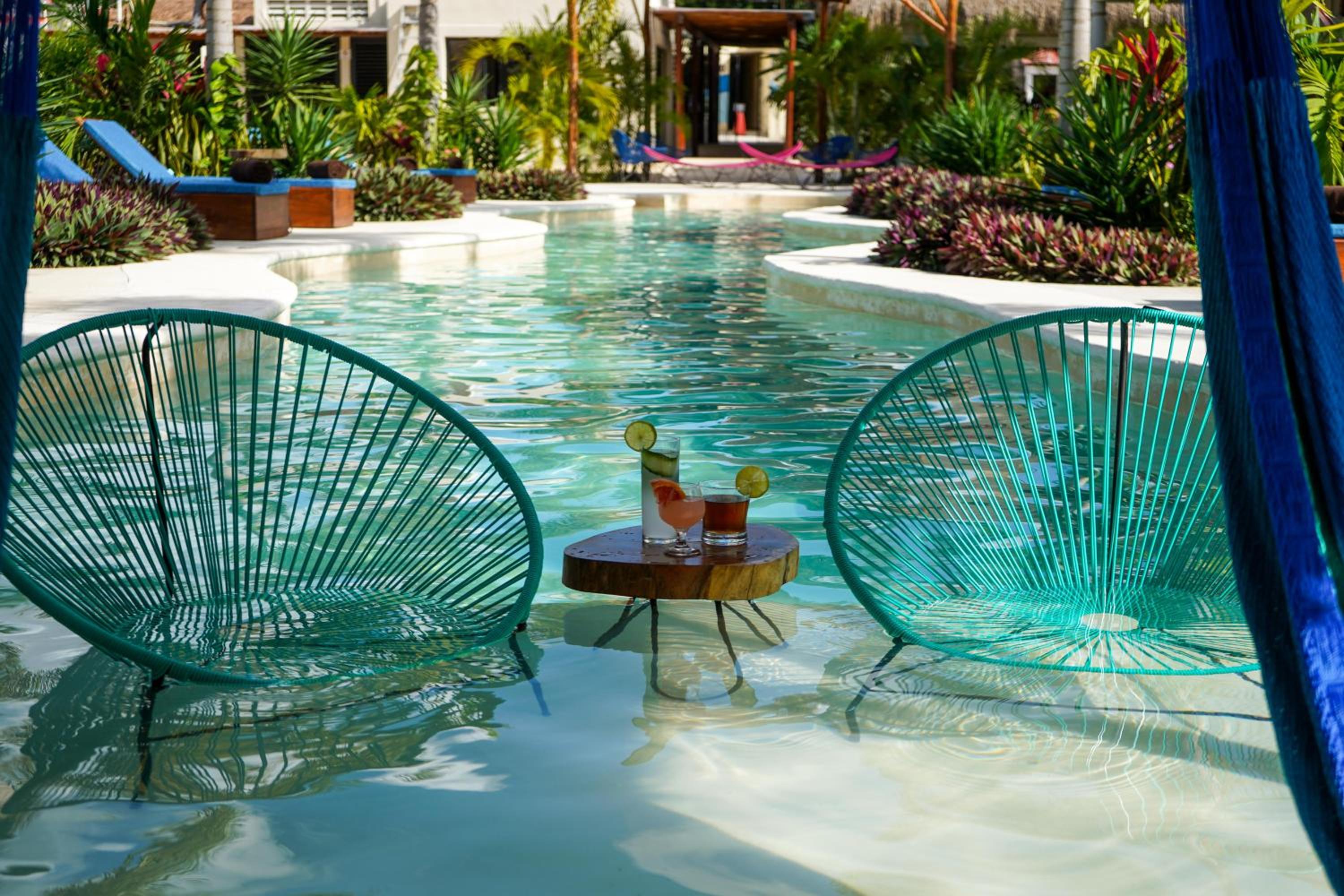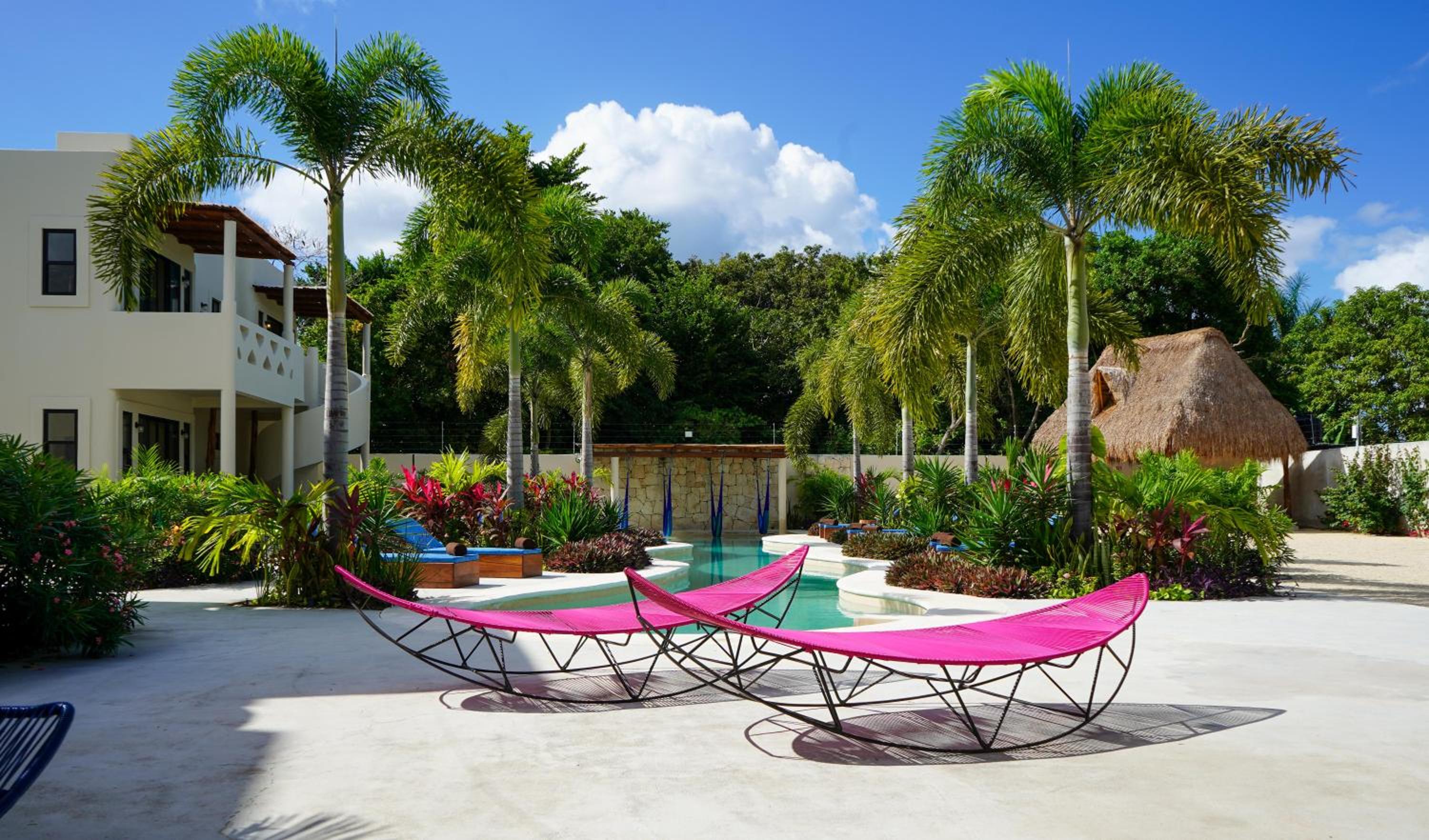 Outdoor Pool and Garden: Enjoy a refreshing swim in the outdoor pool or take a leisurely stroll in the lush garden at Blue Palm Bacalar.