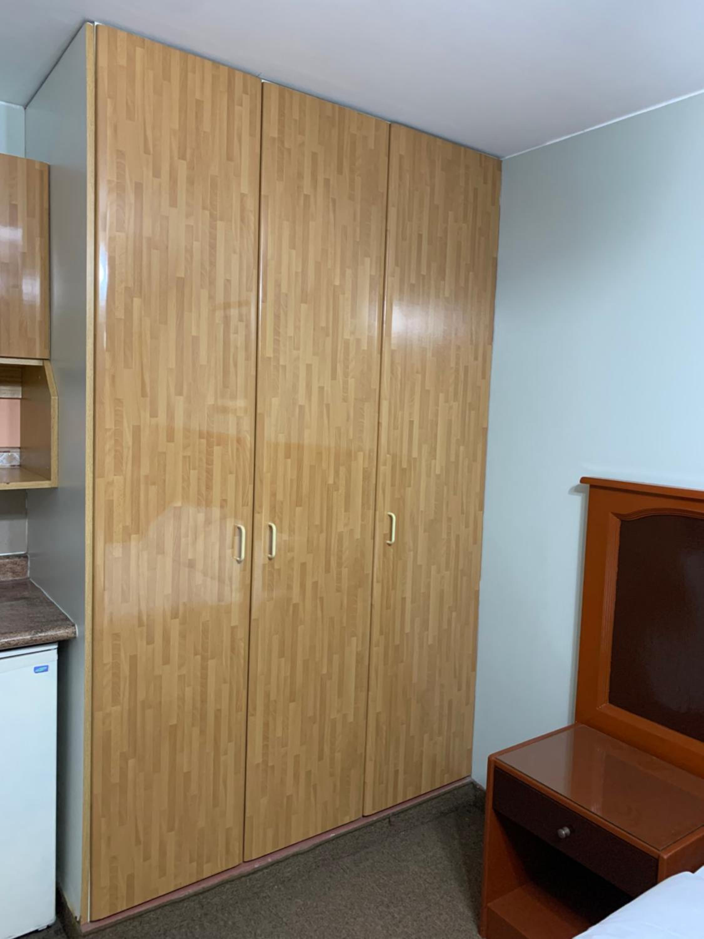 Cama, ar condicionado barulhento e do banheiro