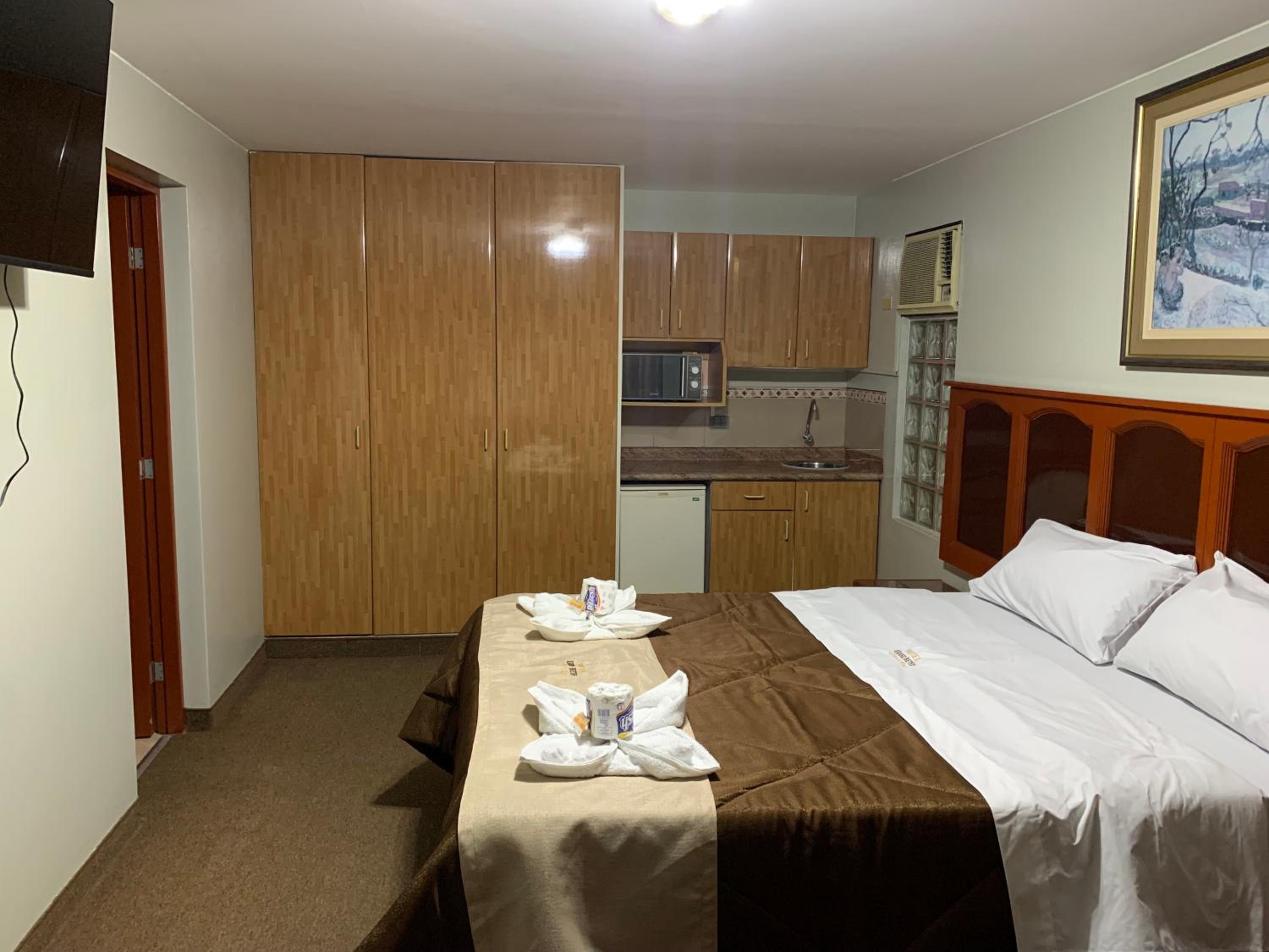 Experience comfort and convenience in our rooms equipped with kitchenettes, flat-screen TVs, and private bathrooms.