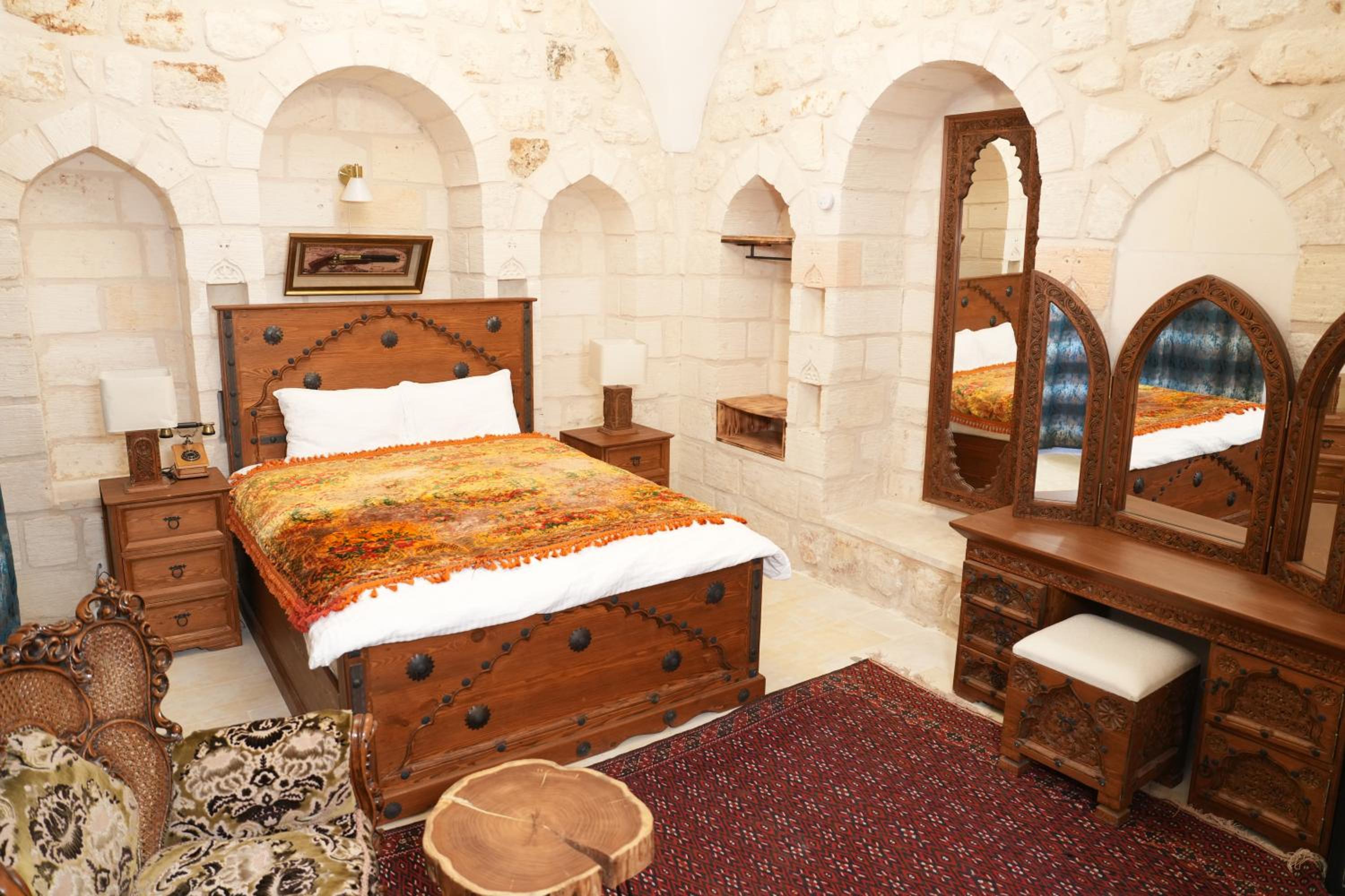 L’emplacement, situé au cœur de la vieille ville de Midyat, permet de visiter presque tout à pied. L’architecture de l’hôtel est atypique.