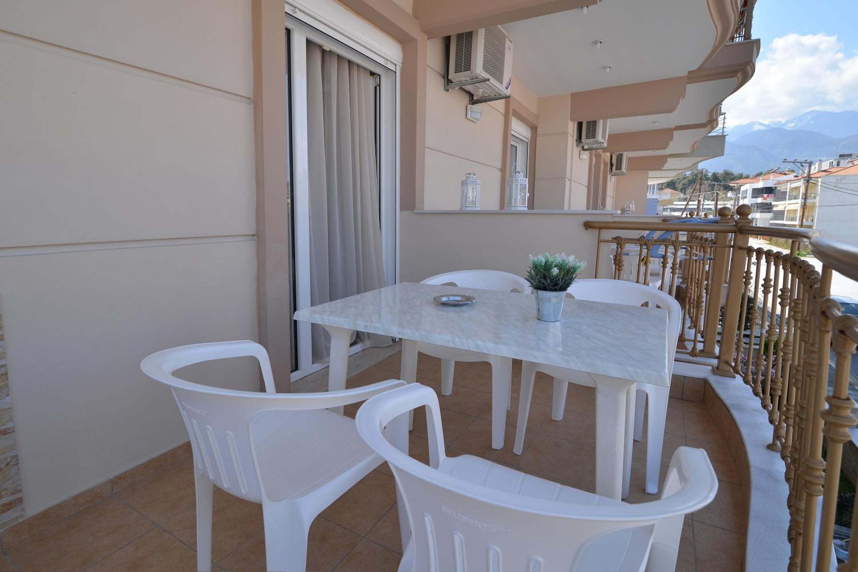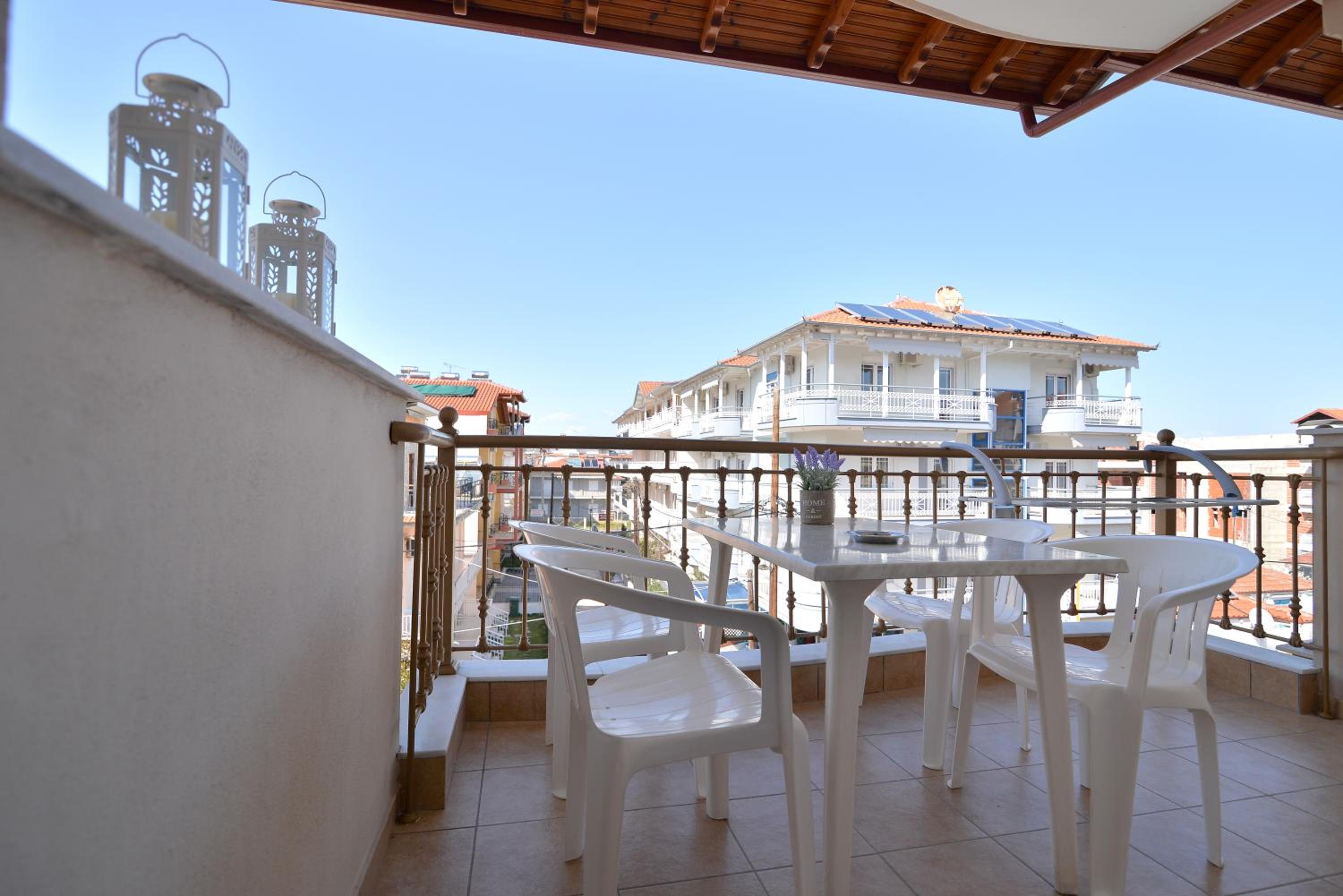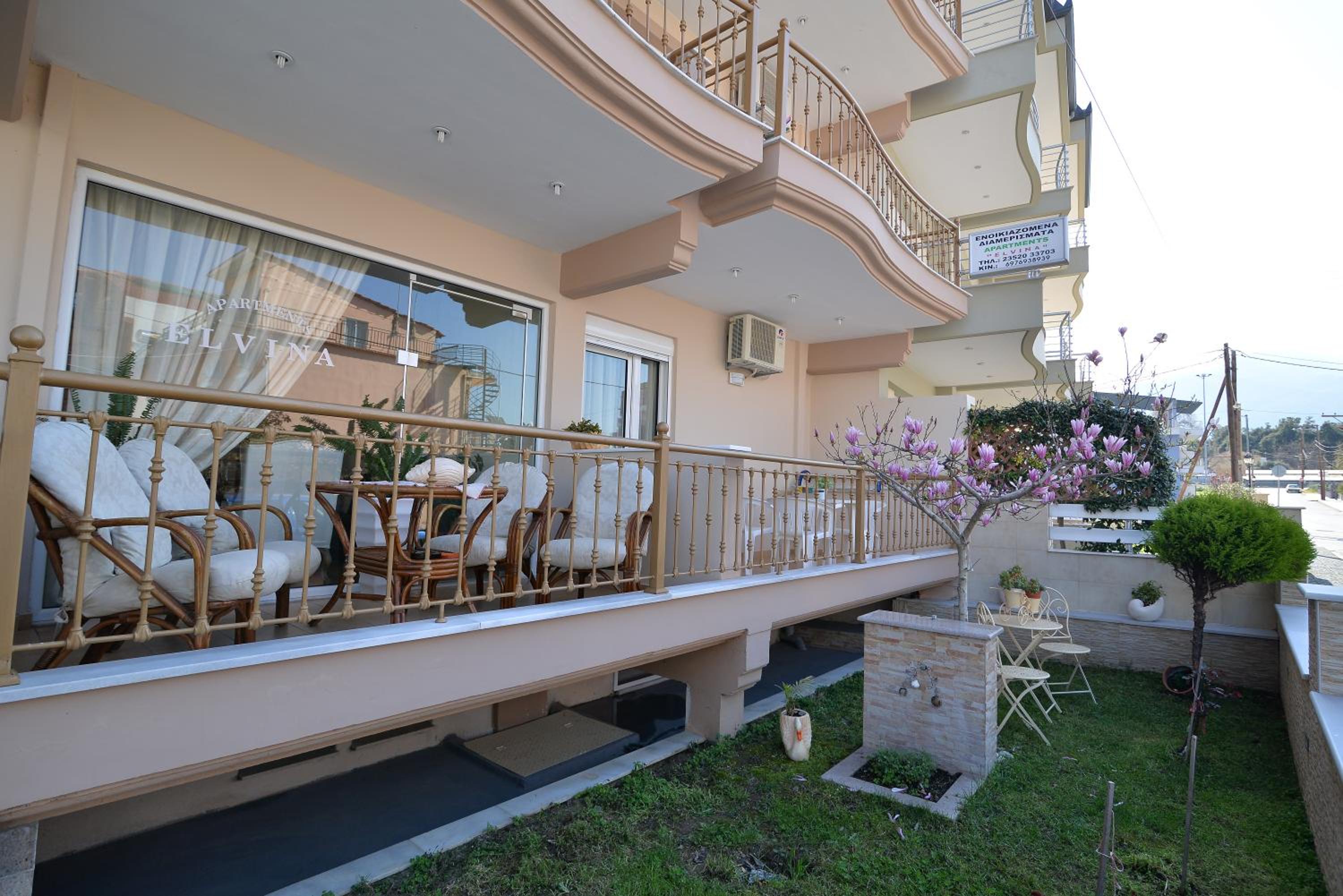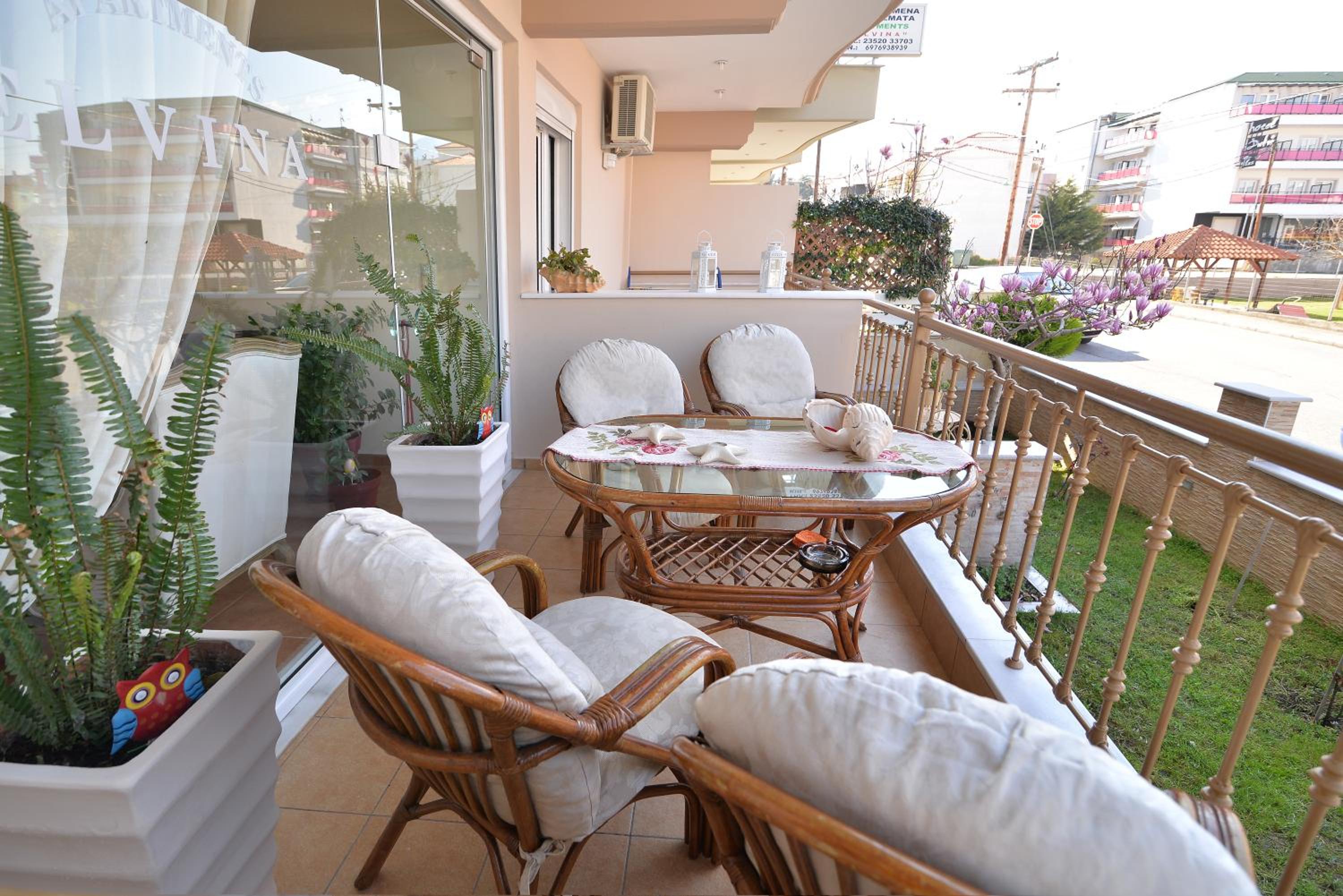 Enjoy breathtaking sea views from the comfort of your own private patio at Εlvina apartments, located just steps away from Leptokarya Beach.