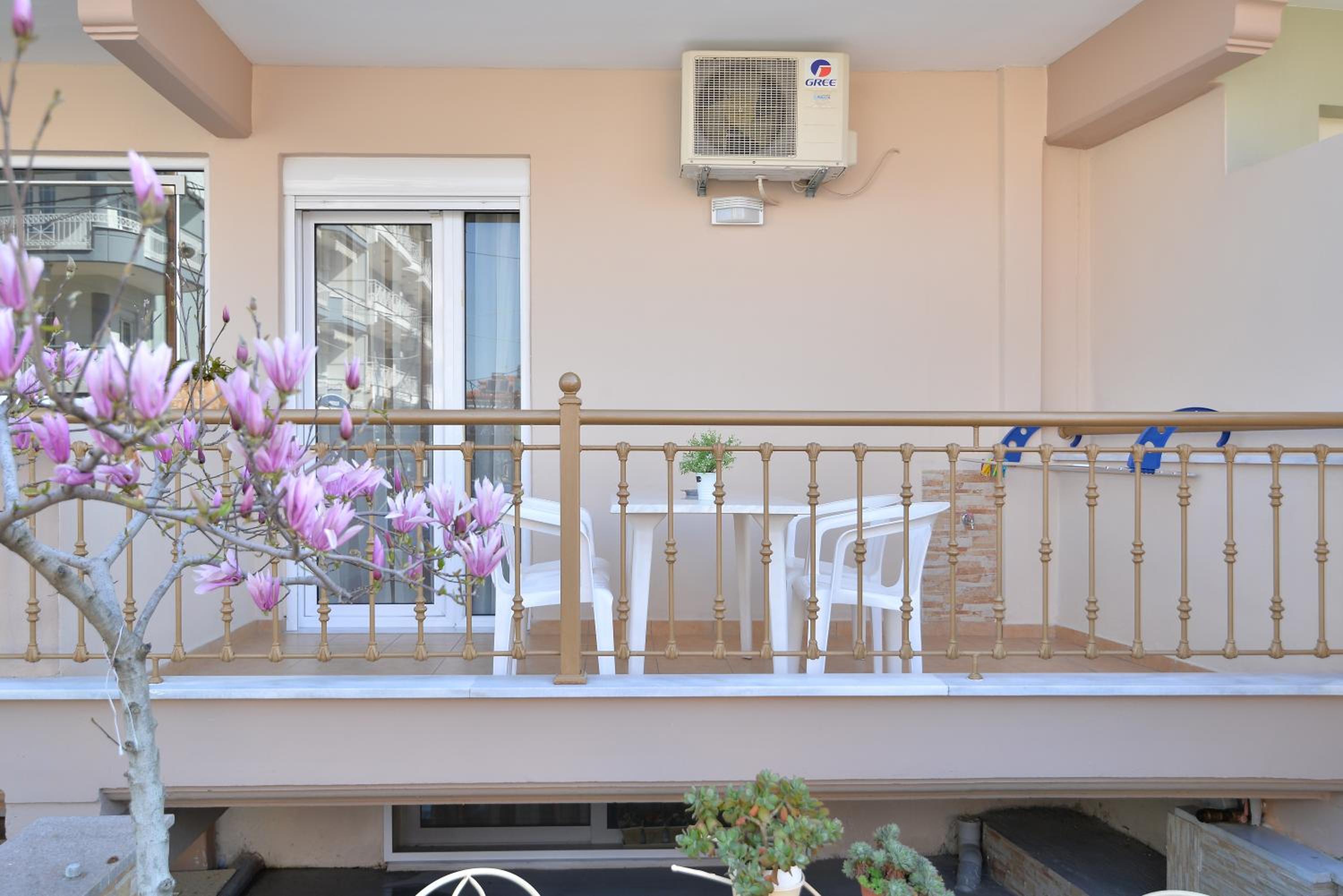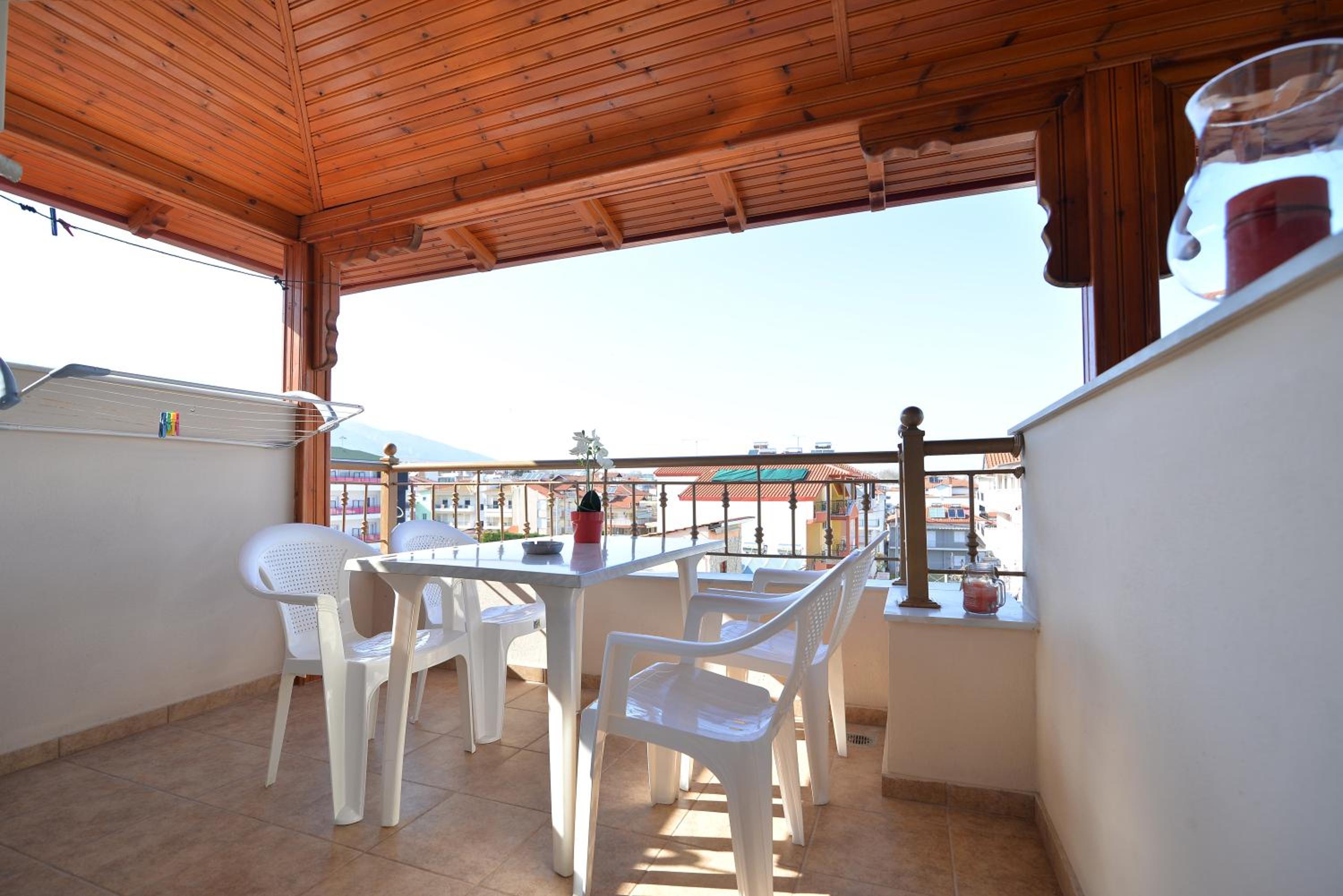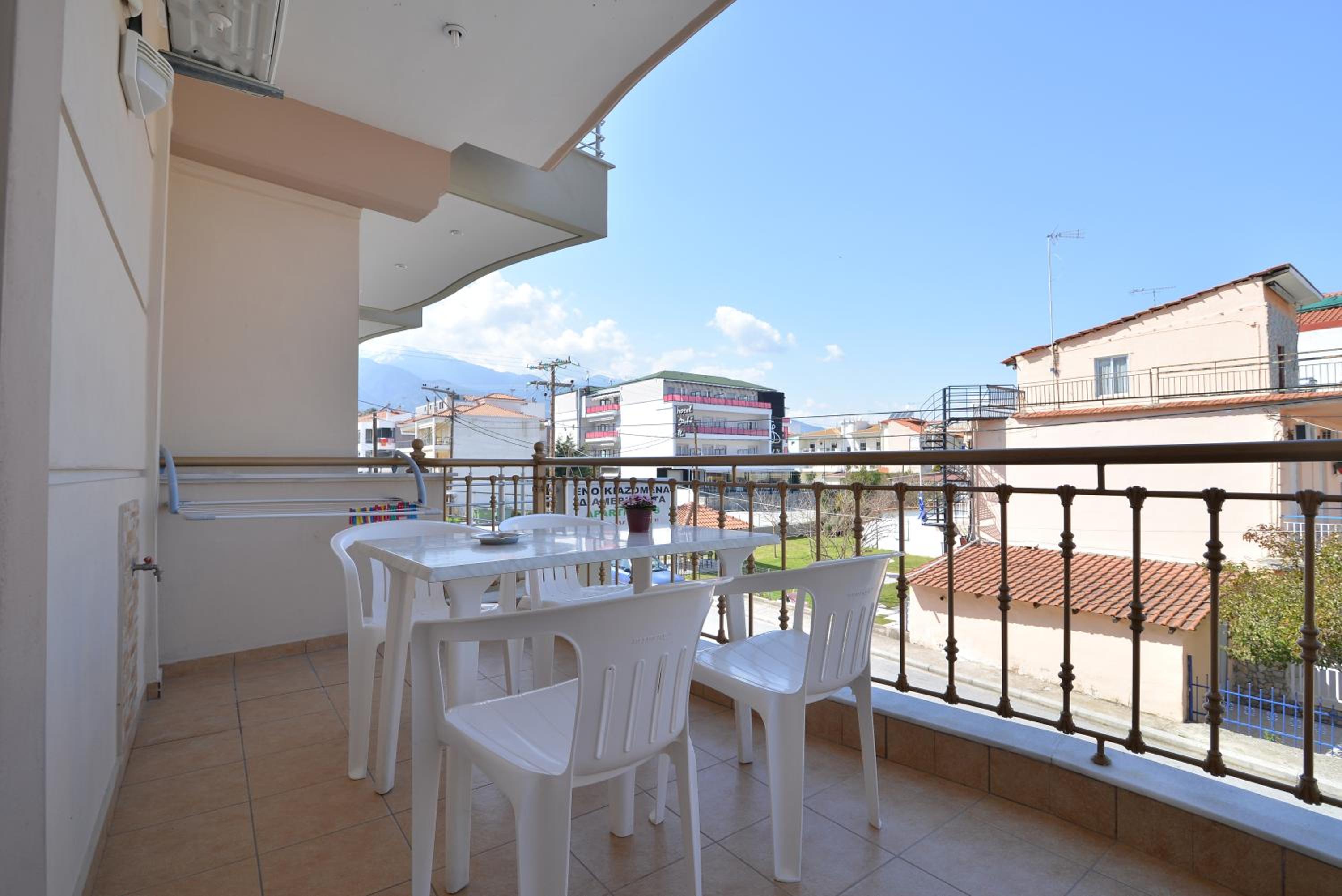 Enjoy breathtaking sea views from the comfort of your own private patio at Εlvina apartments, located just steps away from Leptokarya Beach.