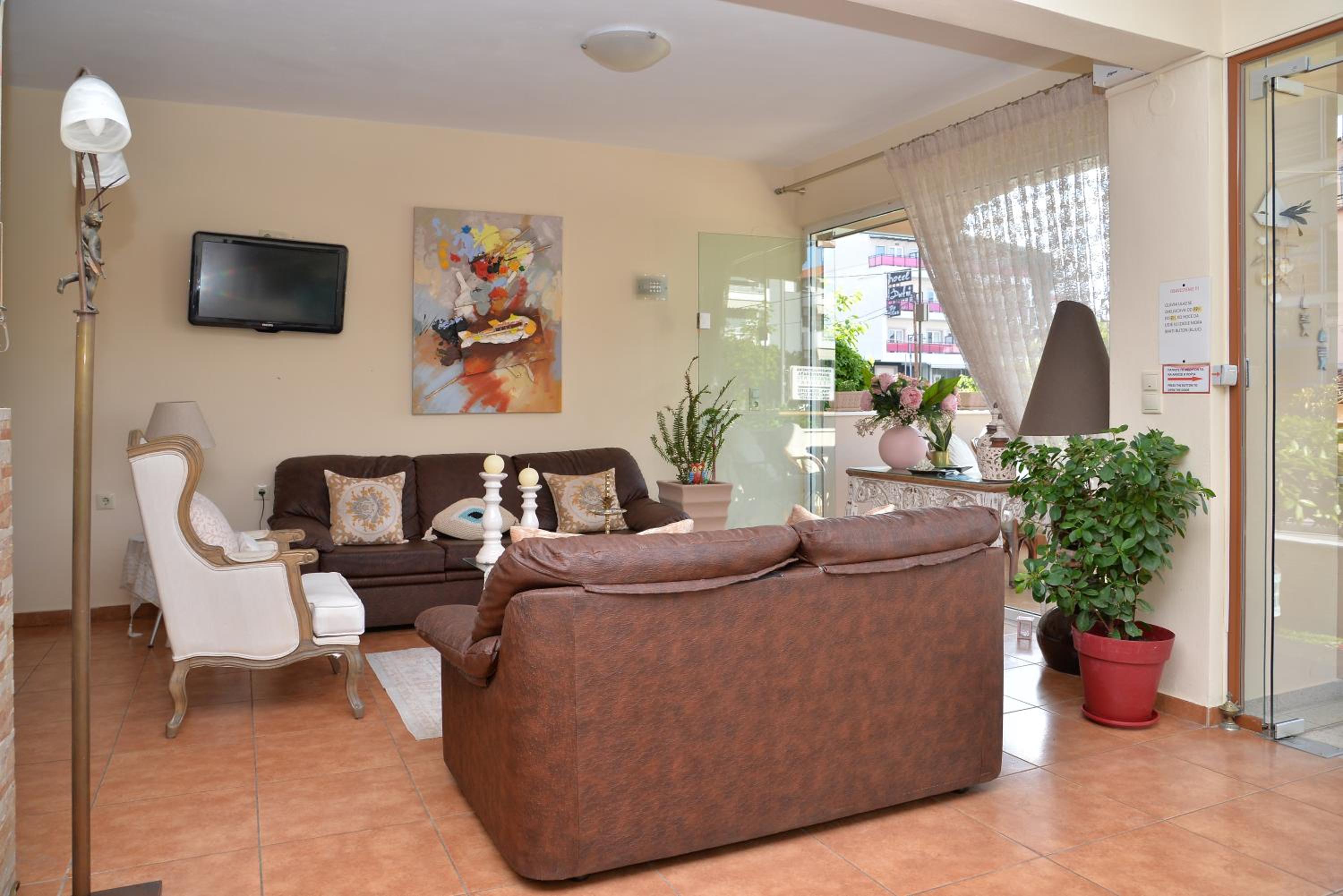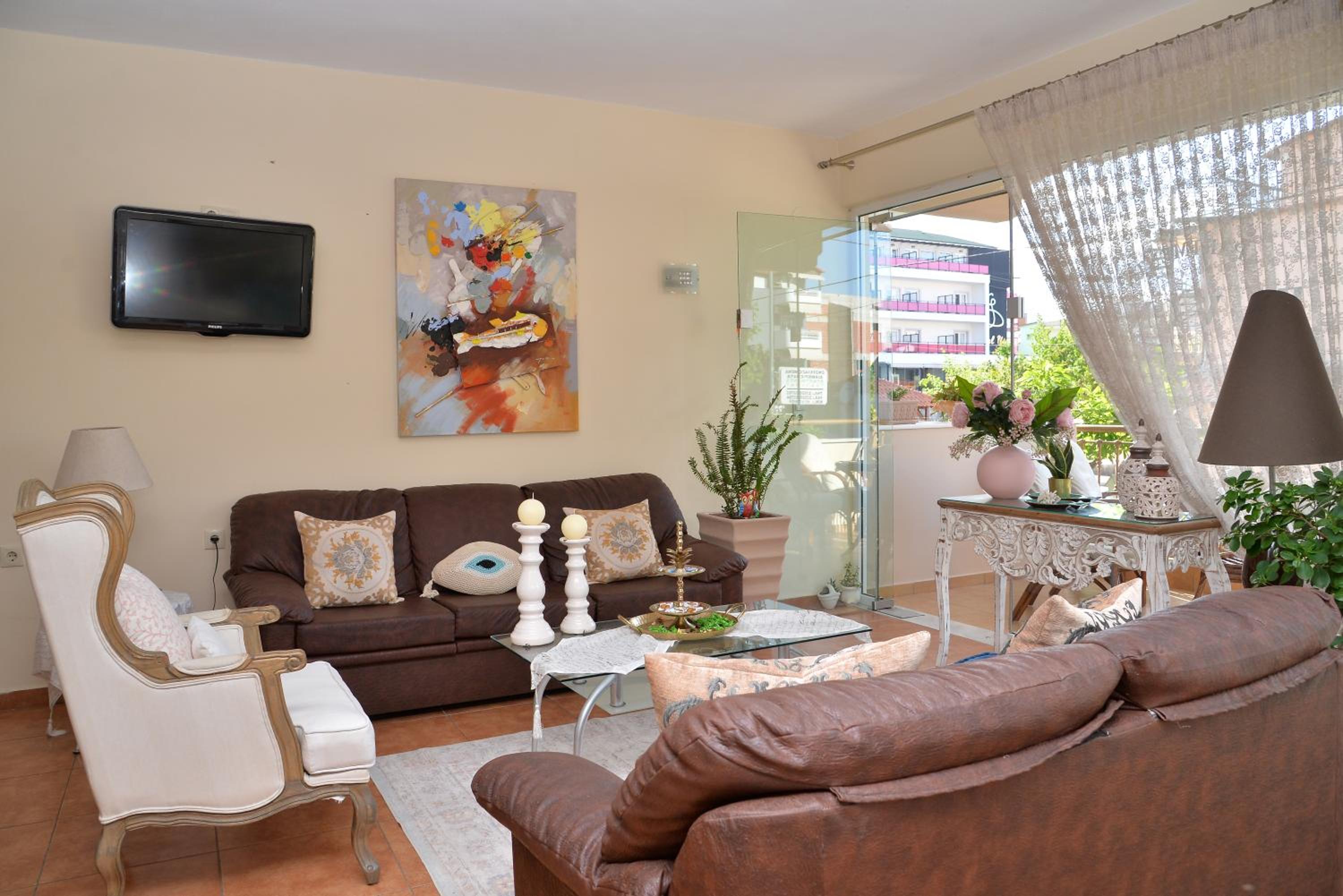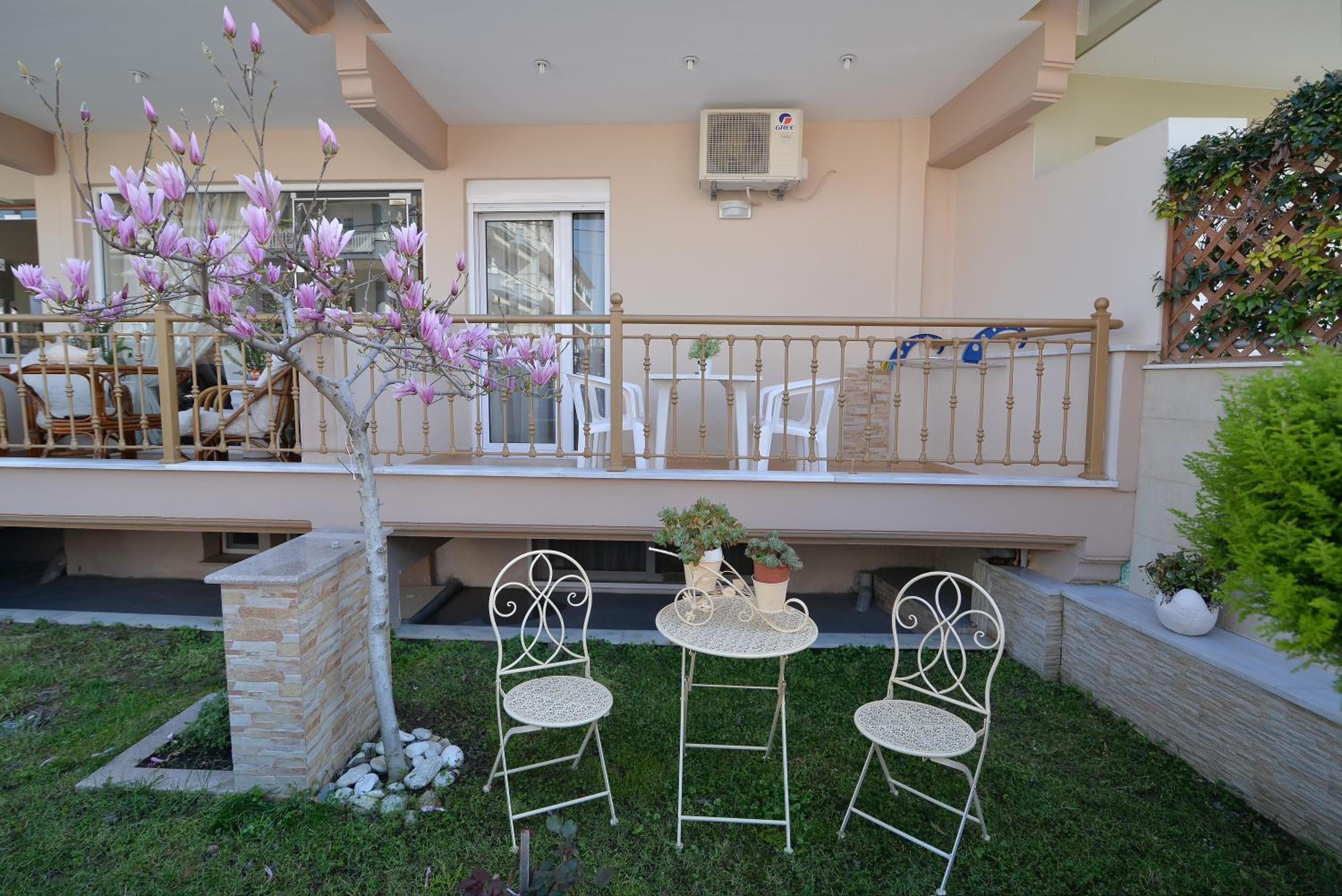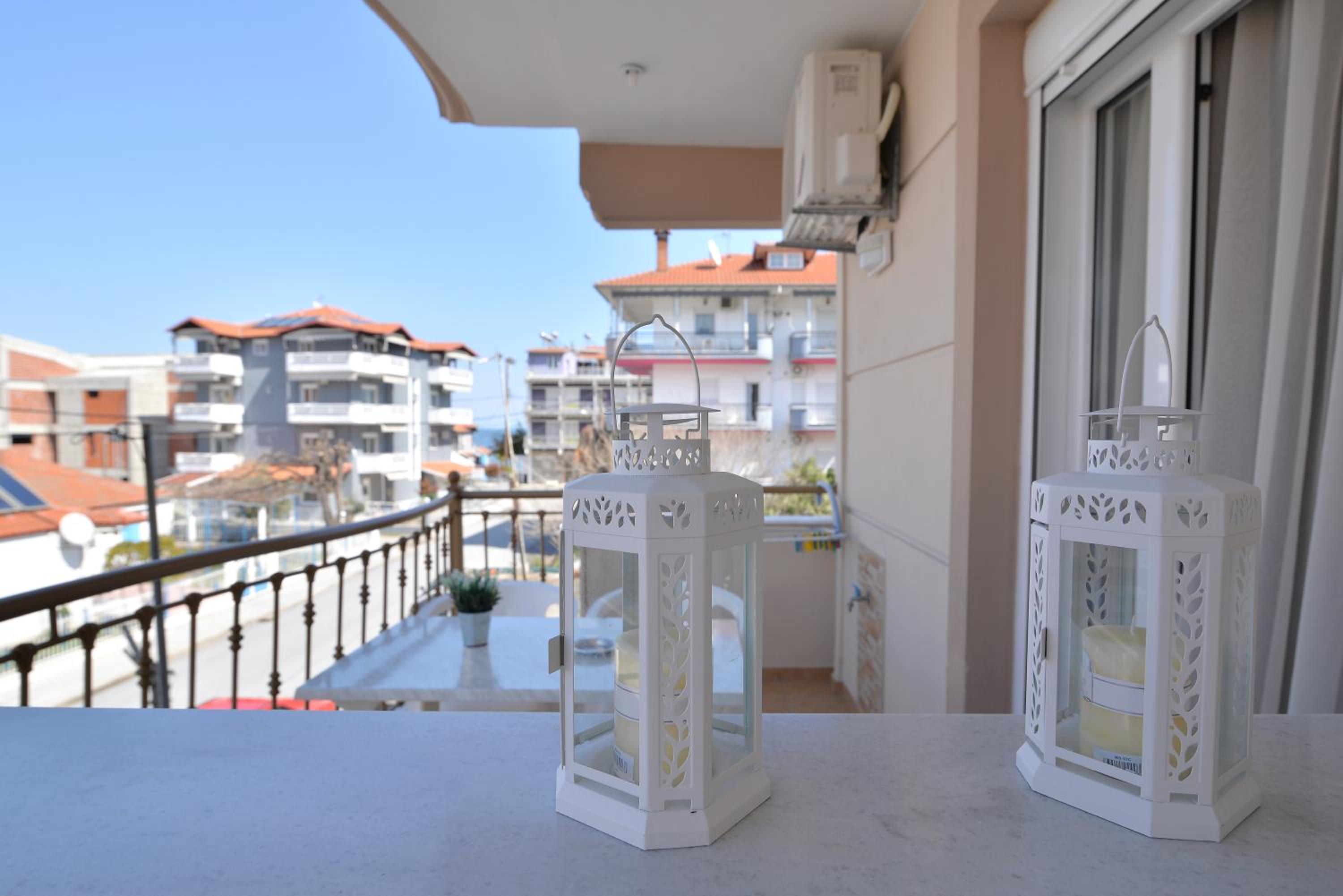 Enjoy breathtaking sea views from the comfort of your own private patio at Εlvina apartments, located just steps away from Leptokarya Beach.