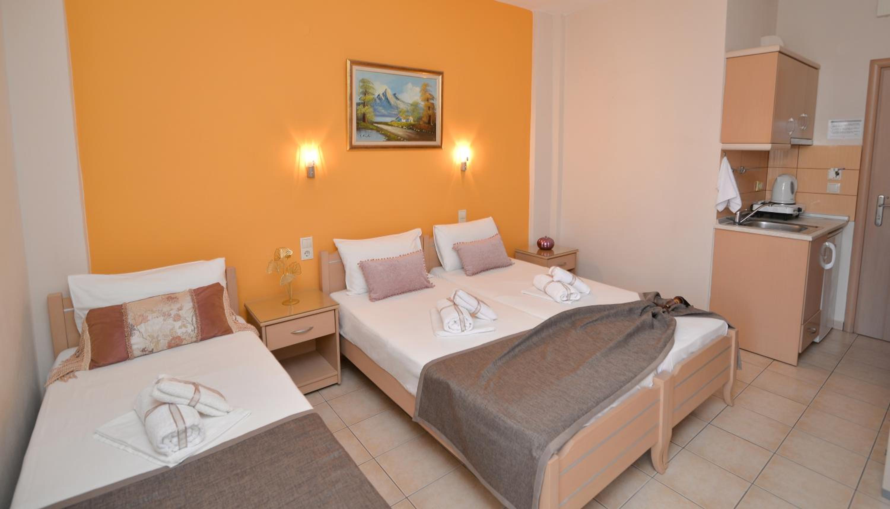 Εκπληκτικοί μια ευγενικοί οικοδεσπότες. Είχαν κανονίσει επειδή είχαμε και παιδιά να έχουν και πρωινό στο δωμάτιο. Σούπερ τιμή, άψογη φιλοξενία και αστραφτερή καθαριοτητα!