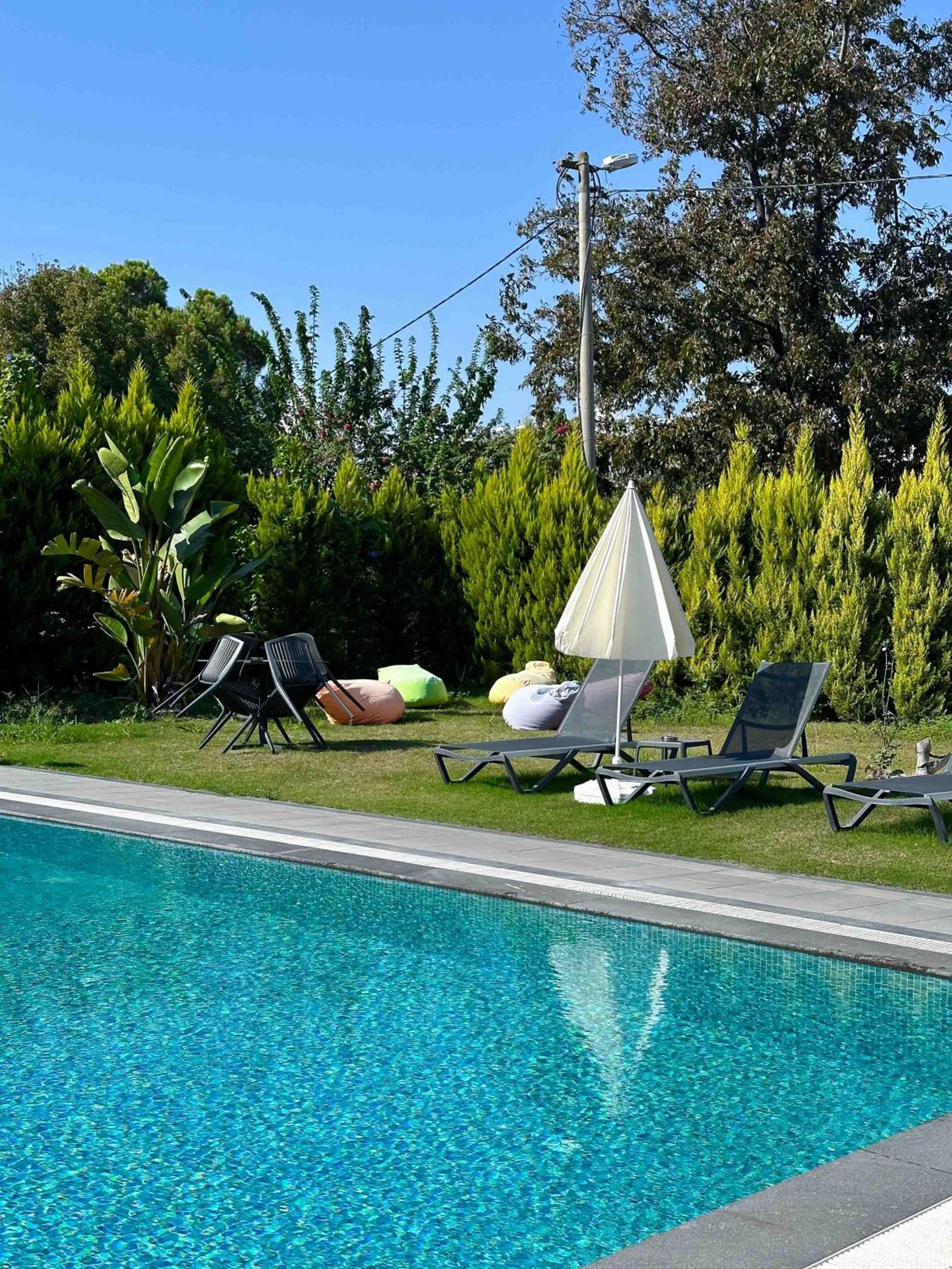 Unwind by the seasonal outdoor pool, stroll through the lush garden, or enjoy breathtaking views from the terrace overlooking Calis Beach.