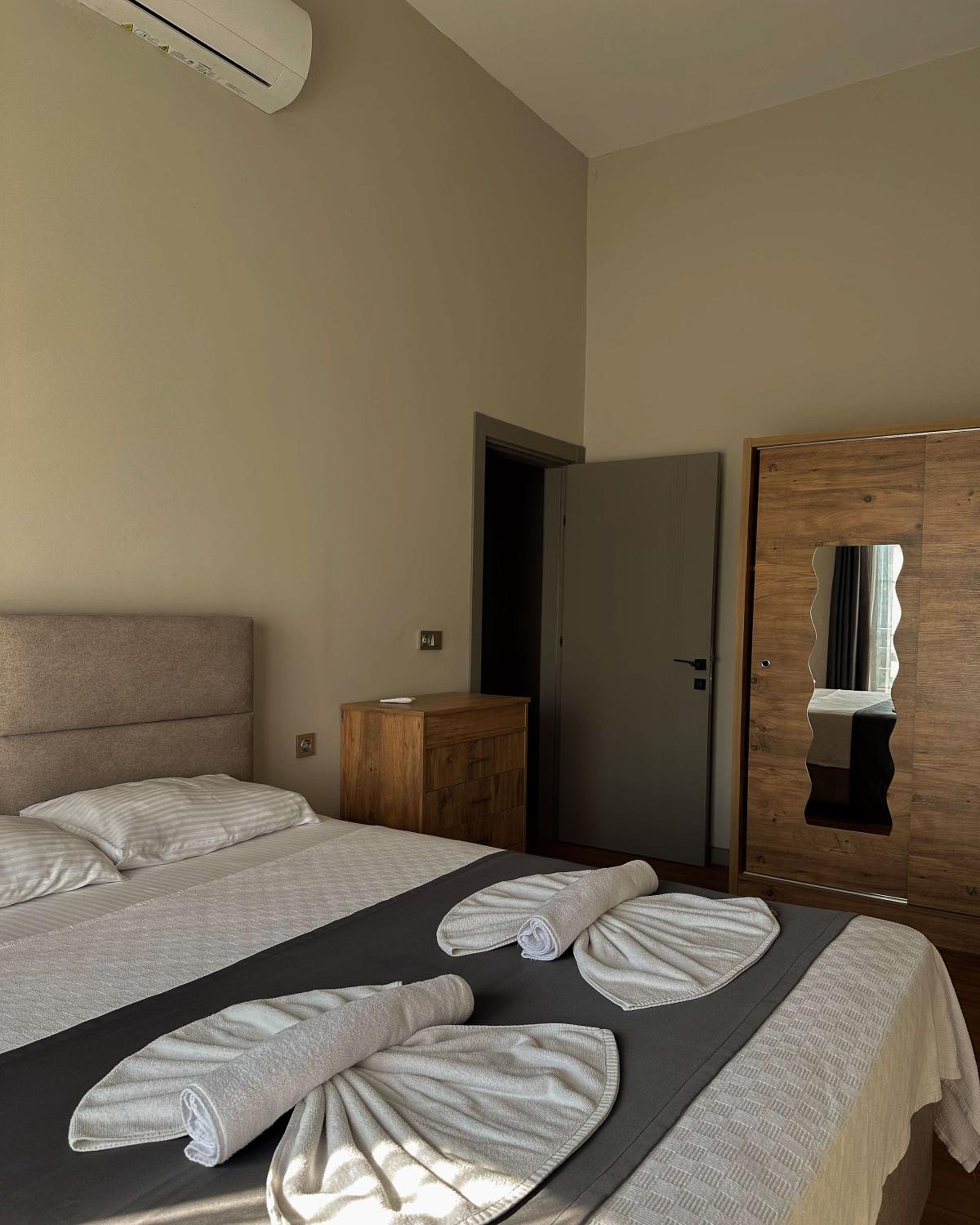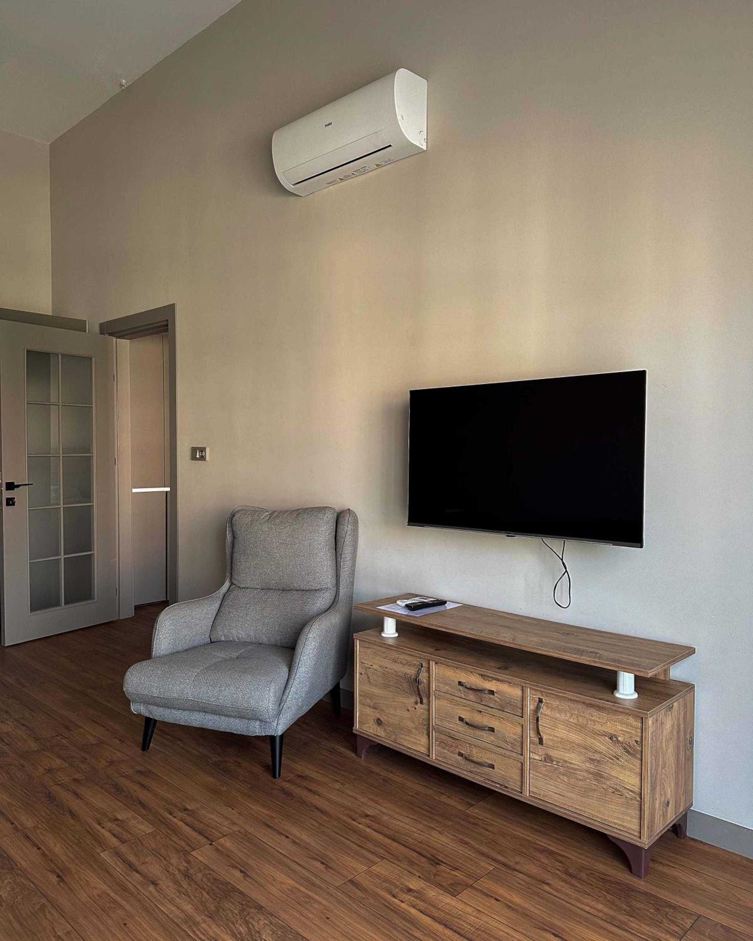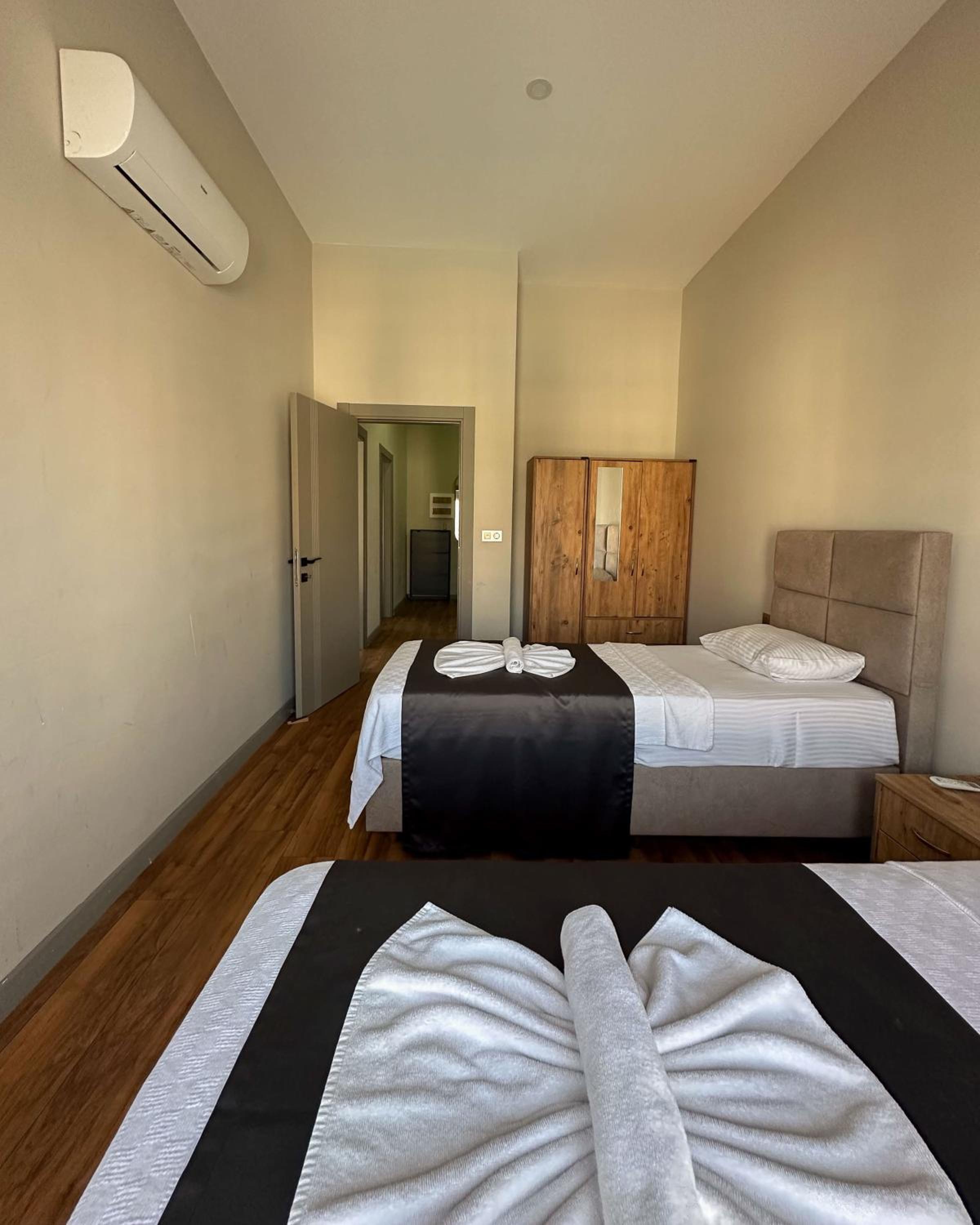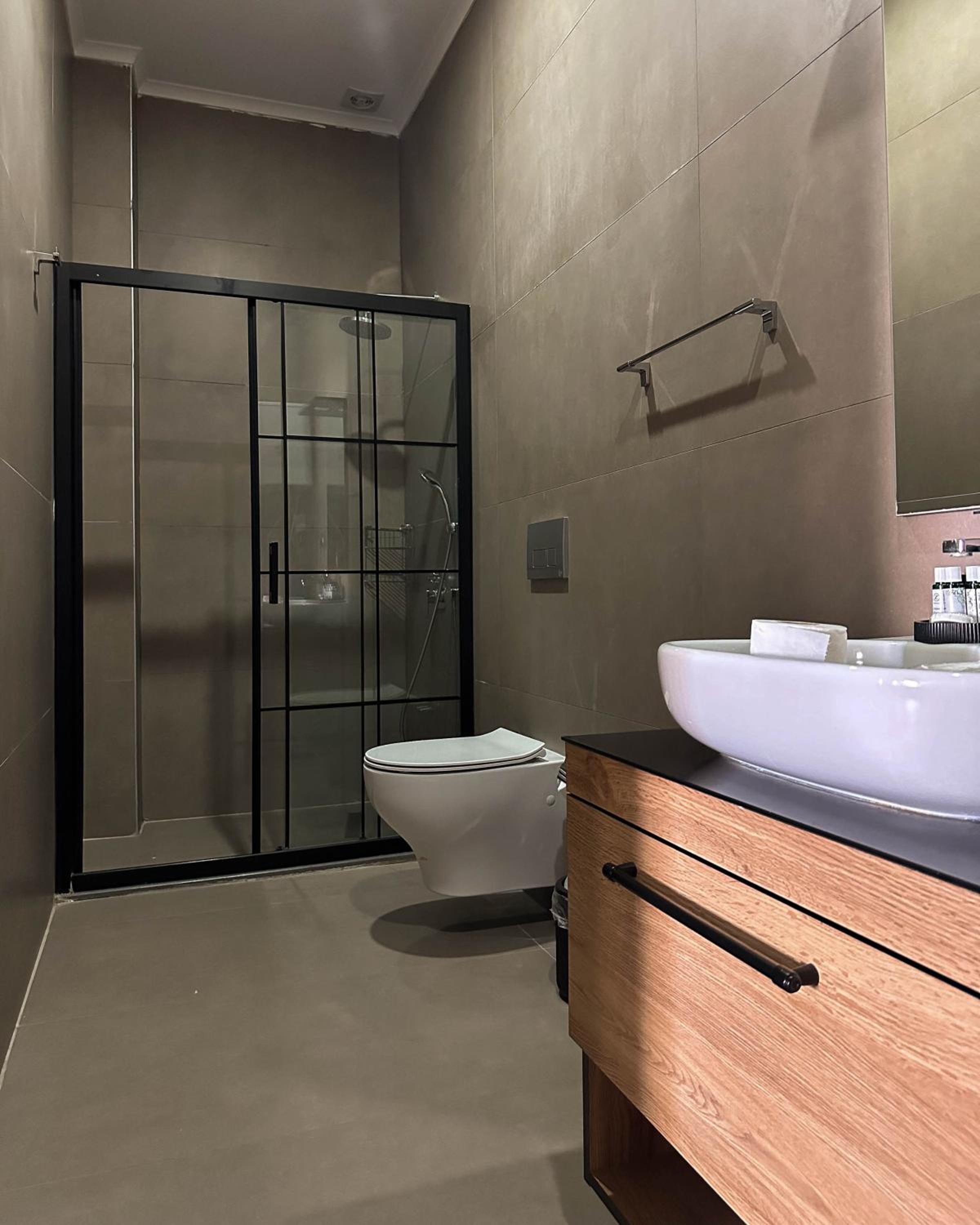Experience the comfort of air-conditioned rooms with modern amenities like flat-screen TVs, coffee machines, and stylish bathrooms.