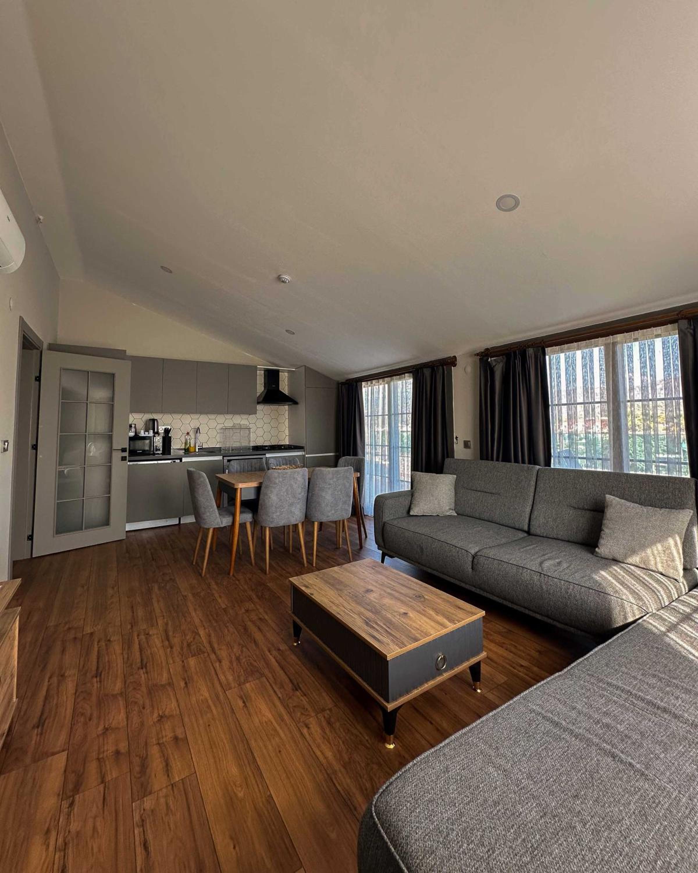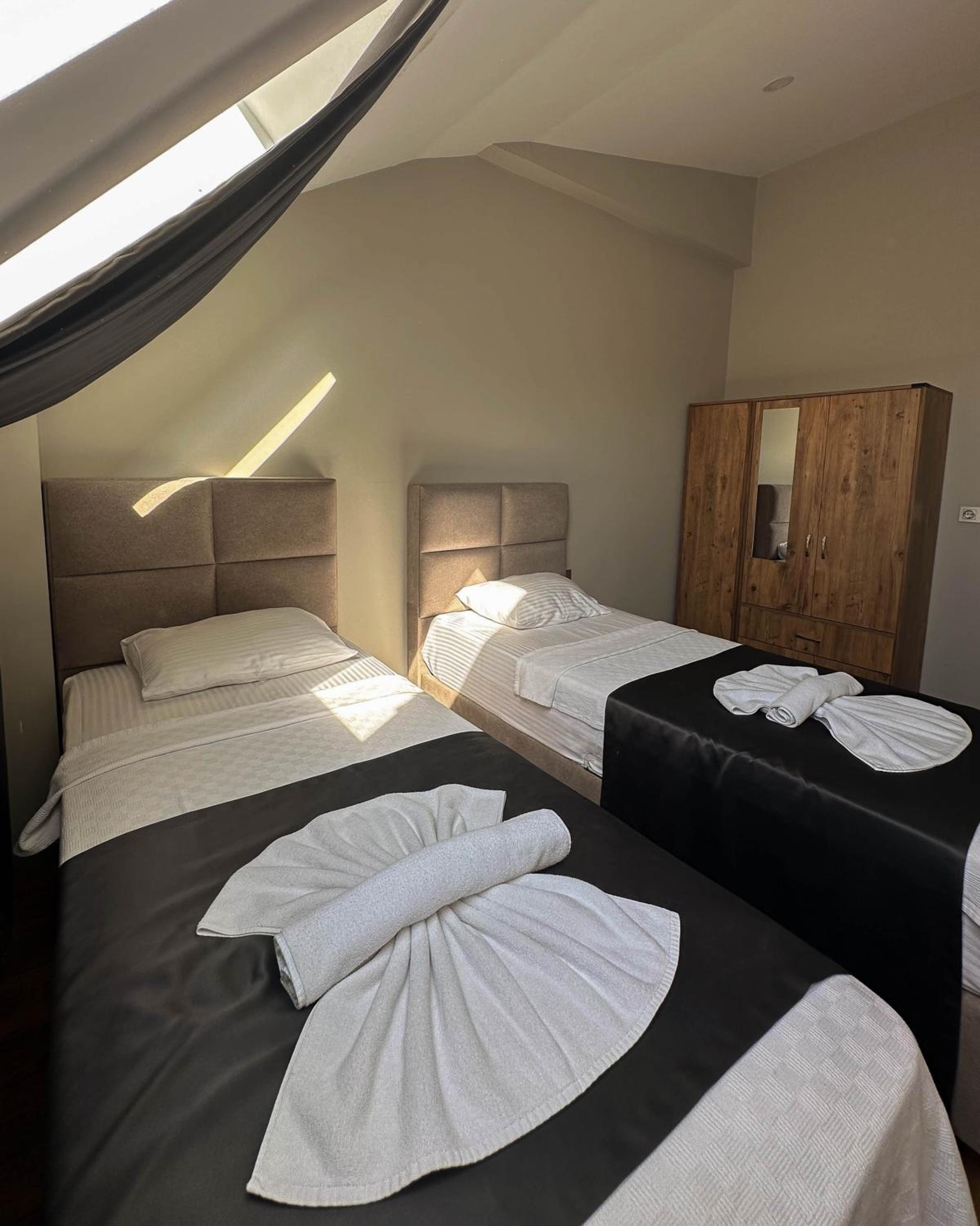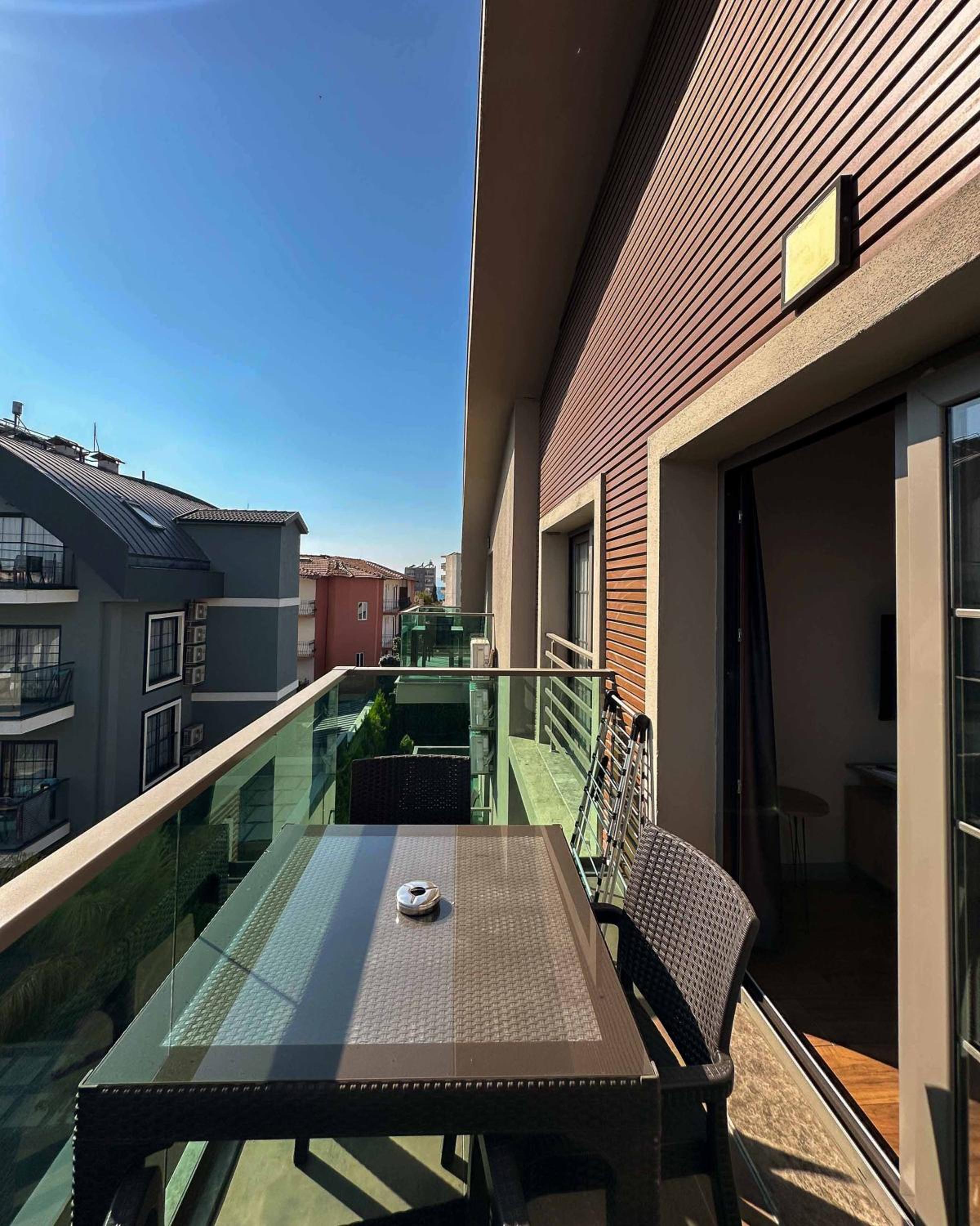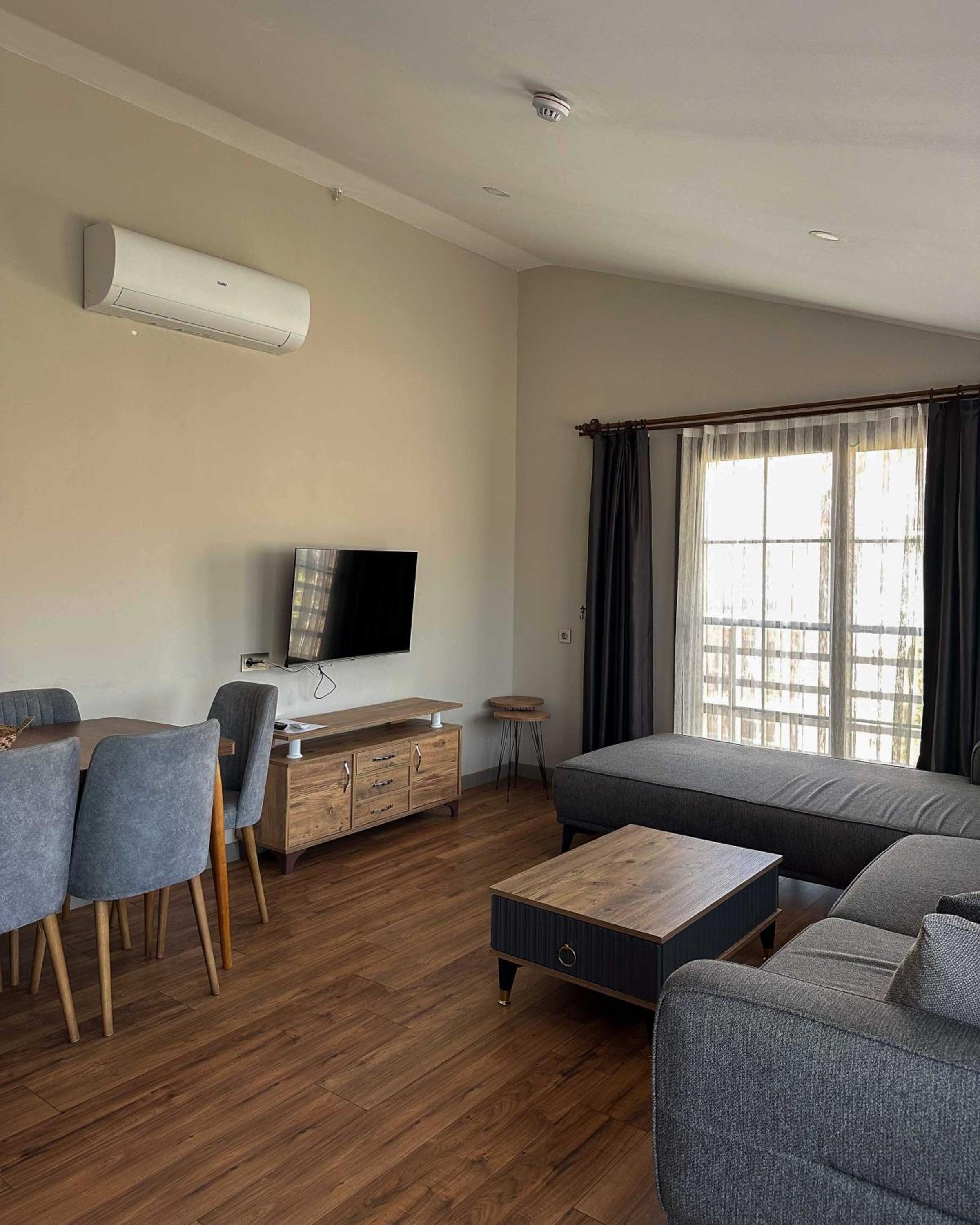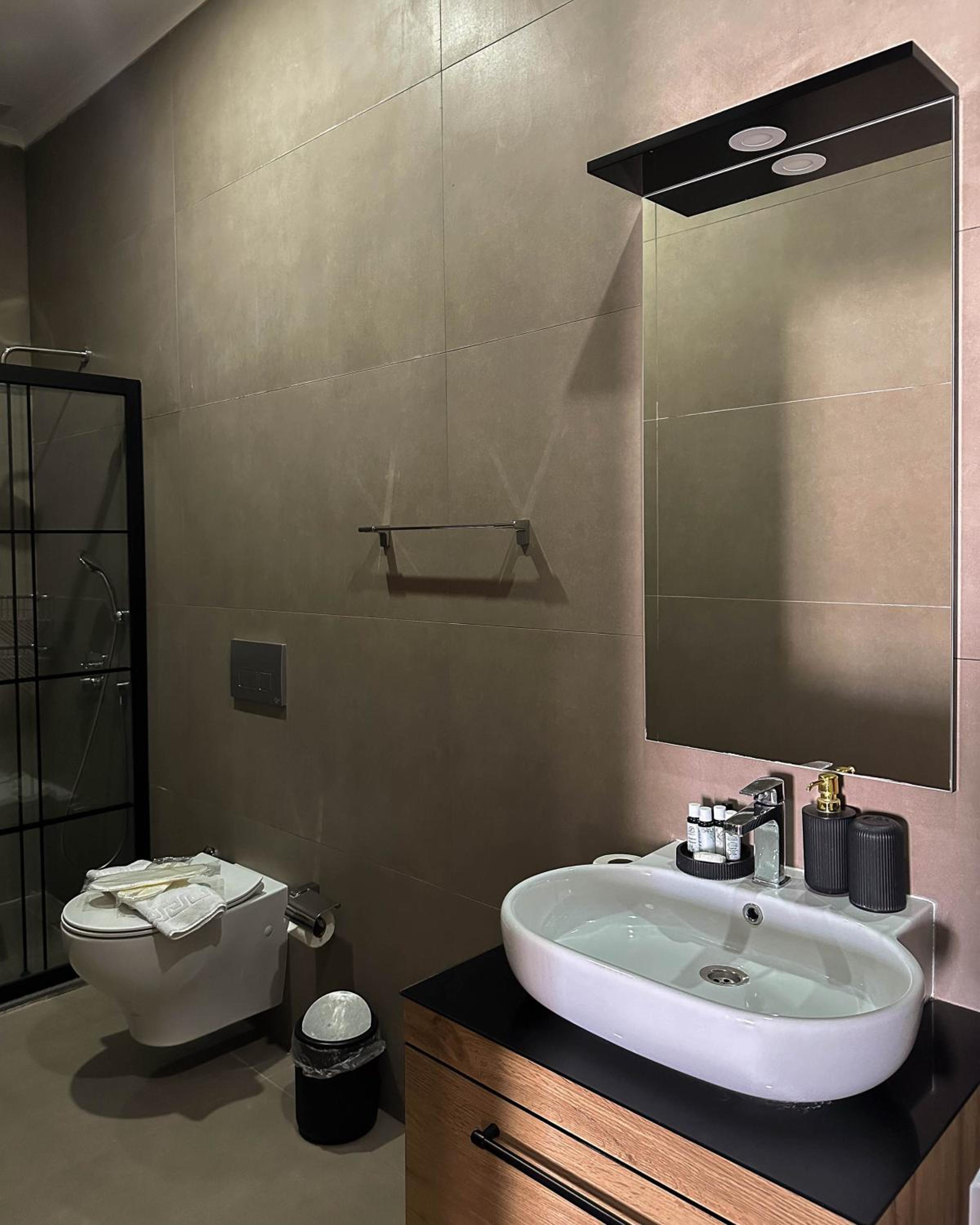 Experience the comfort of air-conditioned rooms with modern amenities like flat-screen TVs, coffee machines, and stylish bathrooms.