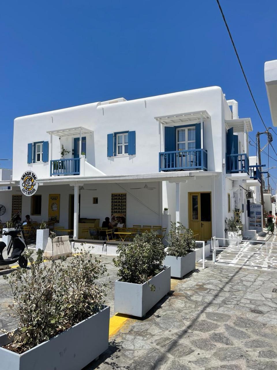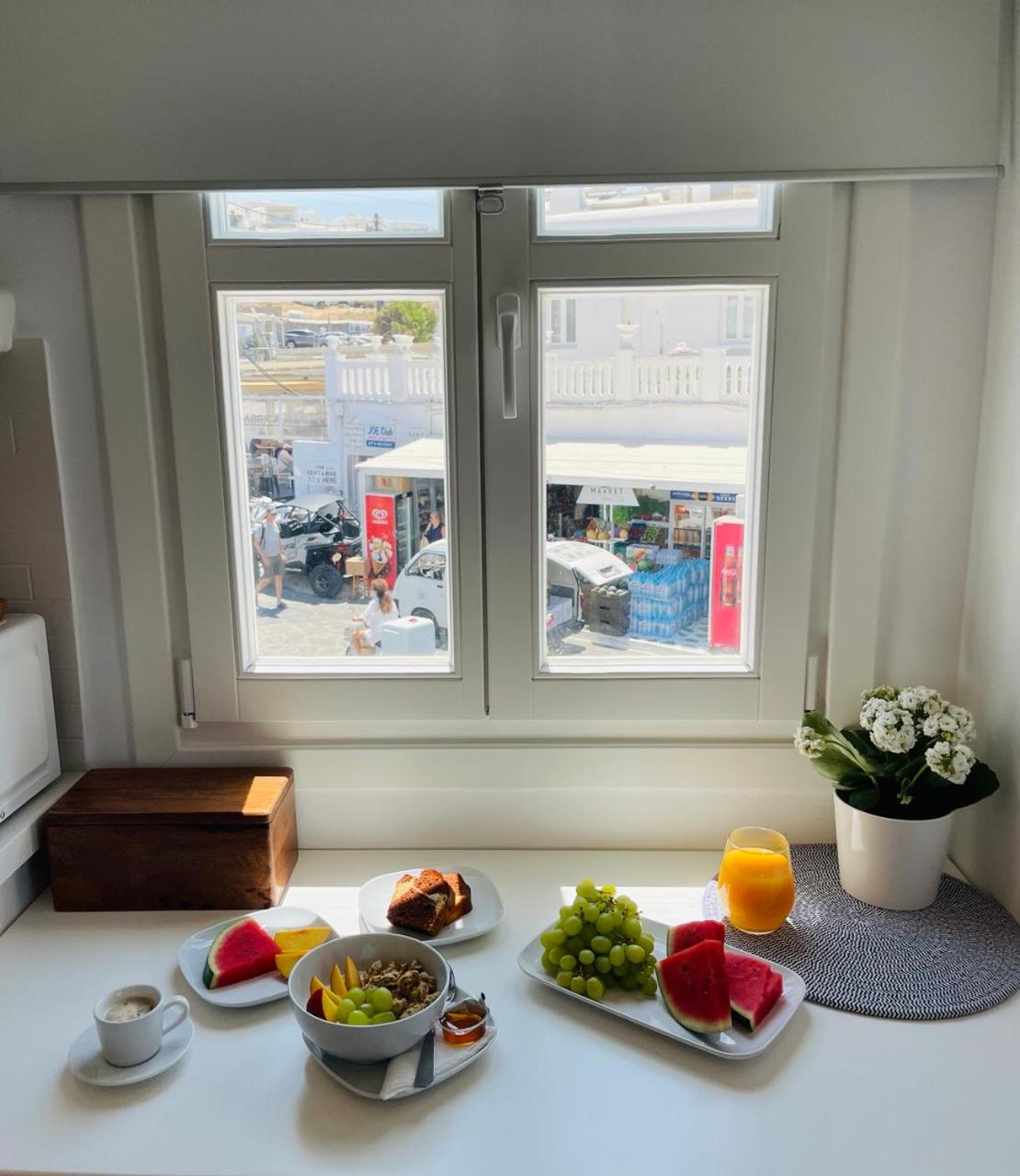 In front are 2 Supermarkets, and one of them we call the 7/11 of Mykonos because it is 24hours open.