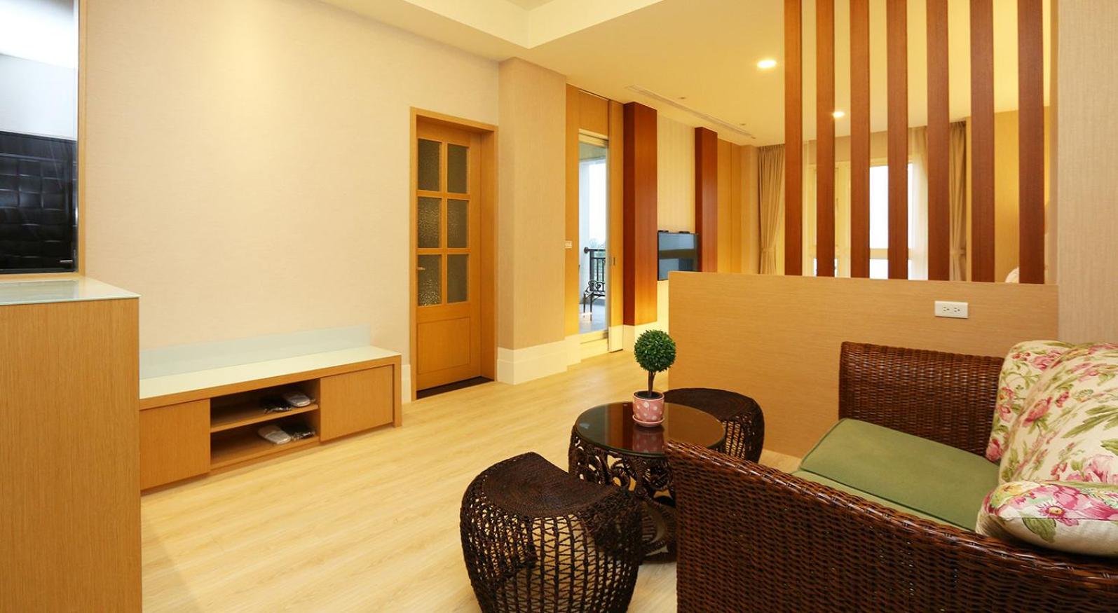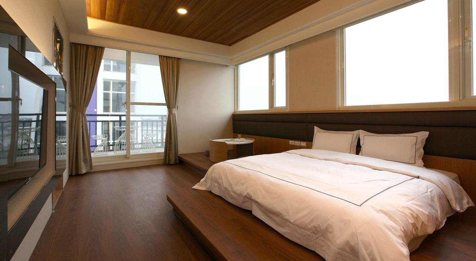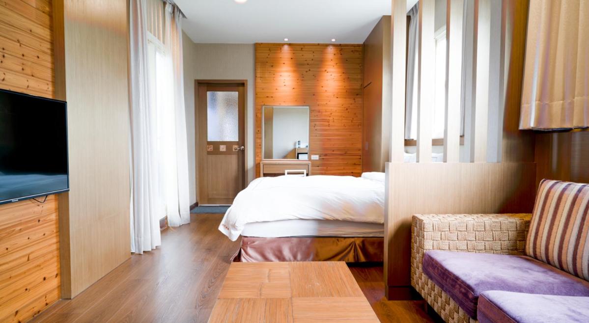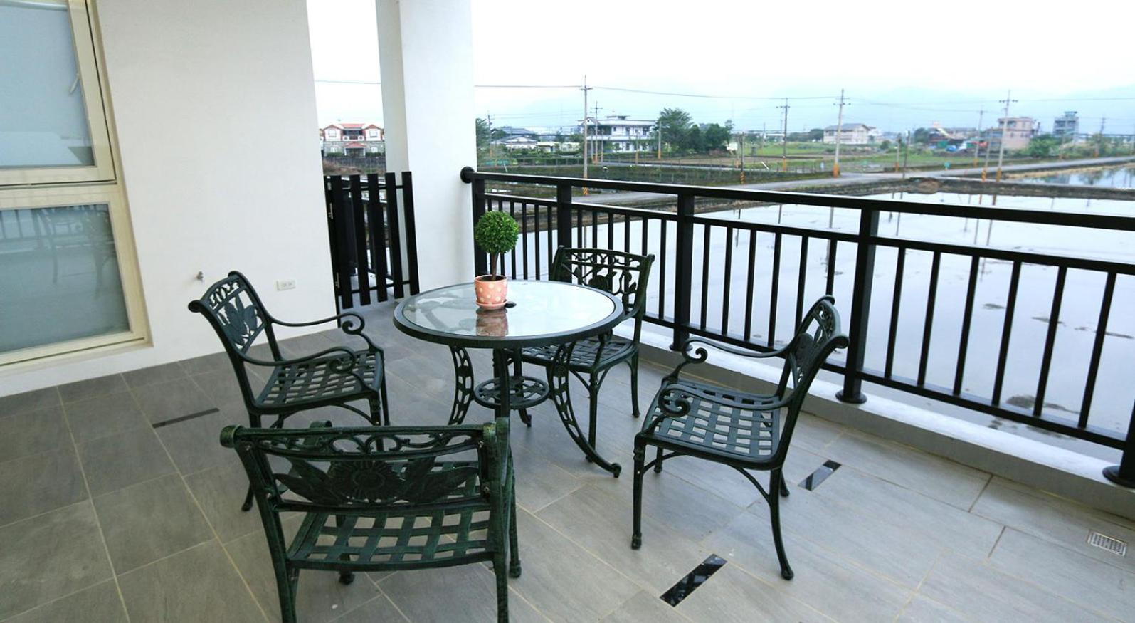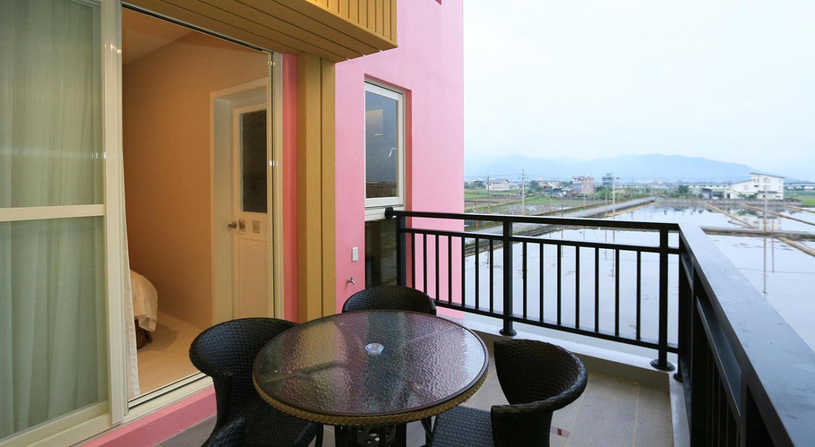 Experience tranquility at Ting Feng Cottage in Yuanshan, Yilan County. Indulge in air-conditioned rooms featuring private balconies with stunning mountain views. Some units even offer soundproofing for a peaceful stay.
