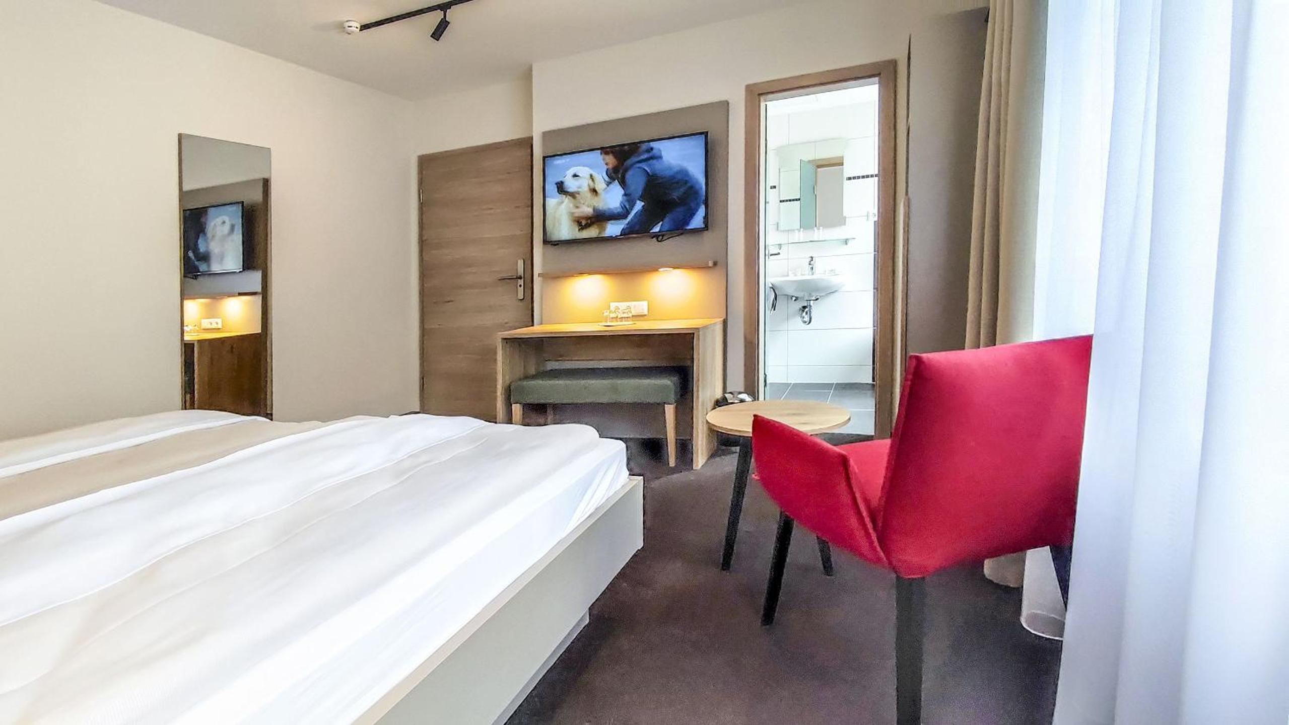 Gute Lage, schöne moderne Zimmer, sehr freundliches Personal, gutes, reichhaltiges Frühstück und ein Restaurant dass keine Wünsche offen lässt.