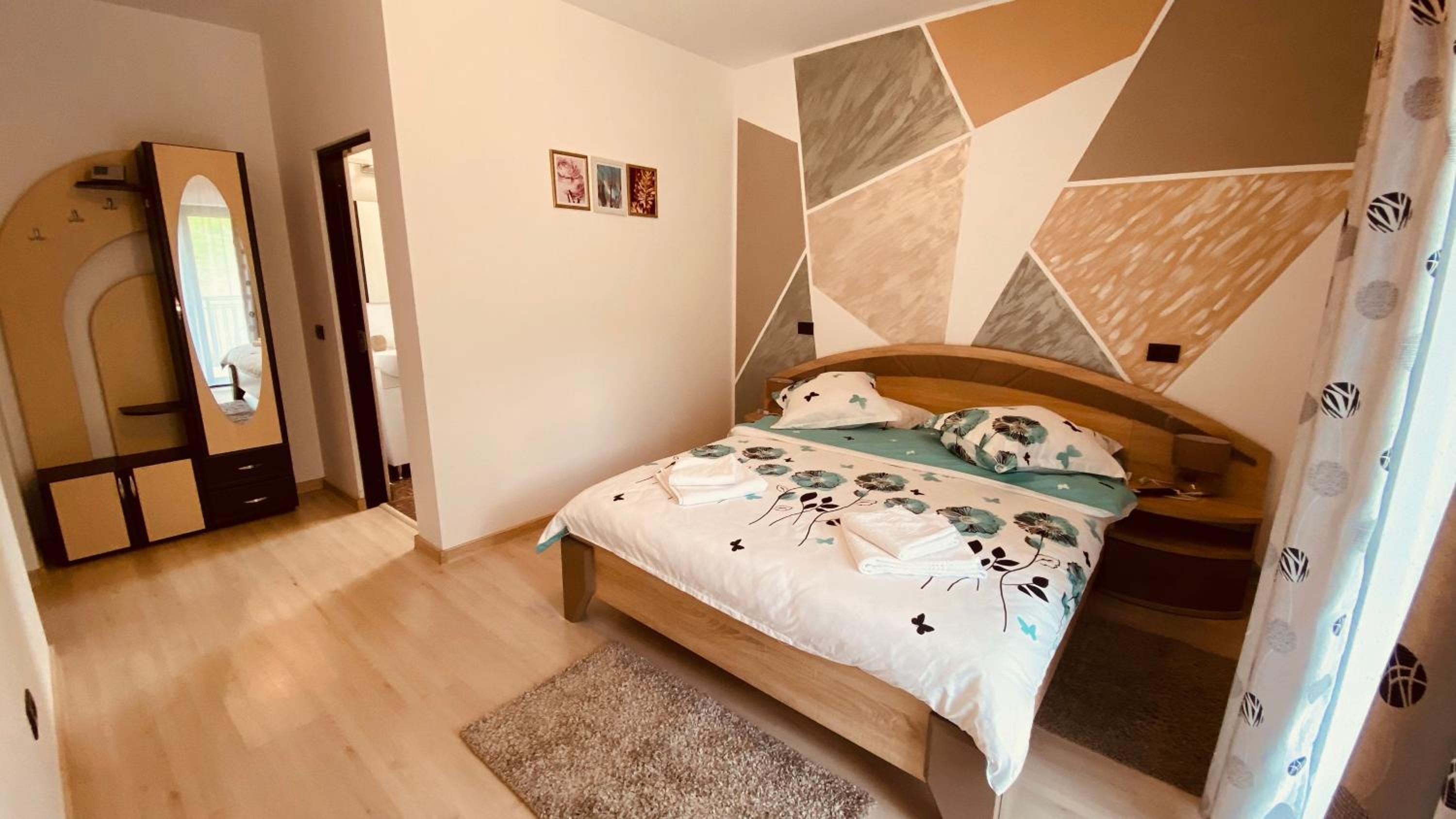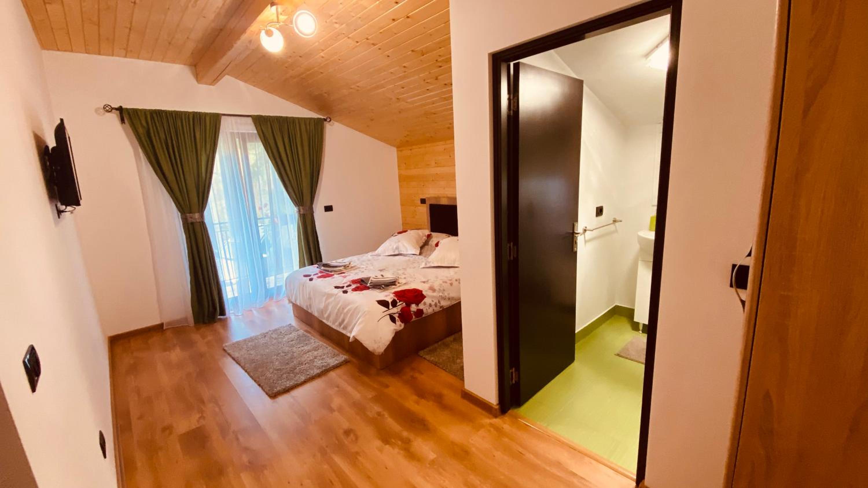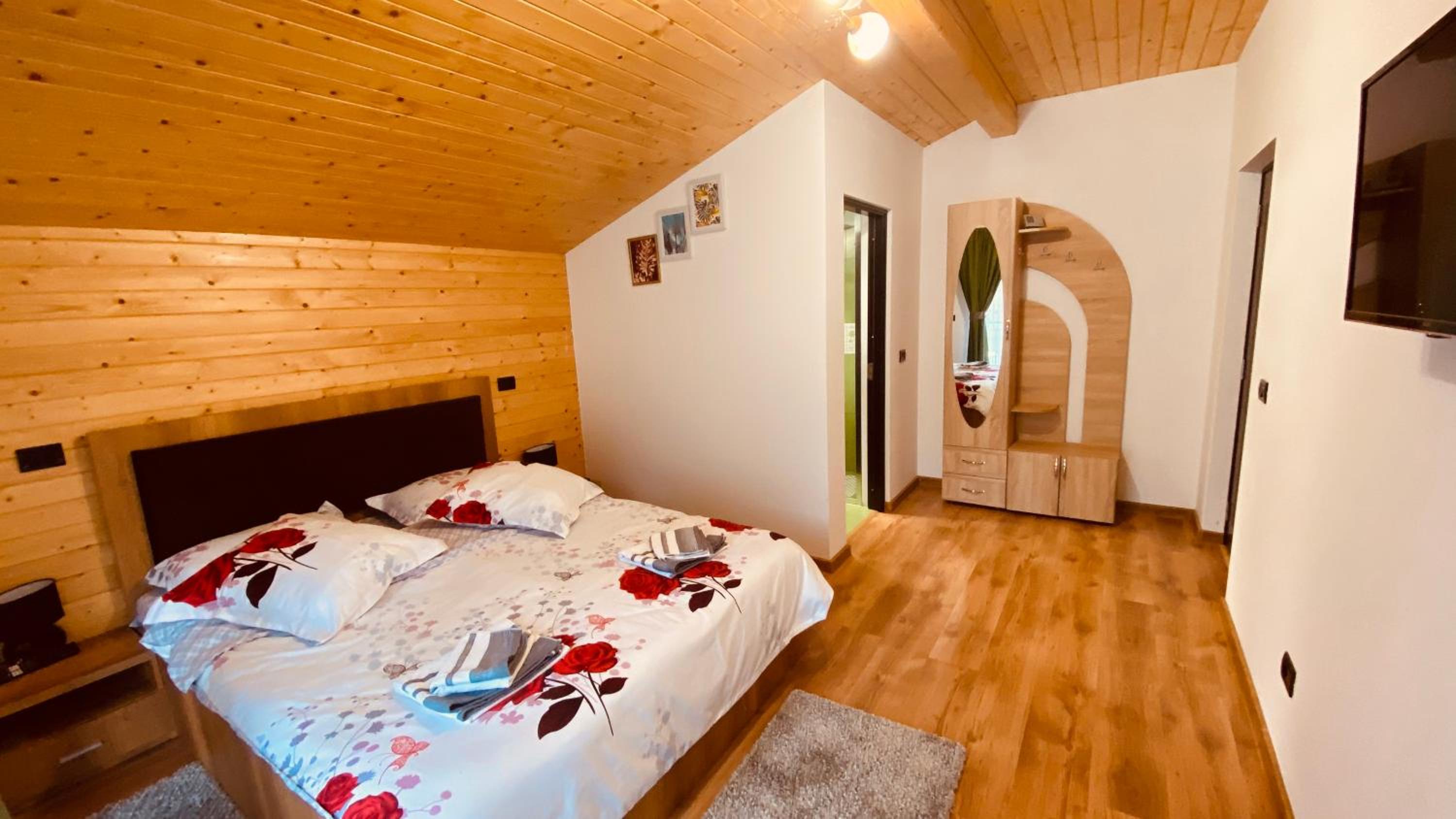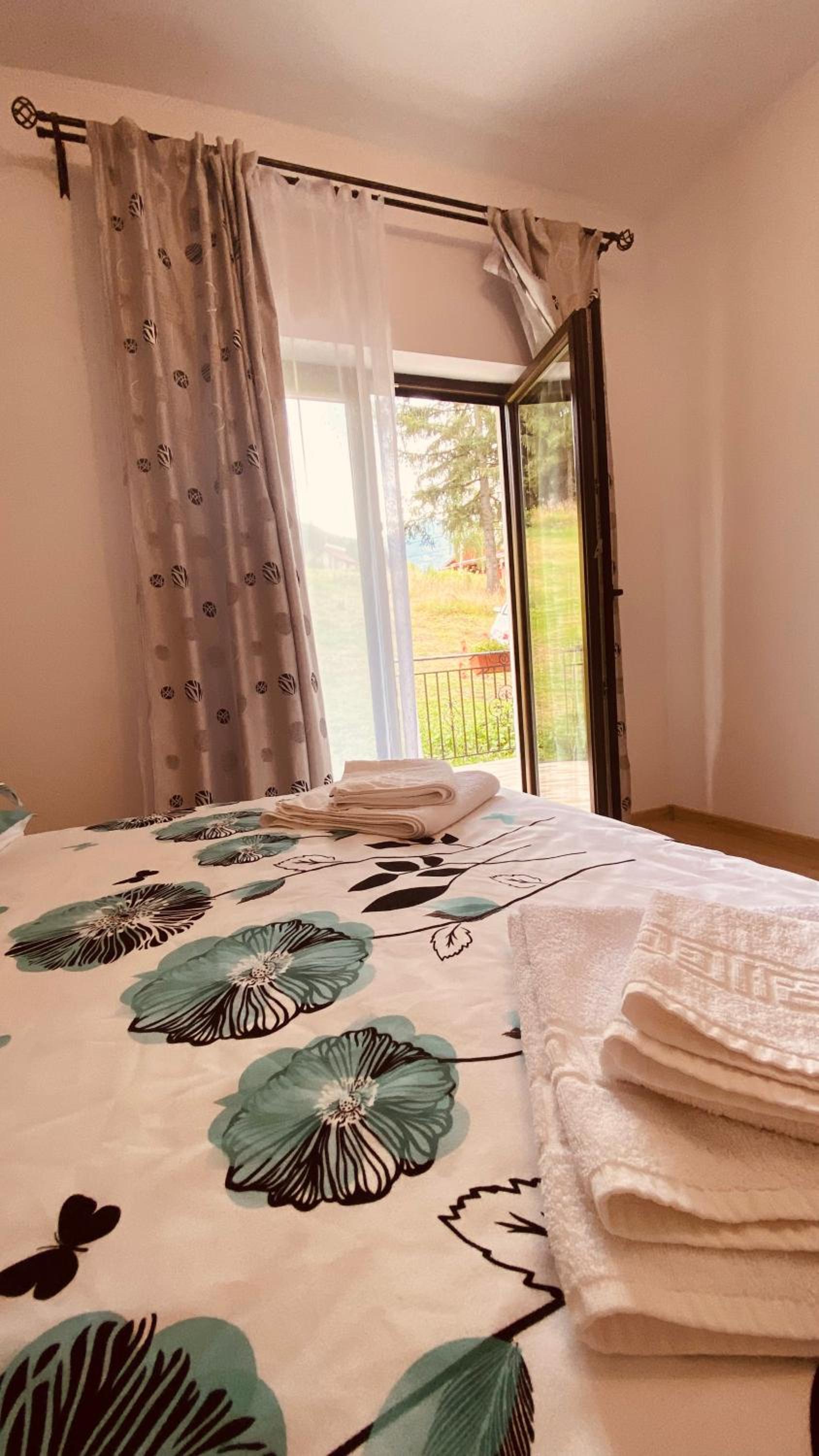 Небольшой отель расположен в красивом и тихом месте в горах. Большая и красивая комната с балконом с видом на горы. Небольшая, но удобная ванная комната с душем. На первом этаже общая кухня, оснащенная всем необходимым и столовая, где можно поесть. Хочется особо отметить радушную хозяйку и то, с какой любовью обставлен каждый уголок отеля.