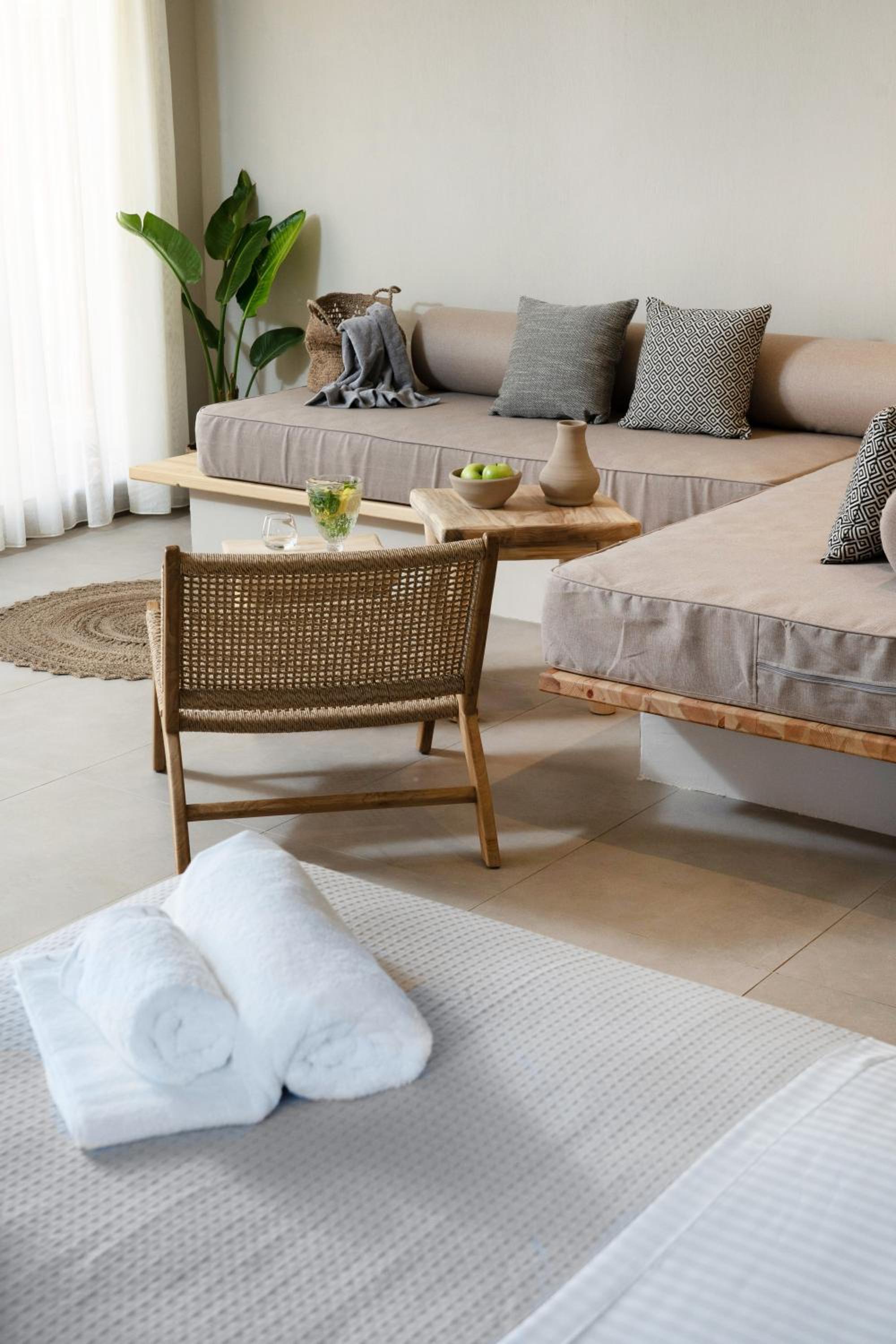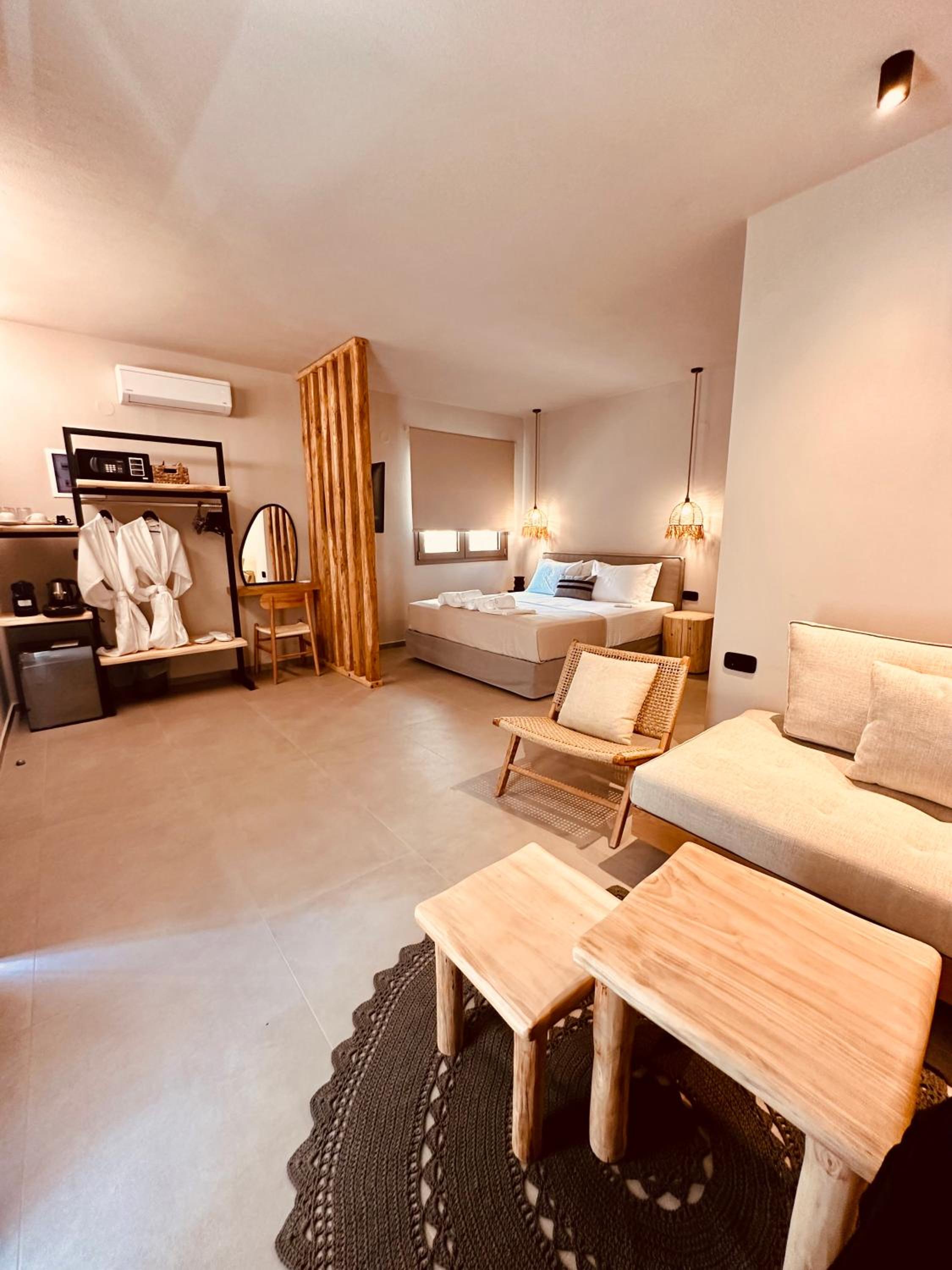 We booked a last minute room since we wanted a relaxing escape in thassos island. Instead we found an away place we can call Home. Eleni and her team were wonderfull hosts. We travel with my wife and our little boy which he is in the phase of wanted to explore everything, the place was welcoming and in a great location. We got to chose between a wonderful pool or a great beach front. We felt relaxed and recharged with a hight standard of cleaningness in the room and design creat a separation between living space and sleeping quarters.