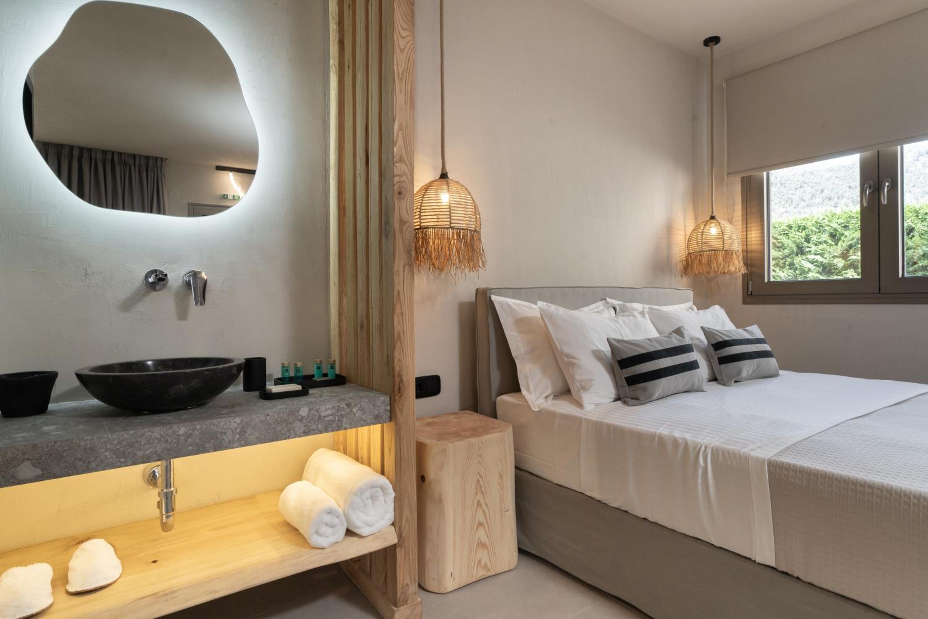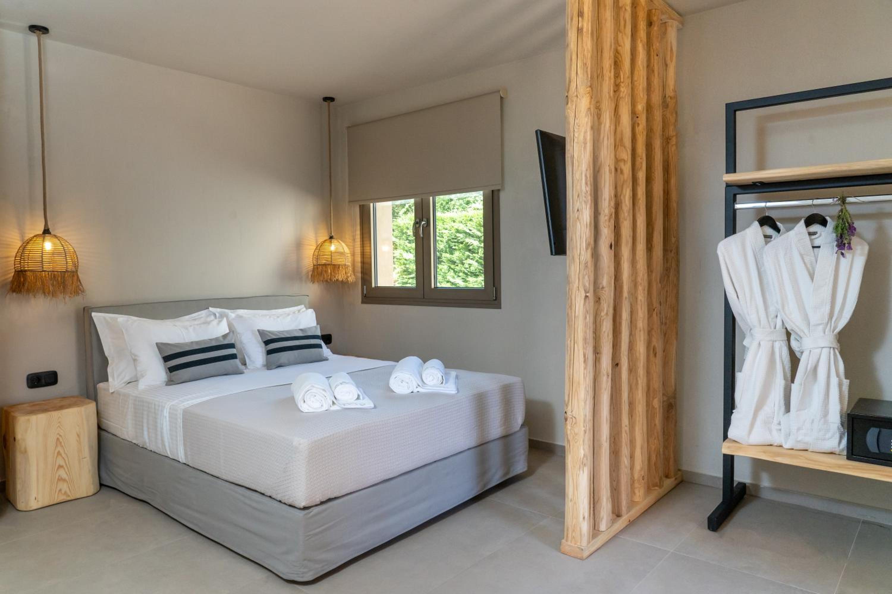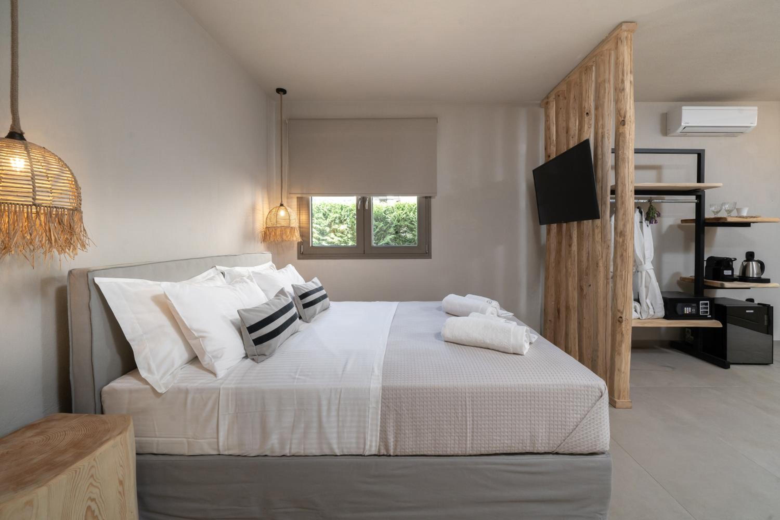 Πολύ όμορφο δωμάτιο με λιτή διακόσμηση,με ήρεμα χρώματα που δένουν με το τοπίο μπροστά από το ξενοδοχείο.Η θάλασσα σε απόσταση αναπνοής,το πρωινό εξαιρετικό,το προσωπικό και οι ιδιοκτήτες άριστοι,η πισίνα έξτρα μπόνους.Ο χώρος μπροστά από το ξενοδοχείο προστευομενος natura αρκετα ιδιαιτερος και η Σκάλα Ποταμιας σε αποσταση χαλαρού περπατήματος 15 λεπτων.ο Λιμενας και η Παναγια κοντα με το αμαξι.δωματια για ήρεμες διακοπες.