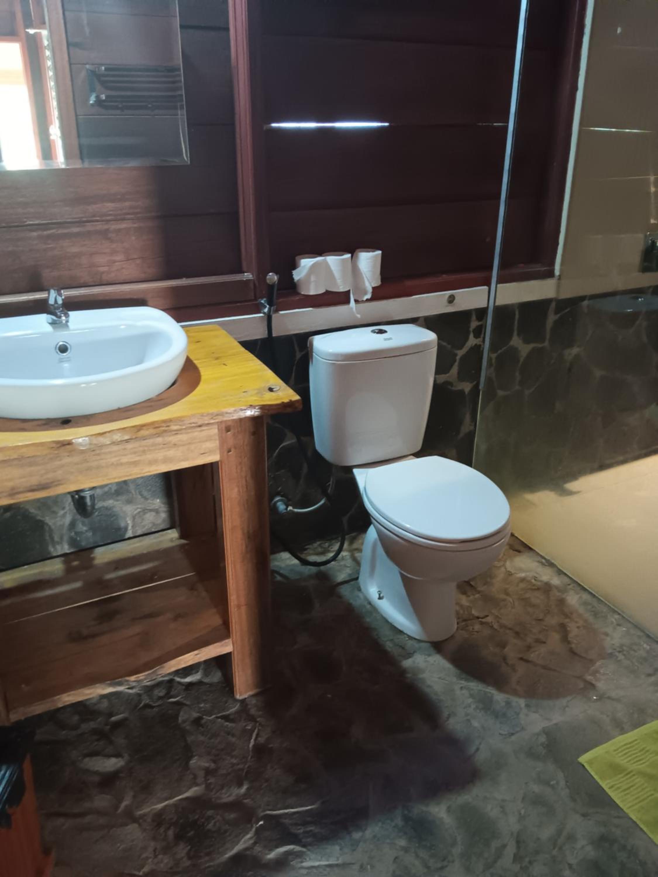 Le ménage dans la salle de bain n’était pas très bien fait à notre arrivée dans la chambre.