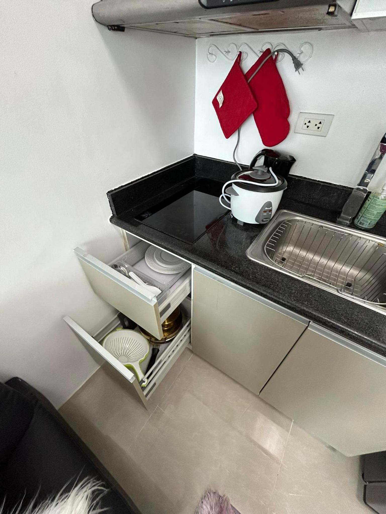 The place is dirty overall. From the bathroom, kitchen to the bedroom. Seems like the place has not been rented for a long time. Dusty and sinks smells really bad like sewer. Lots of empty snacks boxes underneath the bed. Kitchen counters and sink are nasty. Microwave needs to be change old, filthy dirty and rust inside it. Bathroom has a lot of molds including toilet seat. One of the restroom’s toilet was not flushing and owner did not inform us til her staff came over to check the front door lock. Toilet seat is broken. Toilet bowl has cracked and needs to be replaced. Untensils are dirty. Thankfully, there was hot water running from the shower.