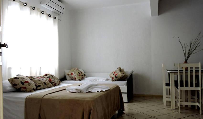 The simply decorated rooms at Dom Fish are air-conditioned and equipped with essential amenities such as a minibar, safe, and private bathroom with a hot shower for a comfortable stay.