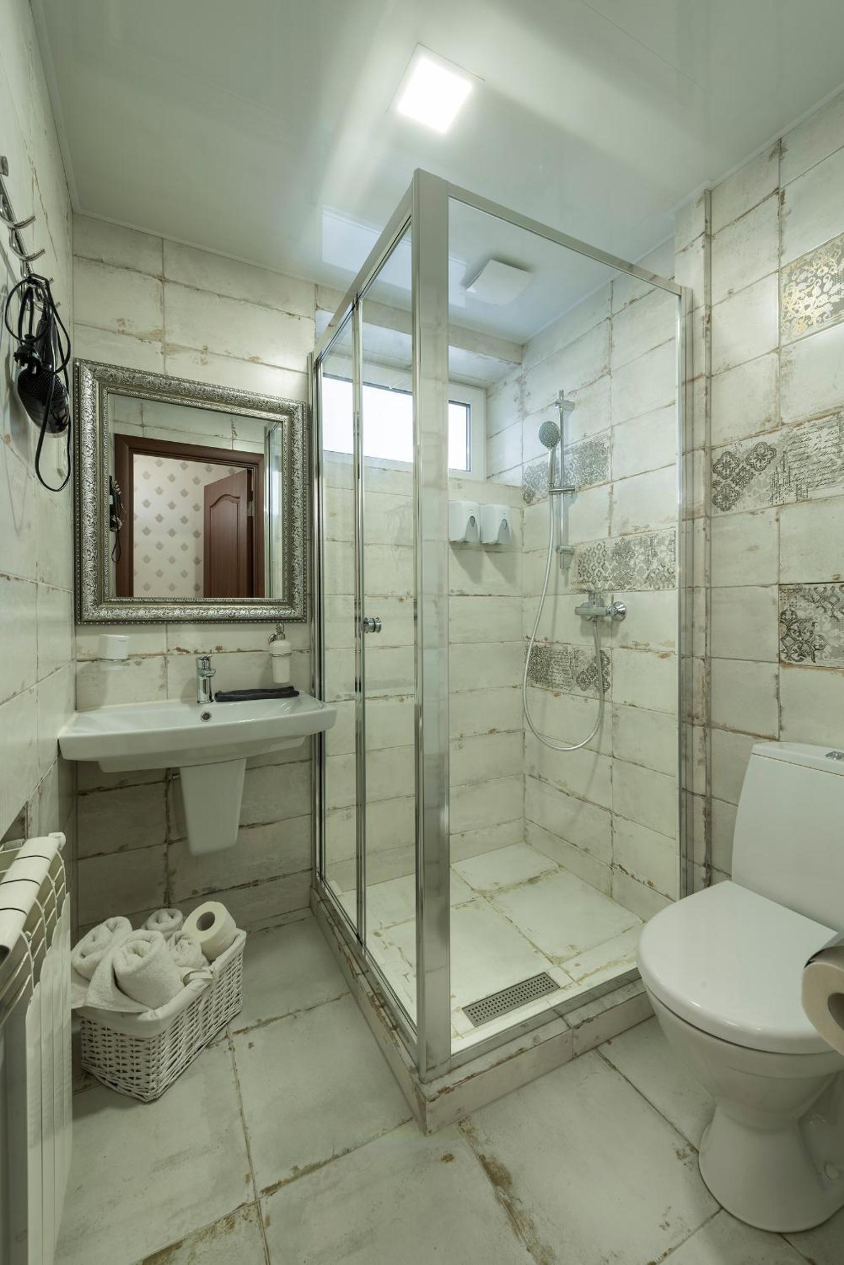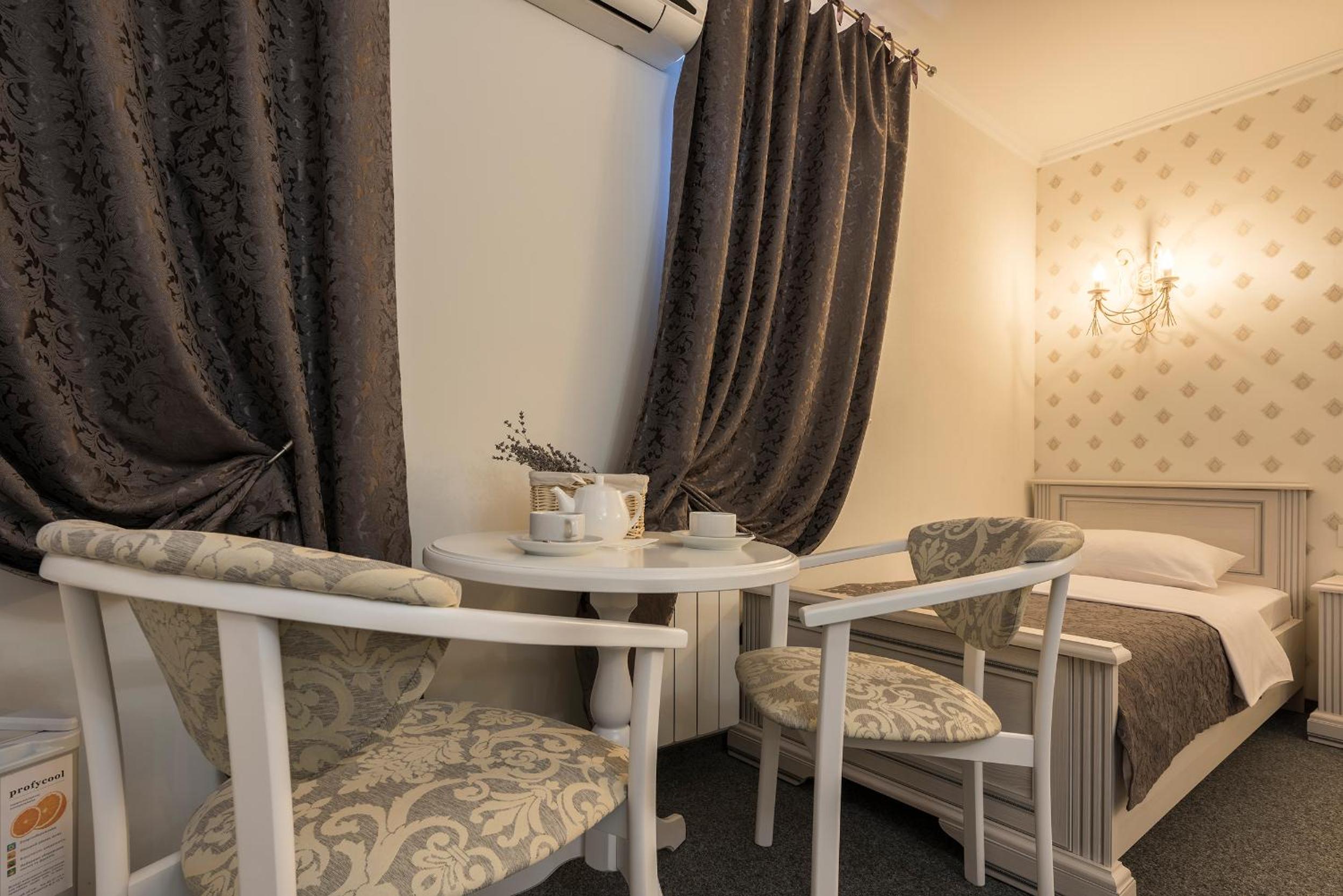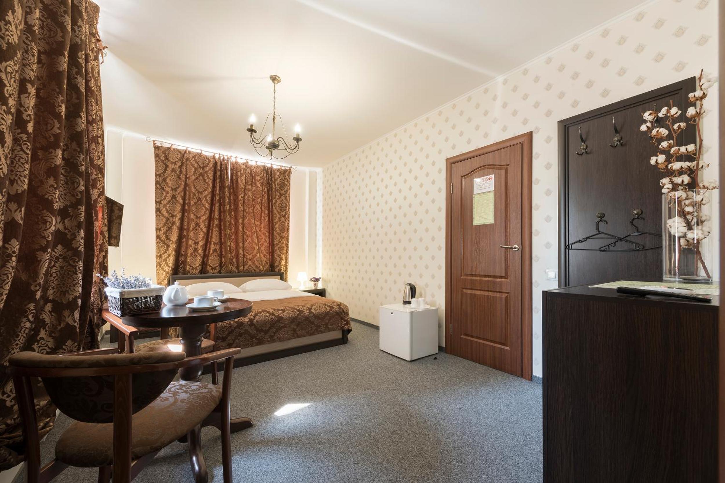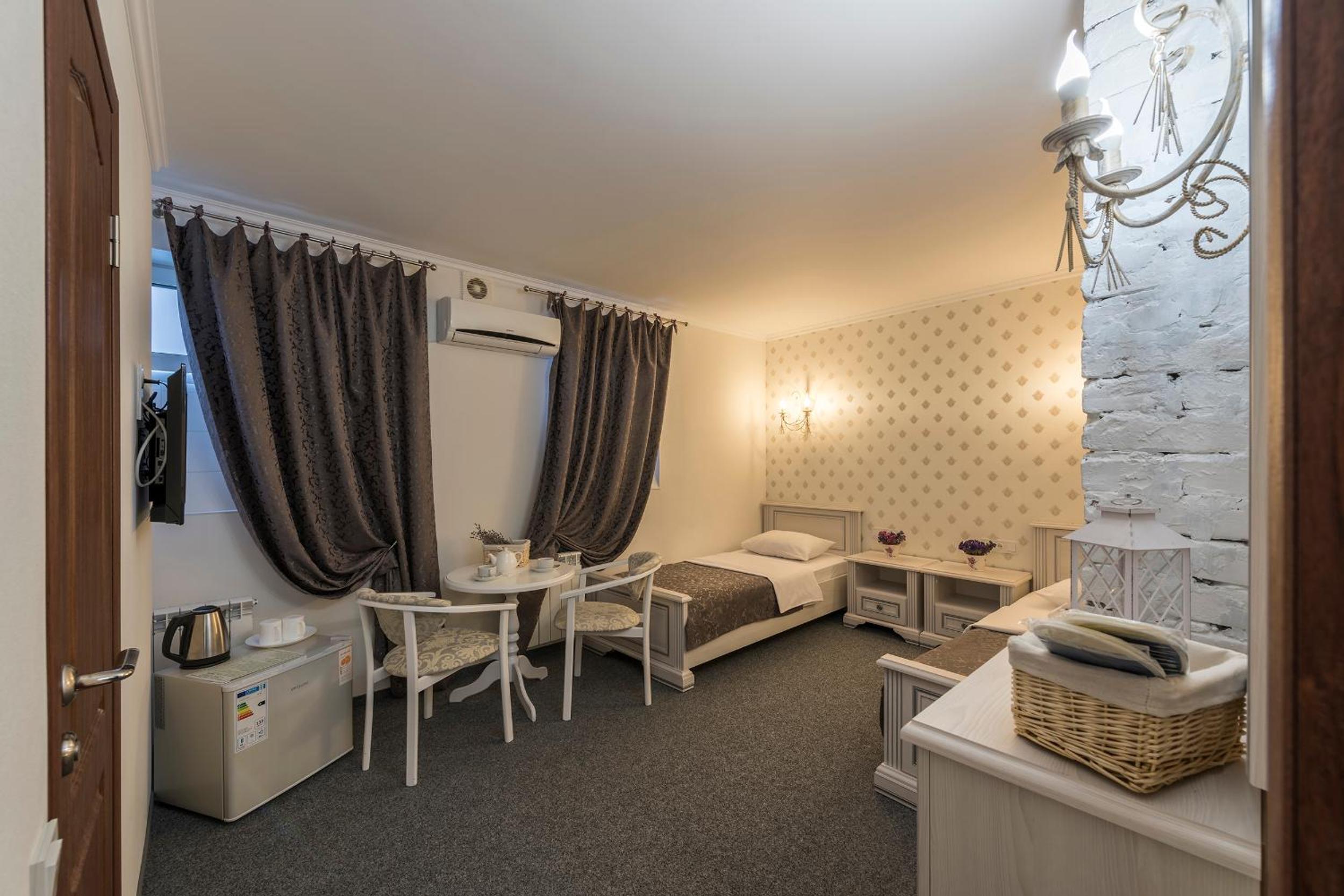 Experience modern interiors and designer furniture in our air-conditioned rooms at Mini Hotel Ryleev. Relax on parquet floors and enjoy amenities like a flat-screen satellite TV, refrigerator, and private bathroom.