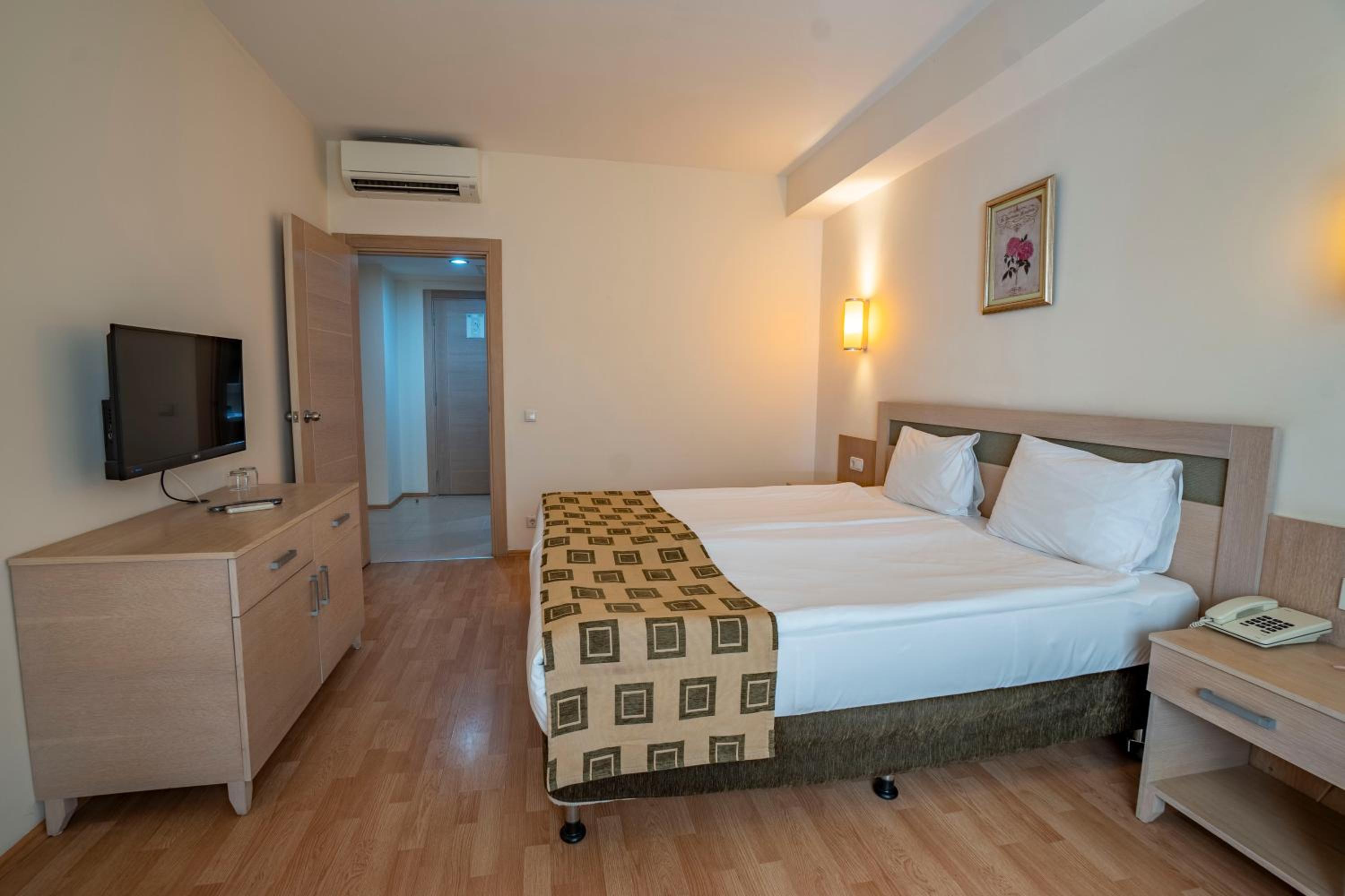 Experience the ultimate comfort and relaxation at Side Breeze Hotel in Antalya. Indulge in our spacious rooms with modern amenities like air conditioning, flat-screen TVs, and private balconies offering stunning pool views.