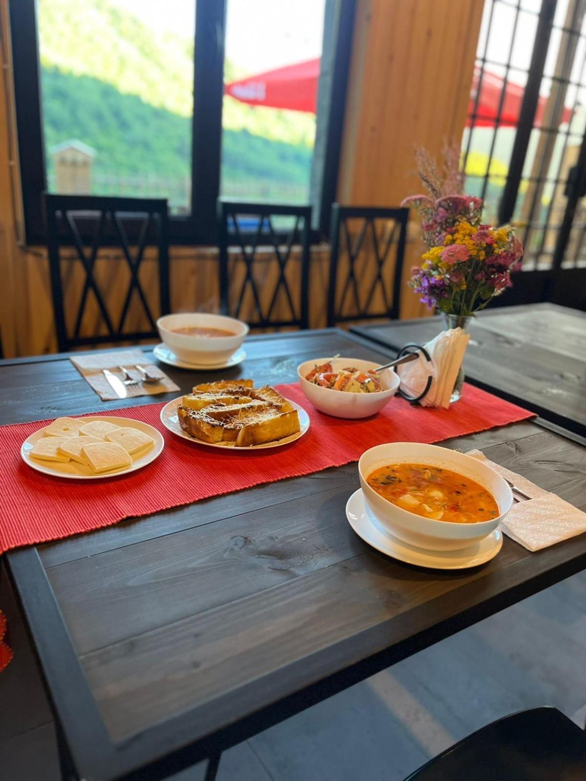 Favorite accommodation on the four day hike (and maybe in our whole stay in Georgia)! New building with rustic/lodge style. They have some board games in the shared space. Spacious bedroom with private bathroom which we were so thankful for after two days of hiking and staying in places with shared bathrooms. The bed was so comfortable! I have found every other accommodation in Georgia to have more firm mattresses which are not my preference, this is the only one in two weeks that I found actually comfortable. The food was quite good and they served out some of the main dishes in individual portions which I thought was very helpful rather than having to have everything family style in a group of strangers where maybe you don't get as much of a dish you like