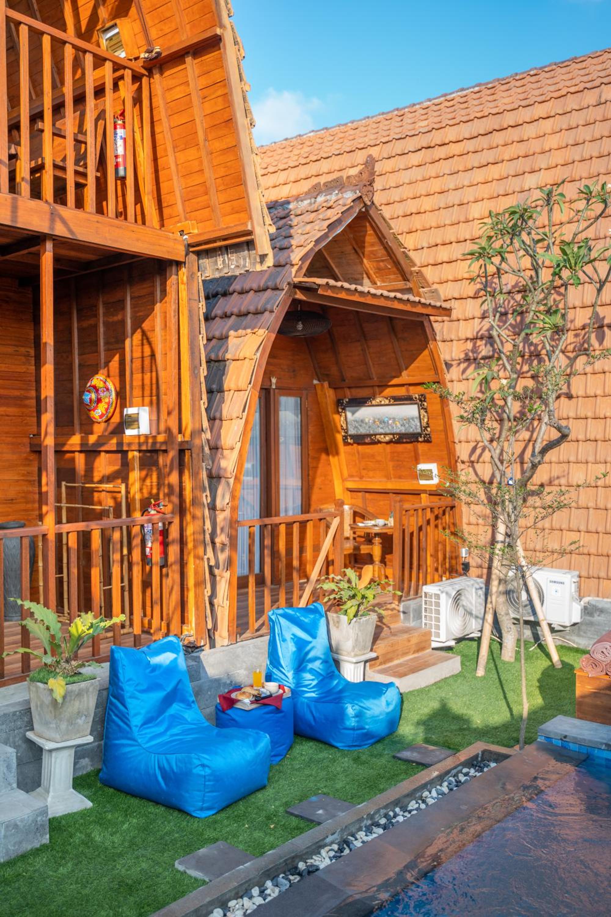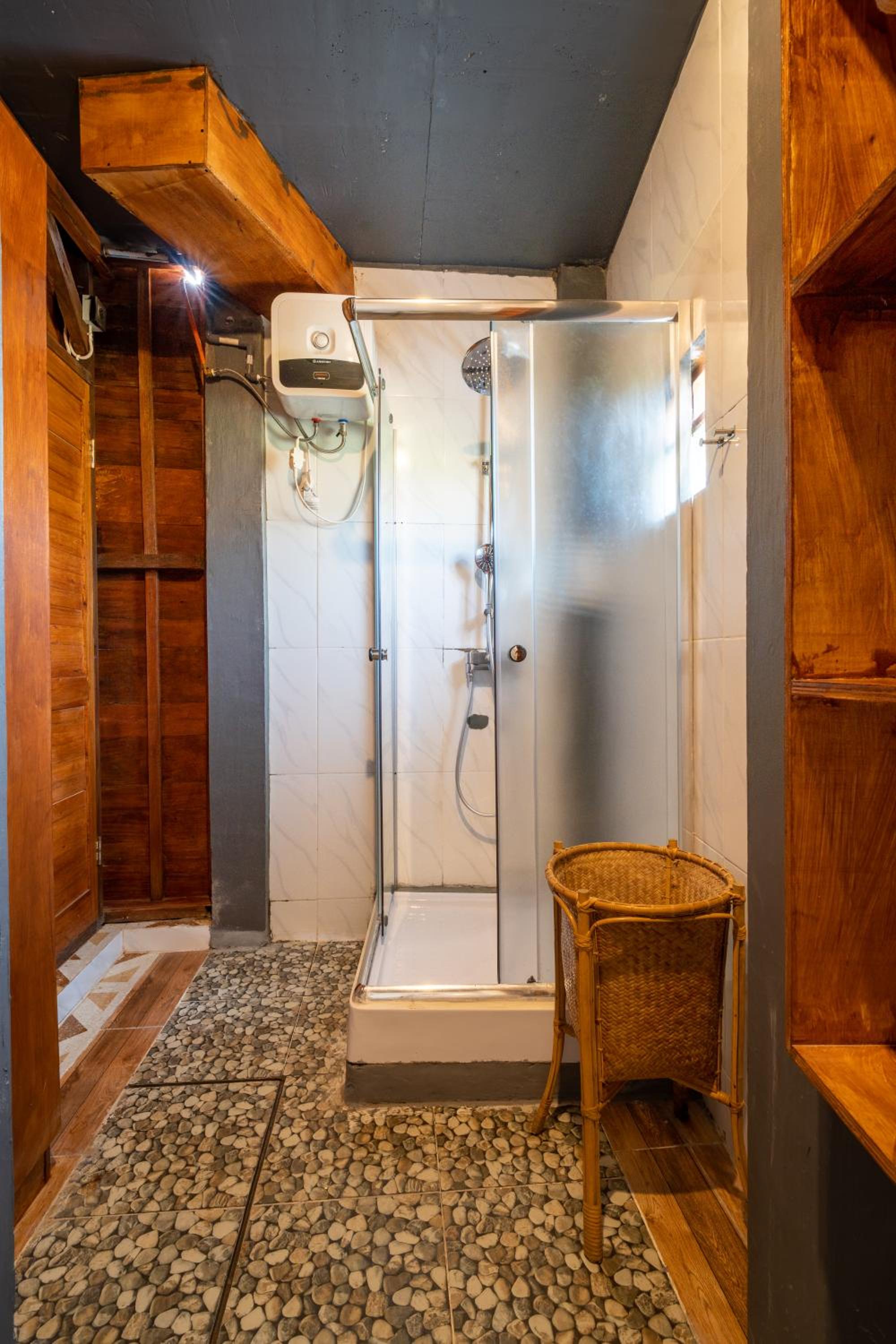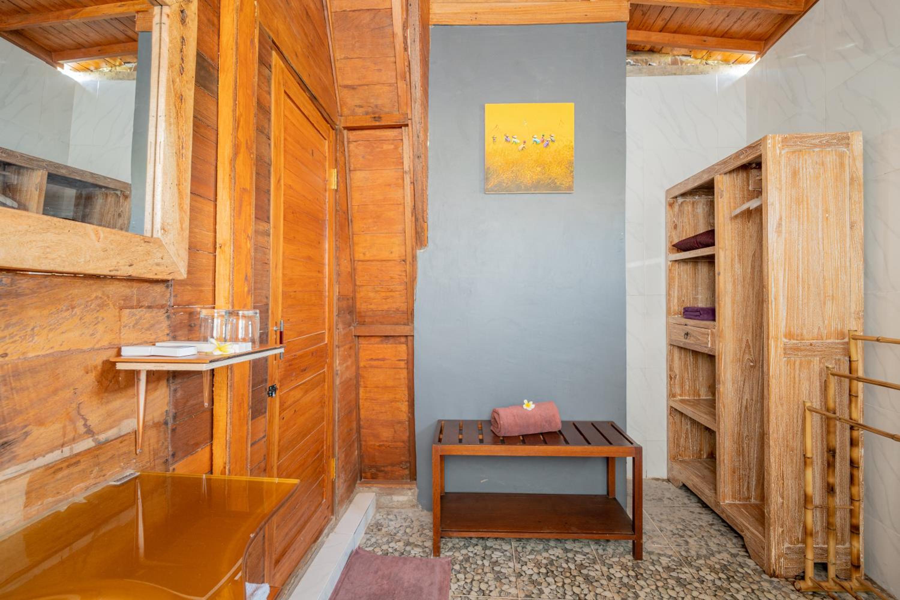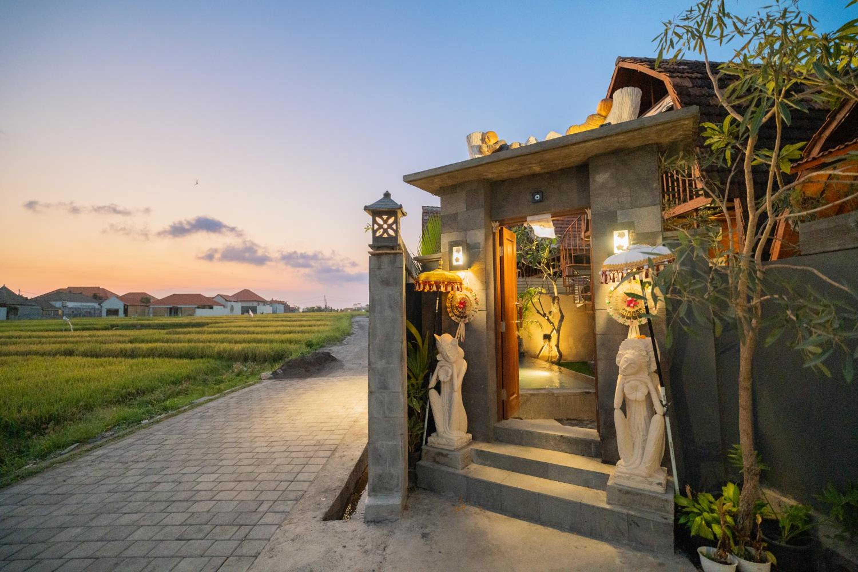The street to the property can be very dark at night because it is surrounded by rice fields. So if you’re walking you need to have a flashlight. Anyway it’s just a short distance and we’ve tried it once and it seemed safe. The shower closet in our room was a little off and drains slow. Other than these our stay was really nice.