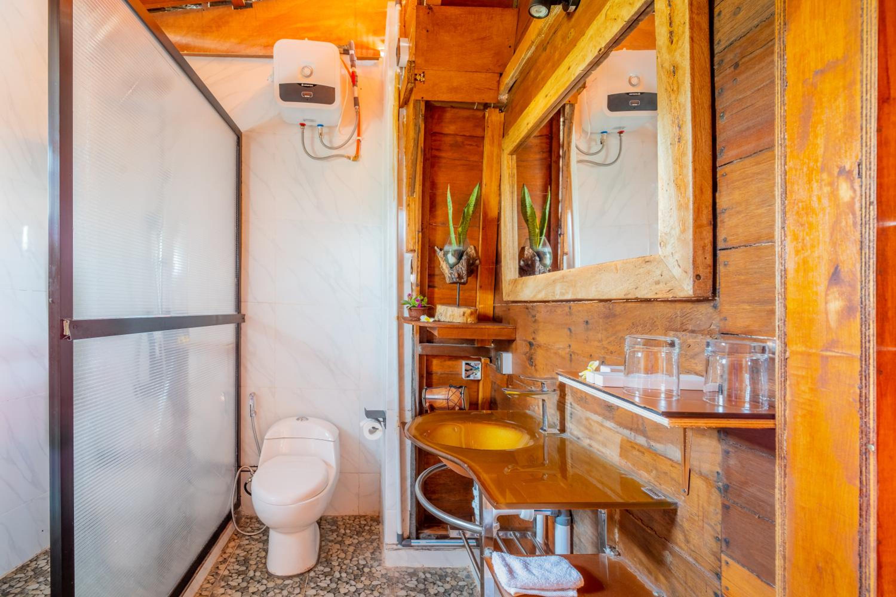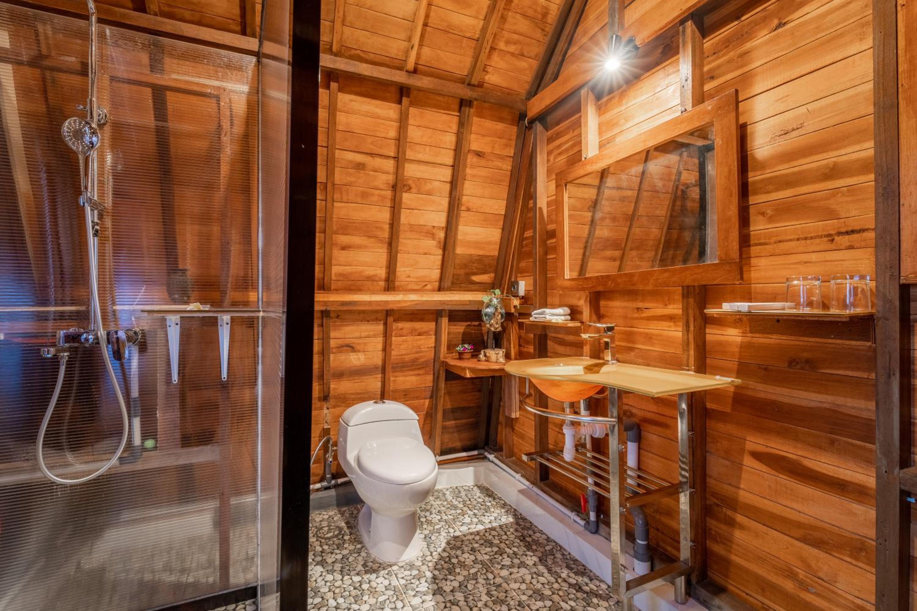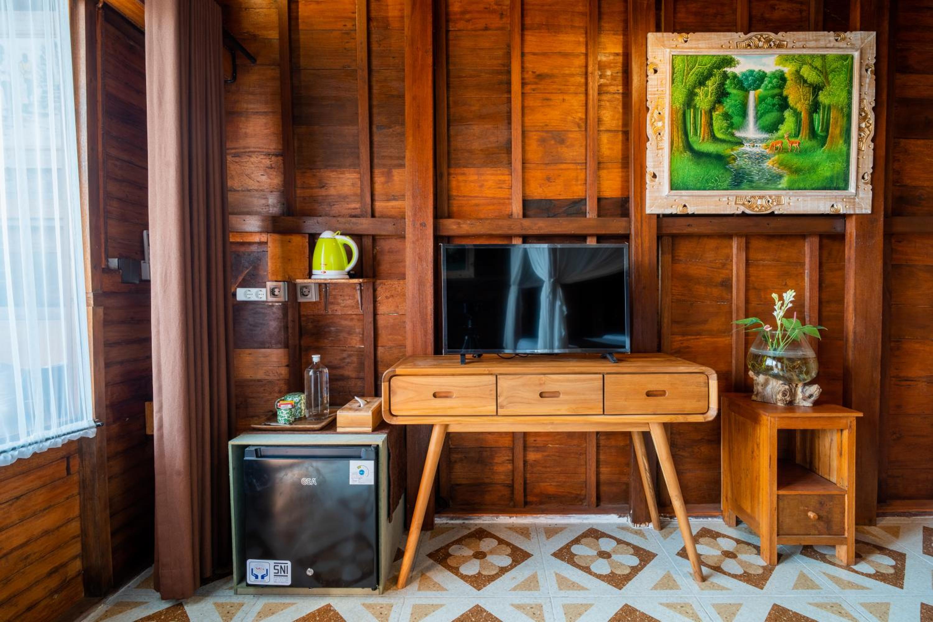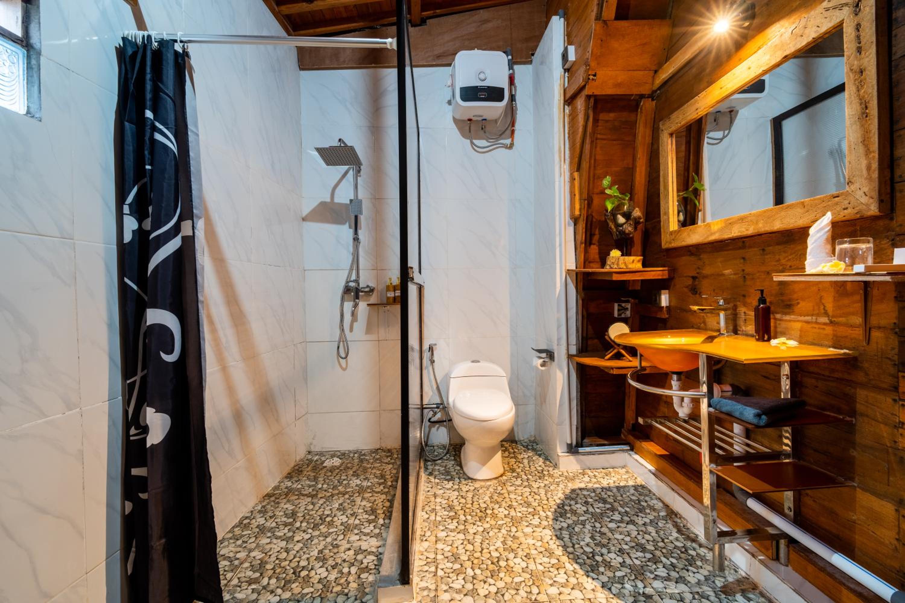 The street to the property can be very dark at night because it is surrounded by rice fields. So if you’re walking you need to have a flashlight. Anyway it’s just a short distance and we’ve tried it once and it seemed safe. The shower closet in our room was a little off and drains slow. Other than these our stay was really nice.