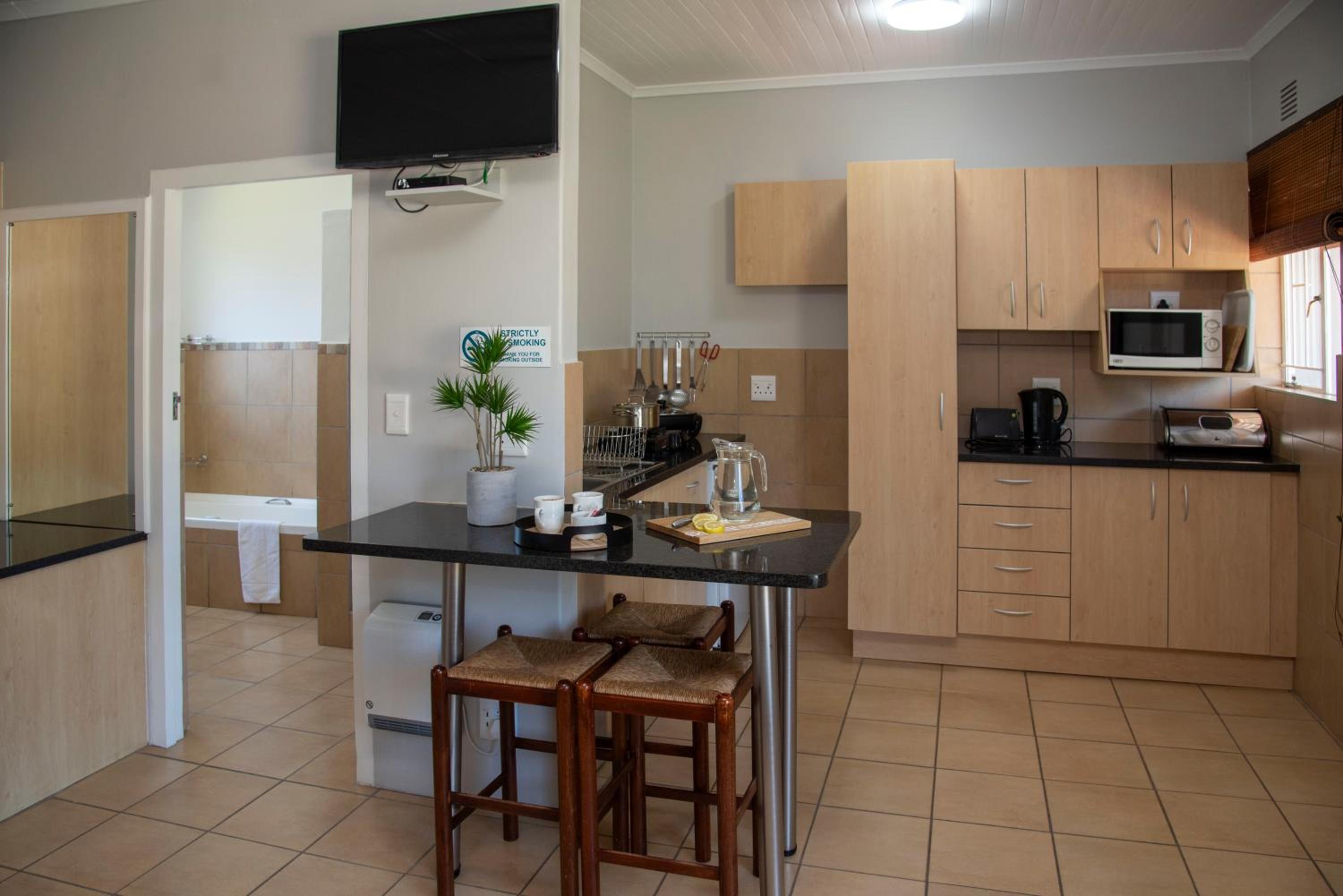 If you stay there and prepare food, you need to eat outside. Maybe a fraction to small. They might need to close the stoep’ with windows, then it will be great.