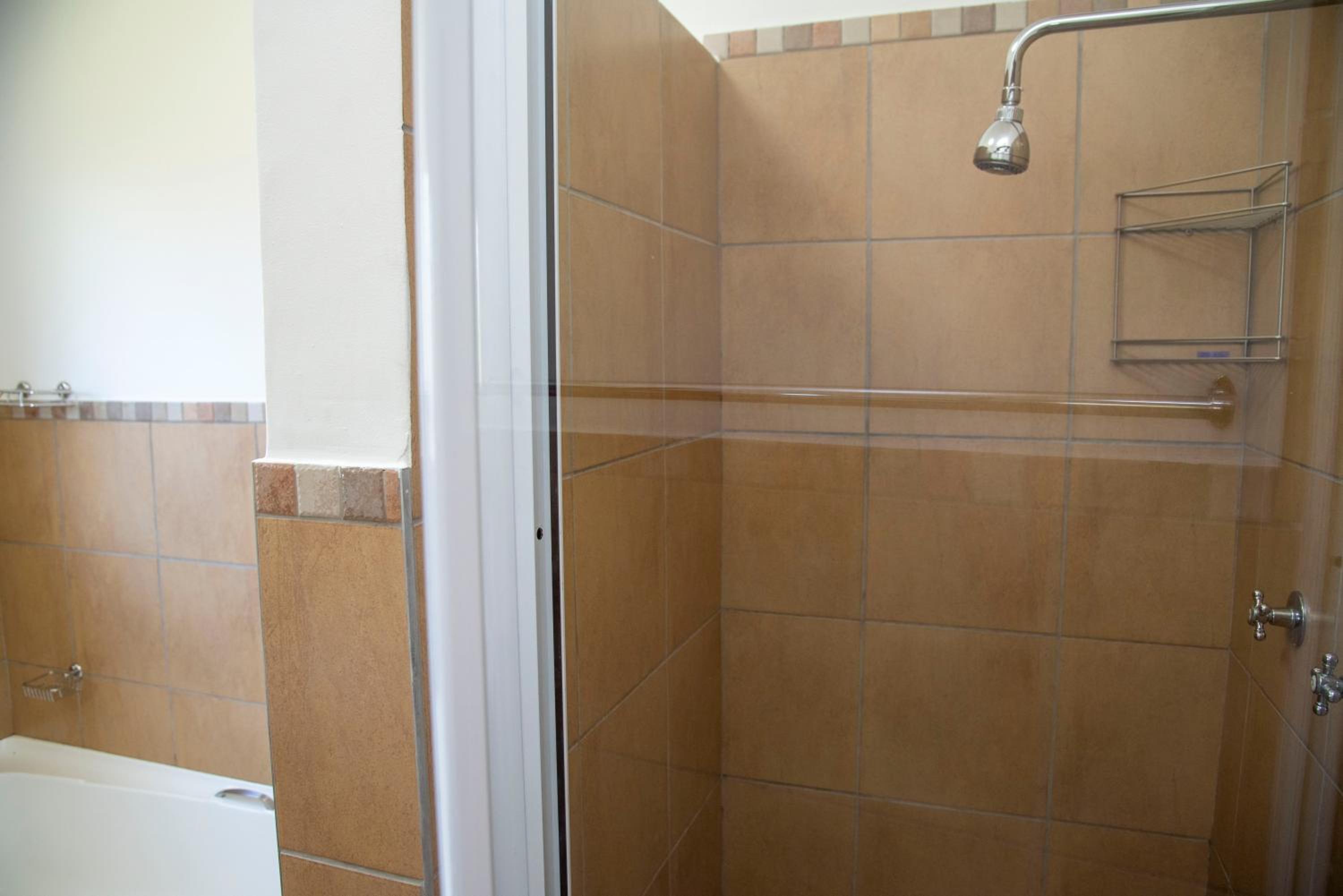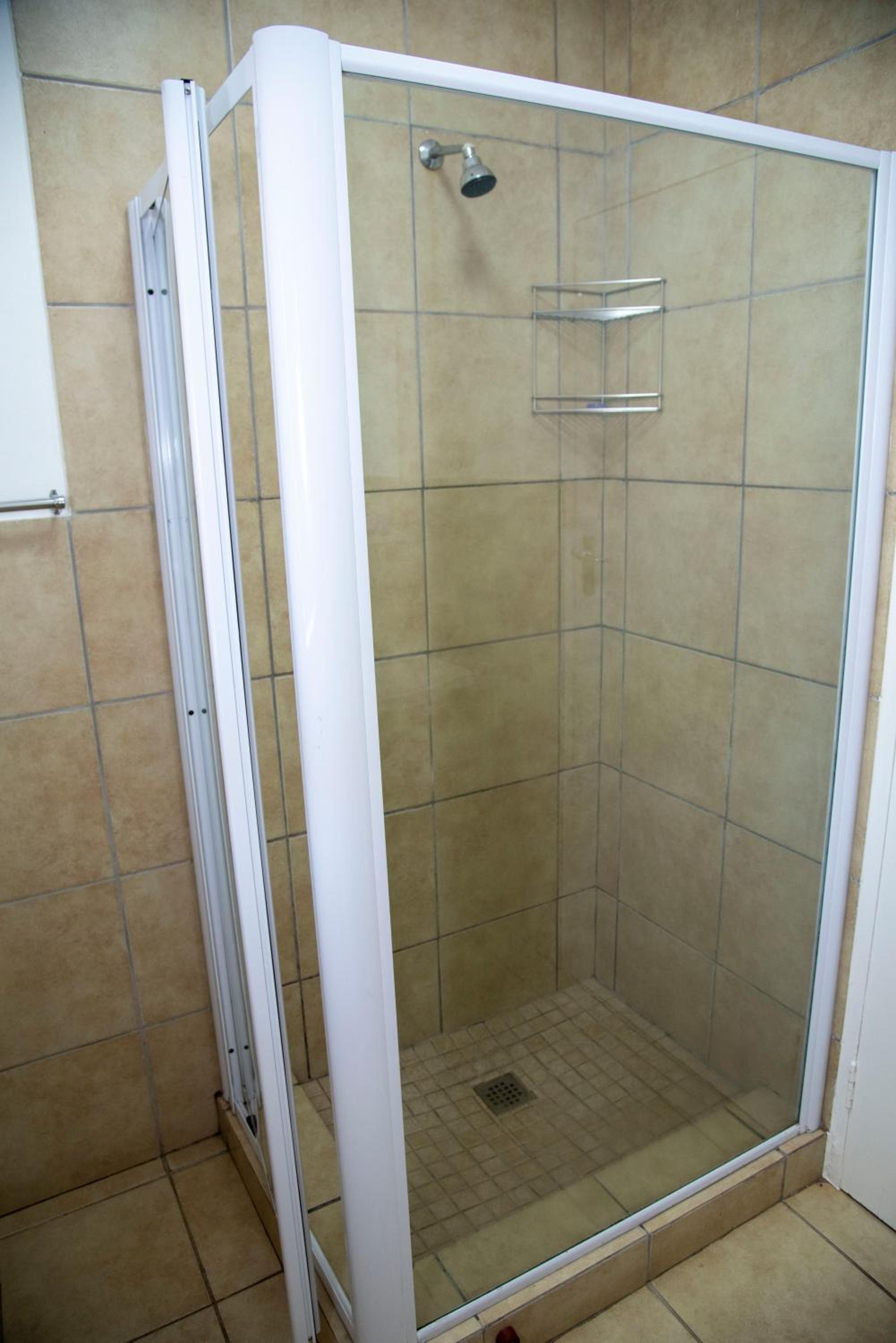 The shower door kept moving and even when it was still, the water leaked onto the bathroom floor so it was always soaking wet after a shower. The mop couldn’t even soak the water.