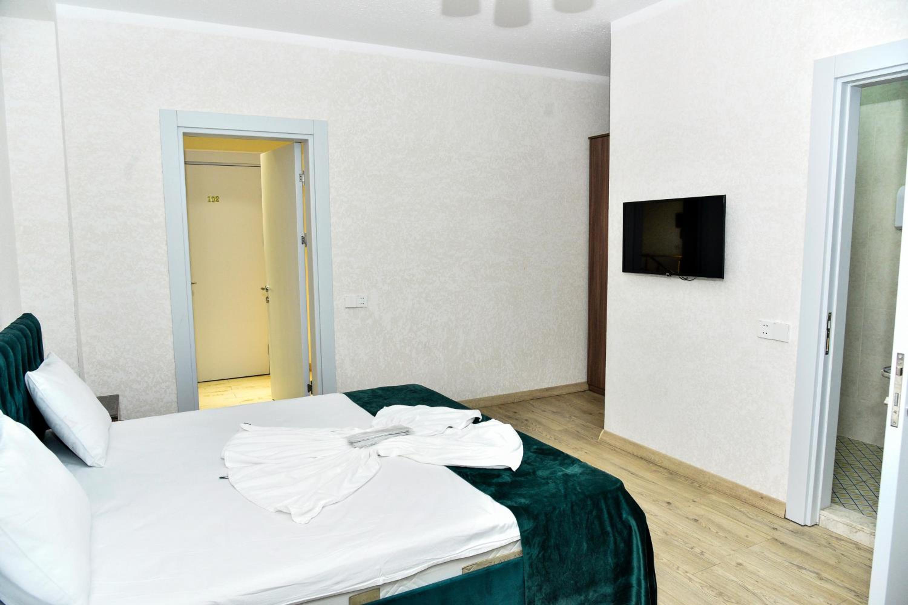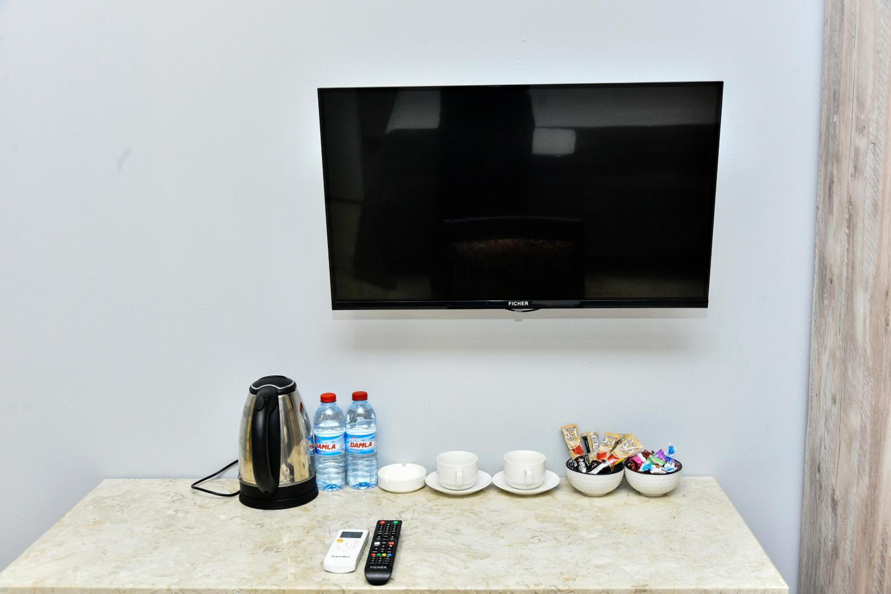Experience comfort and convenience in our air-conditioned rooms with modern amenities, including a flat-screen TV and a private bathroom.
