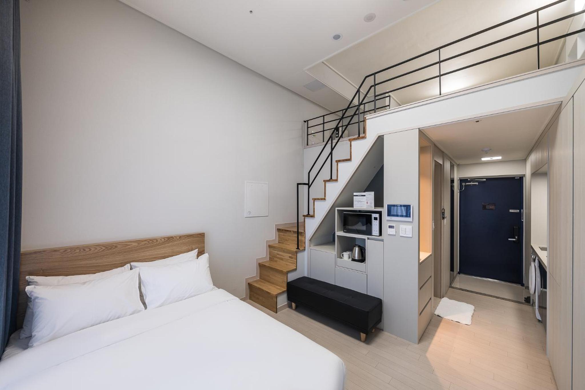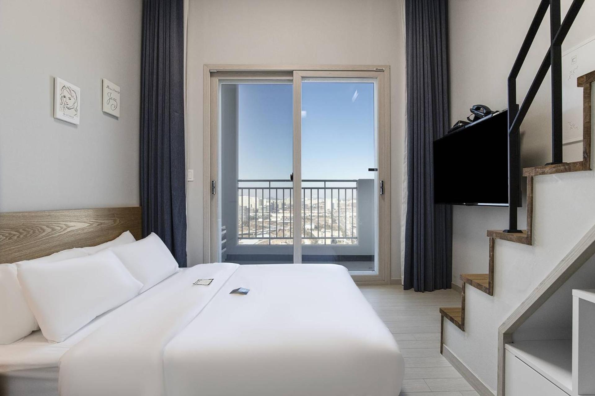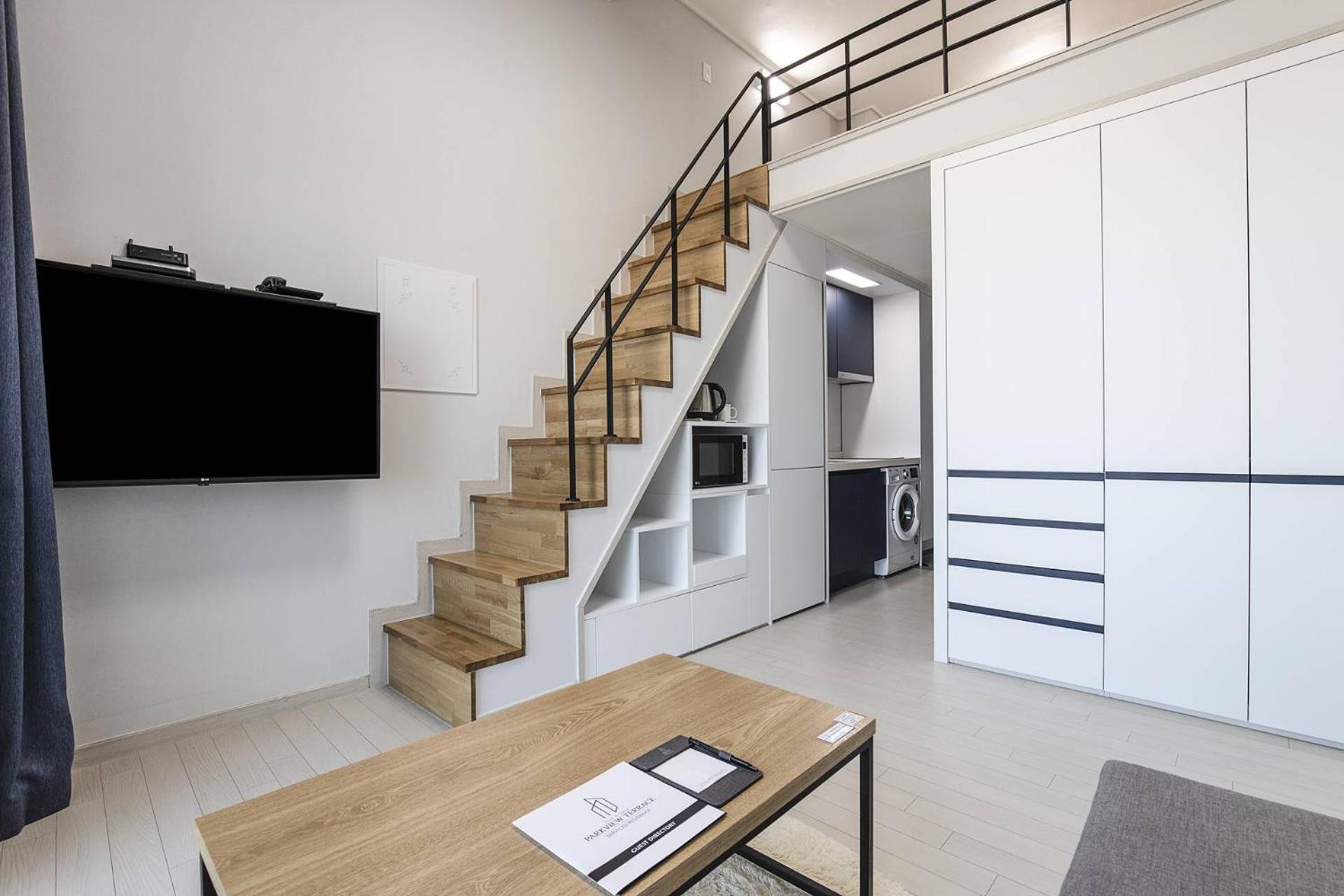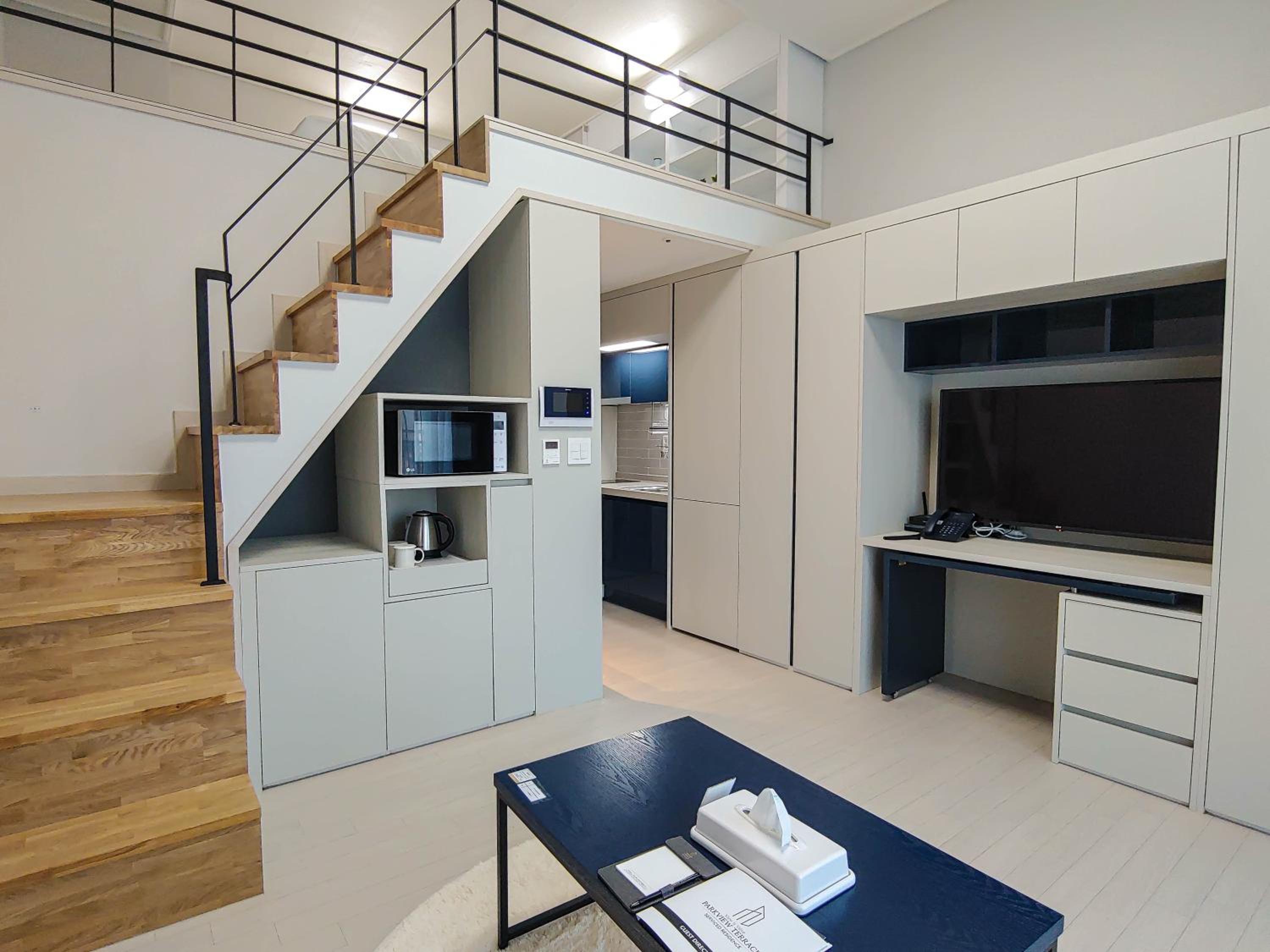 It's a loft and tv have so many channels to watch! I like how it only takes 20-30 mins via bus to reach Goyang stadium(daehwa station). You need to walk about 5-10 mins to reach the bus station by the way. It's more convenient if you're taking uber/taxi to reach. And there's gs25 and CU downstairs!