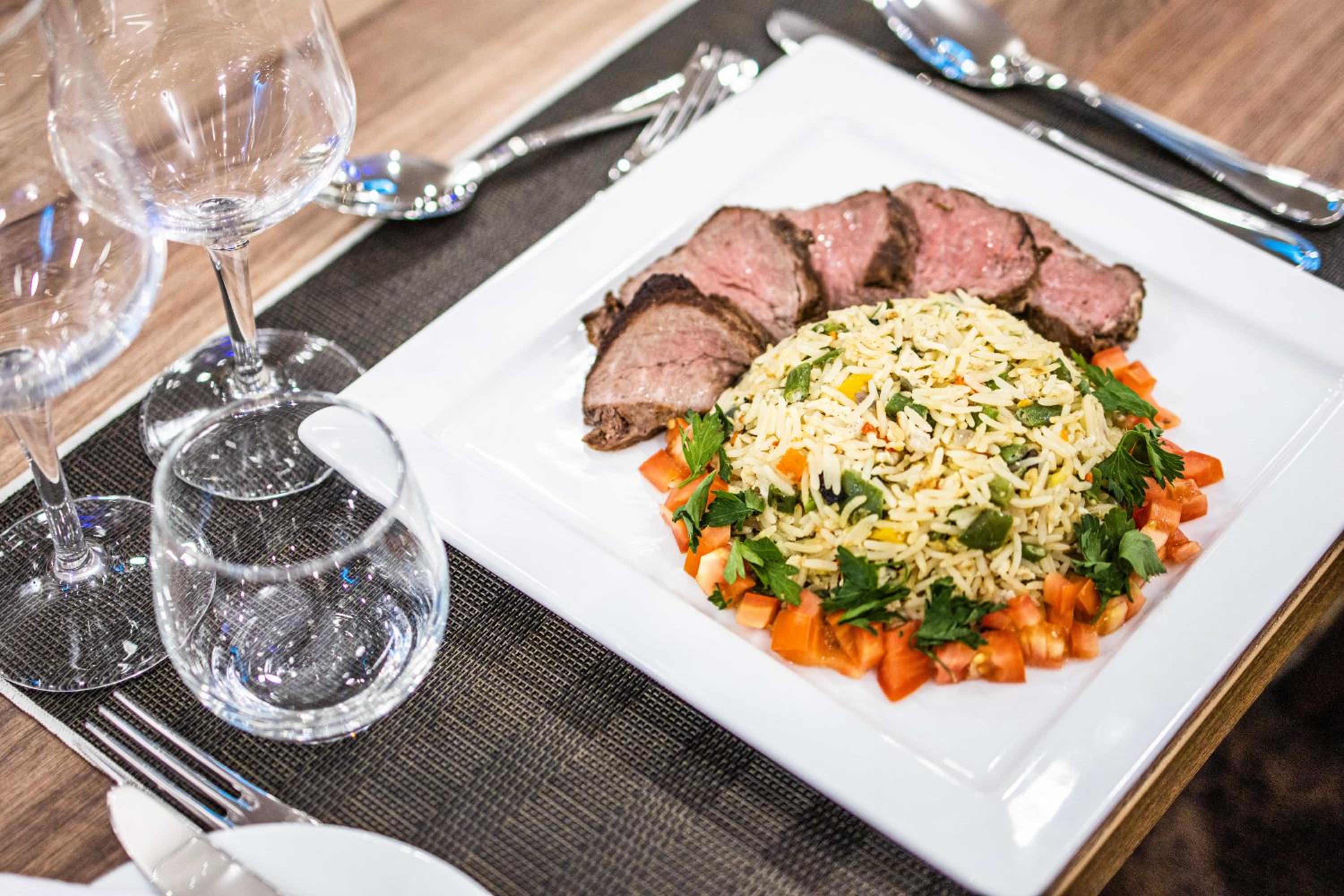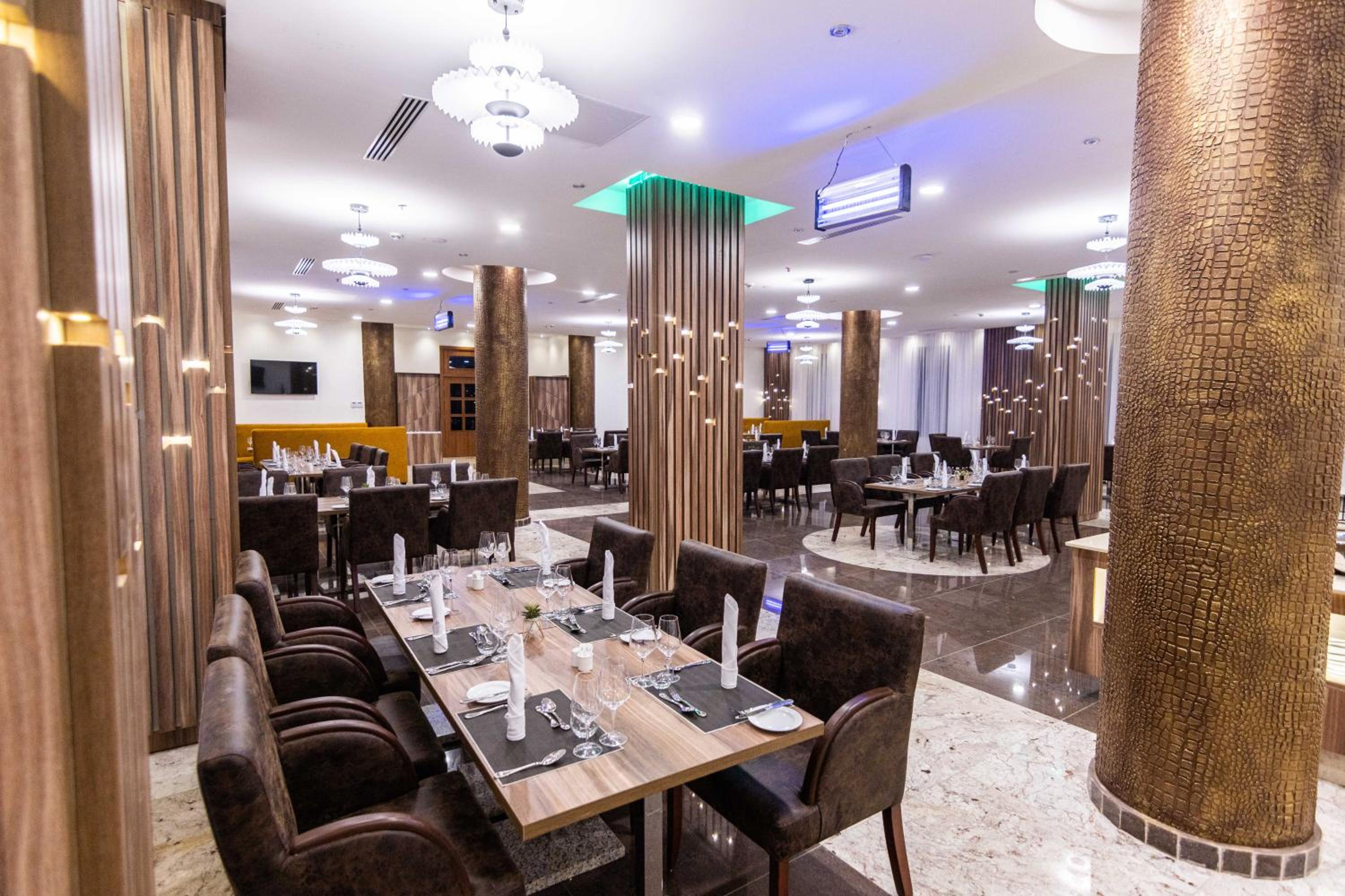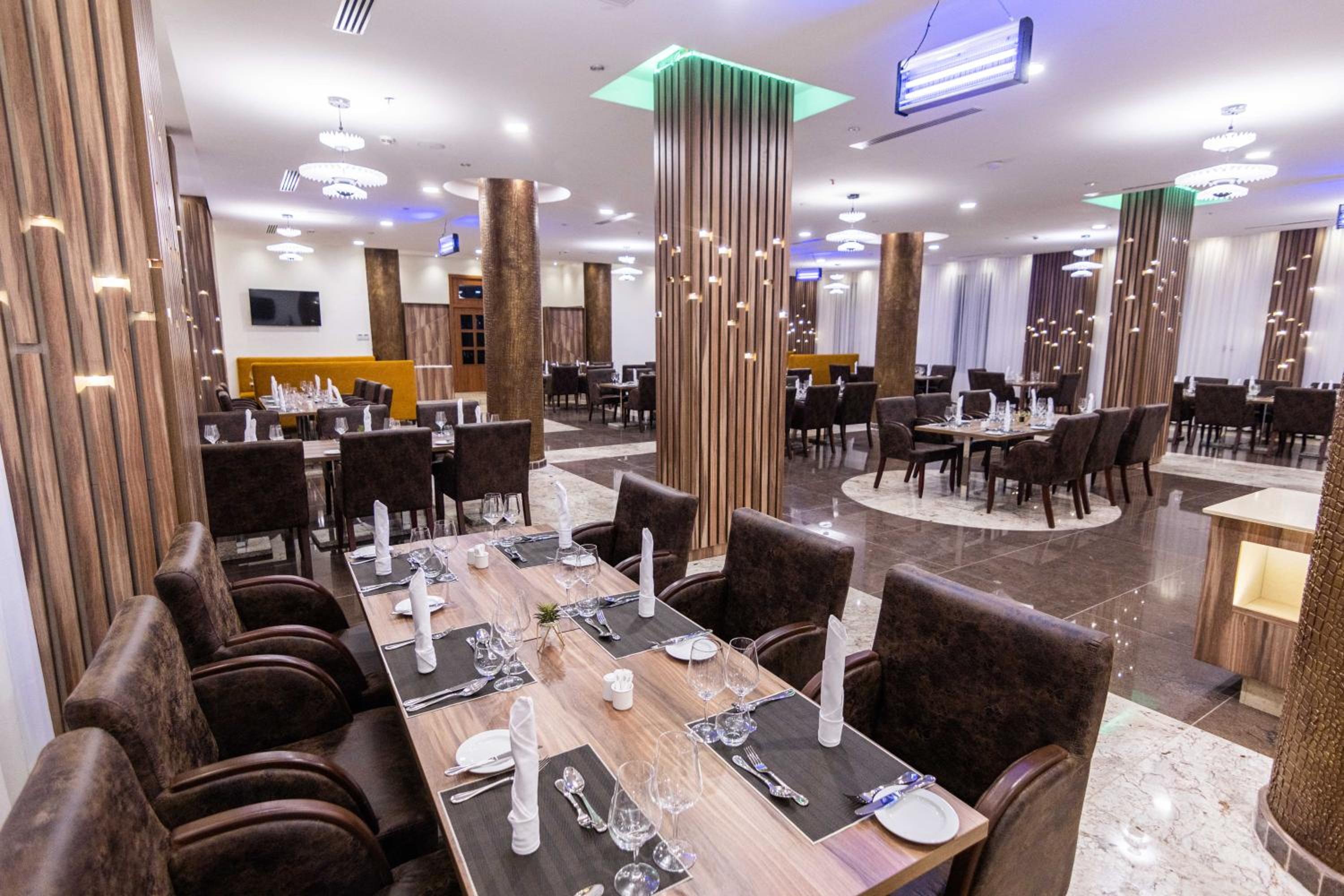 Guests can enjoy a delicious breakfast buffet with various options and dine at the on-site restaurant offering a diverse selection of African, local, and international cuisine.
