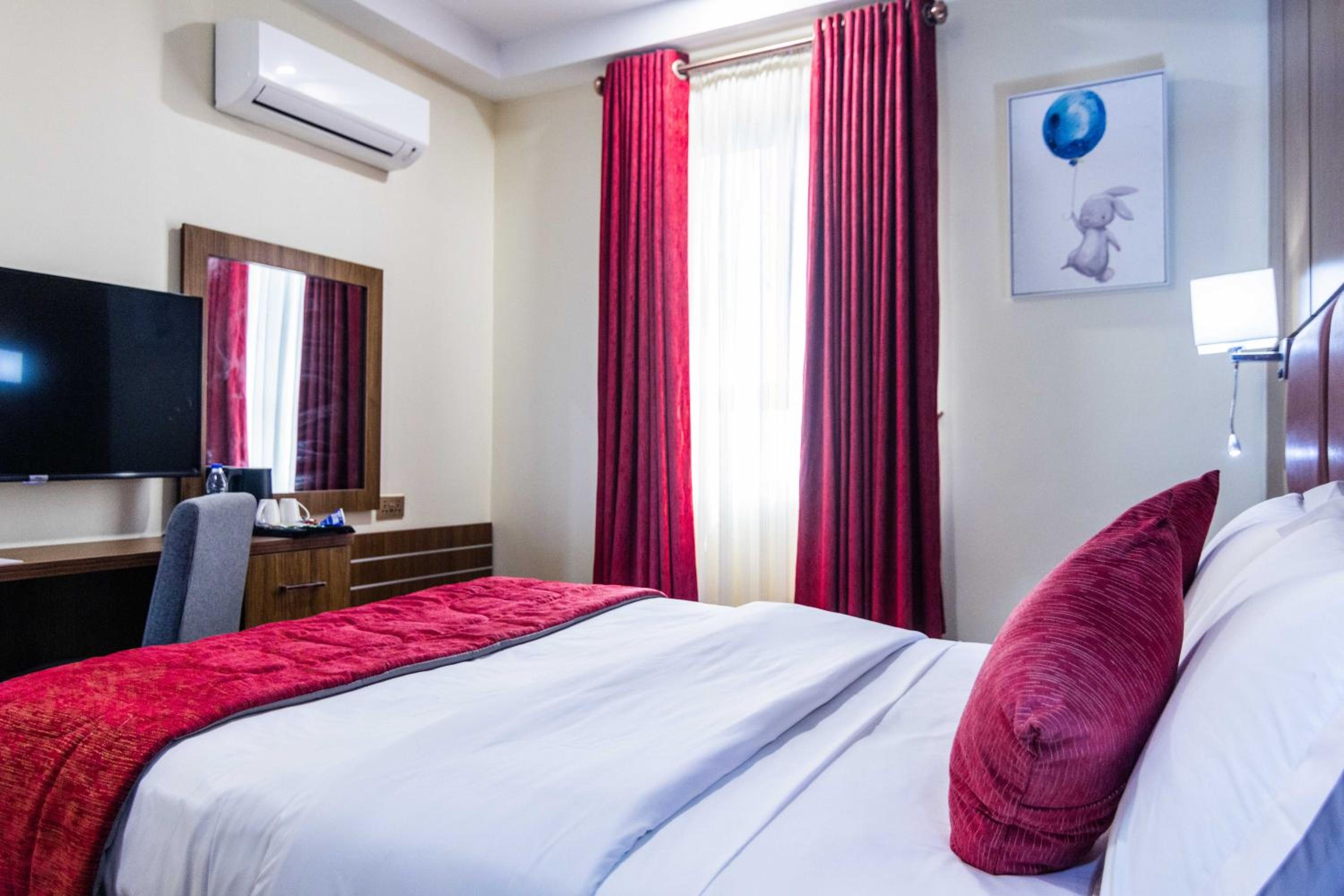Each room at the hotel is equipped with modern facilities such as air conditioning, a flat-screen TV, and a private bathroom with complimentary toiletries.