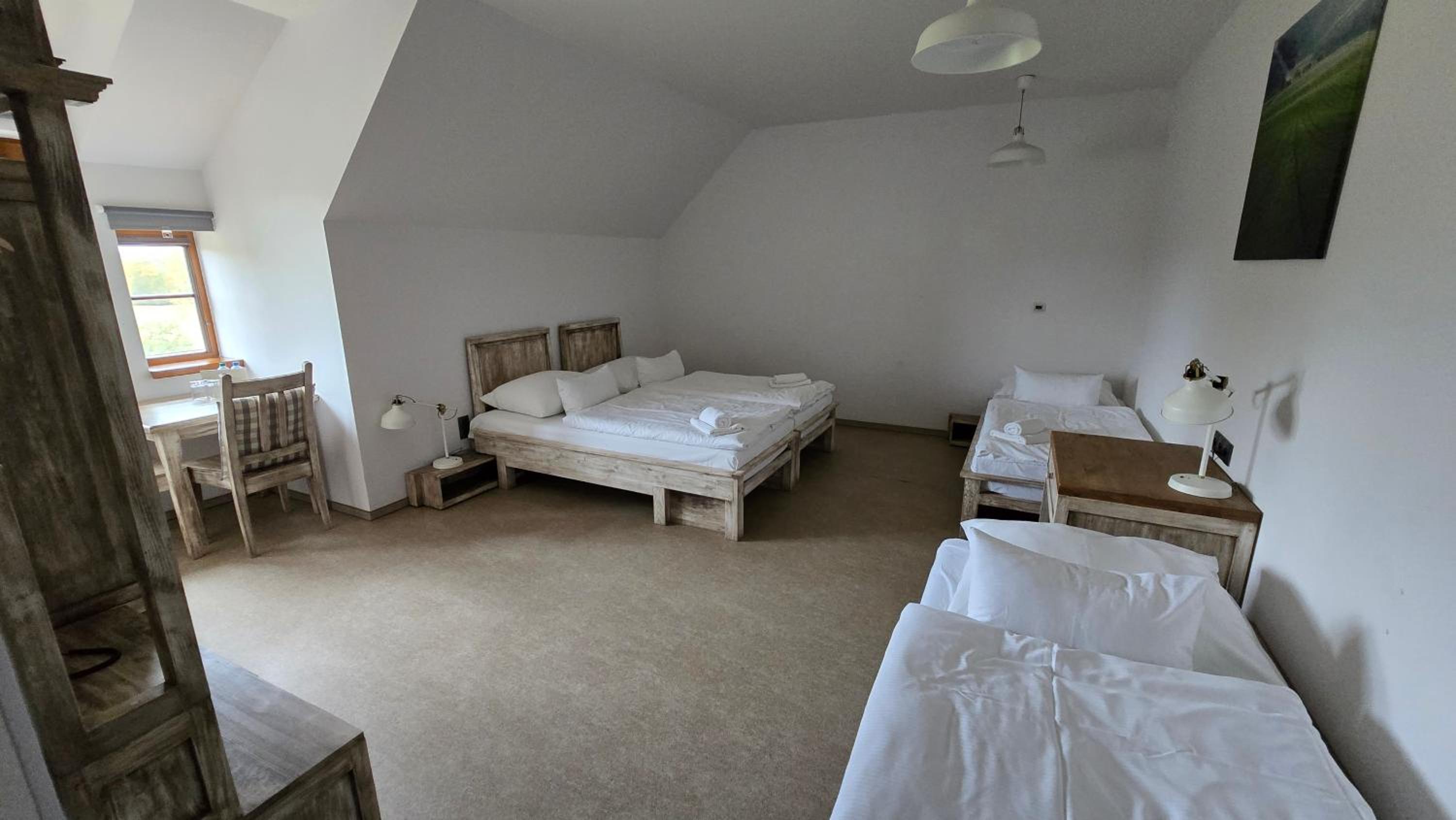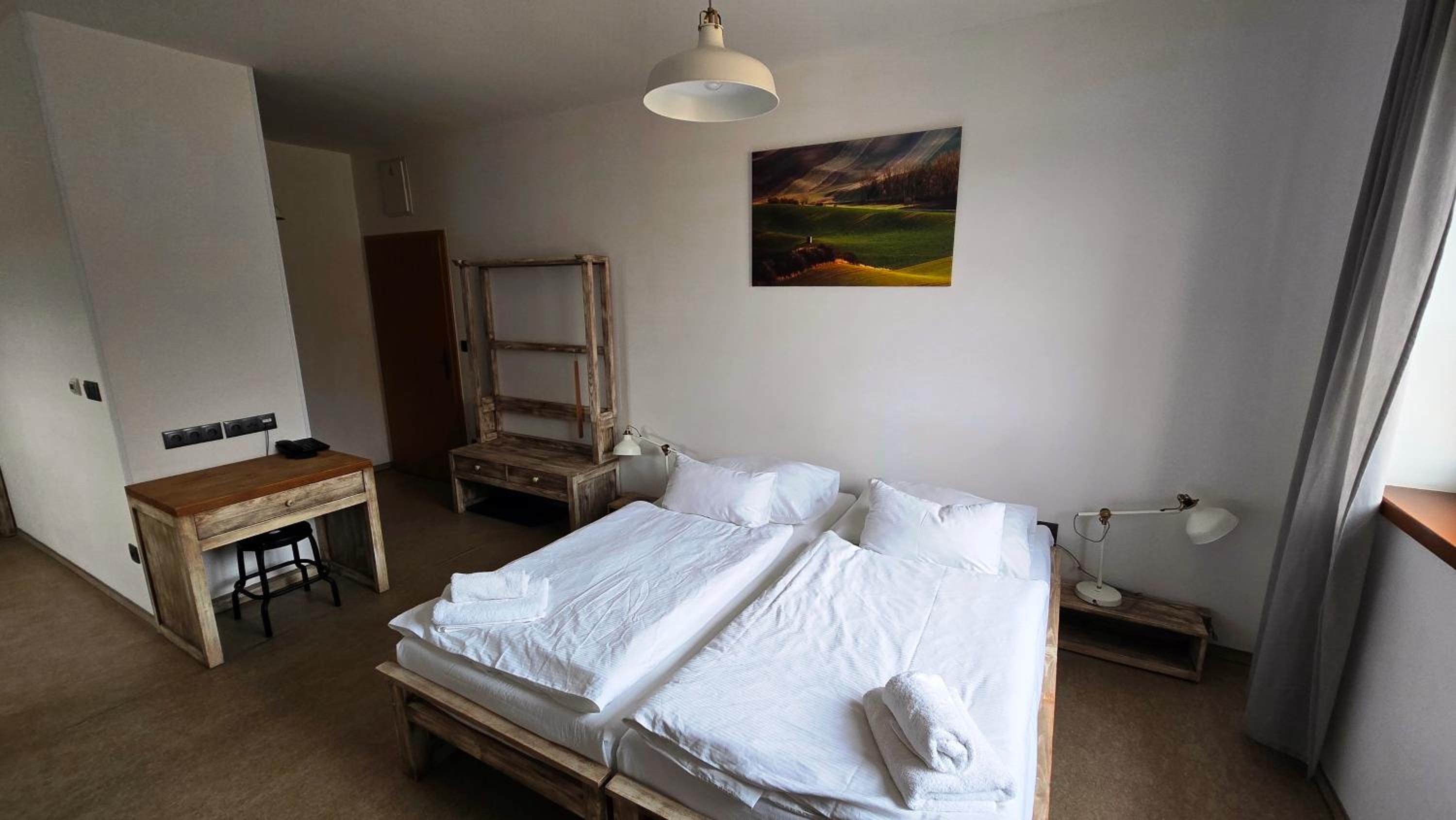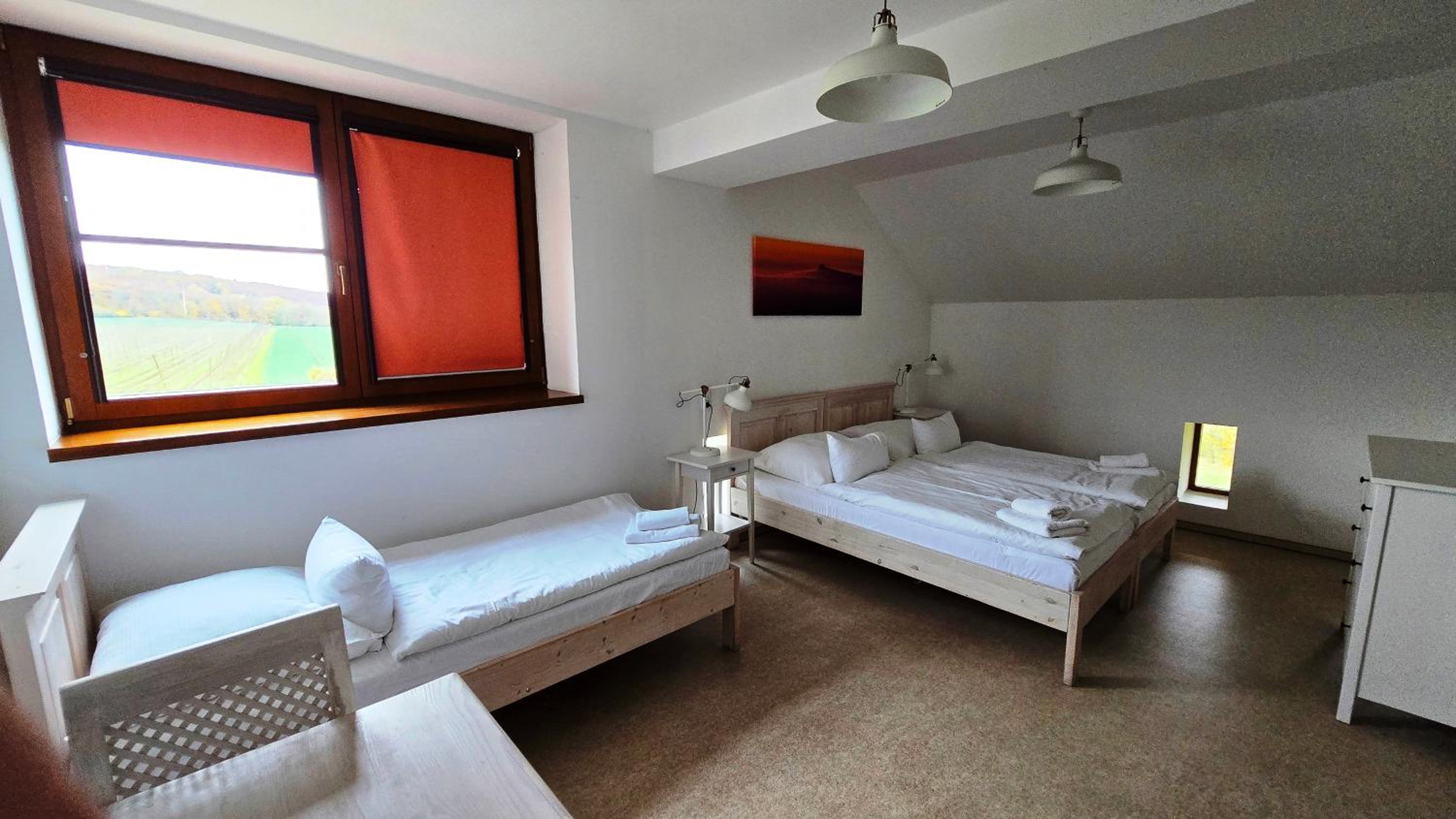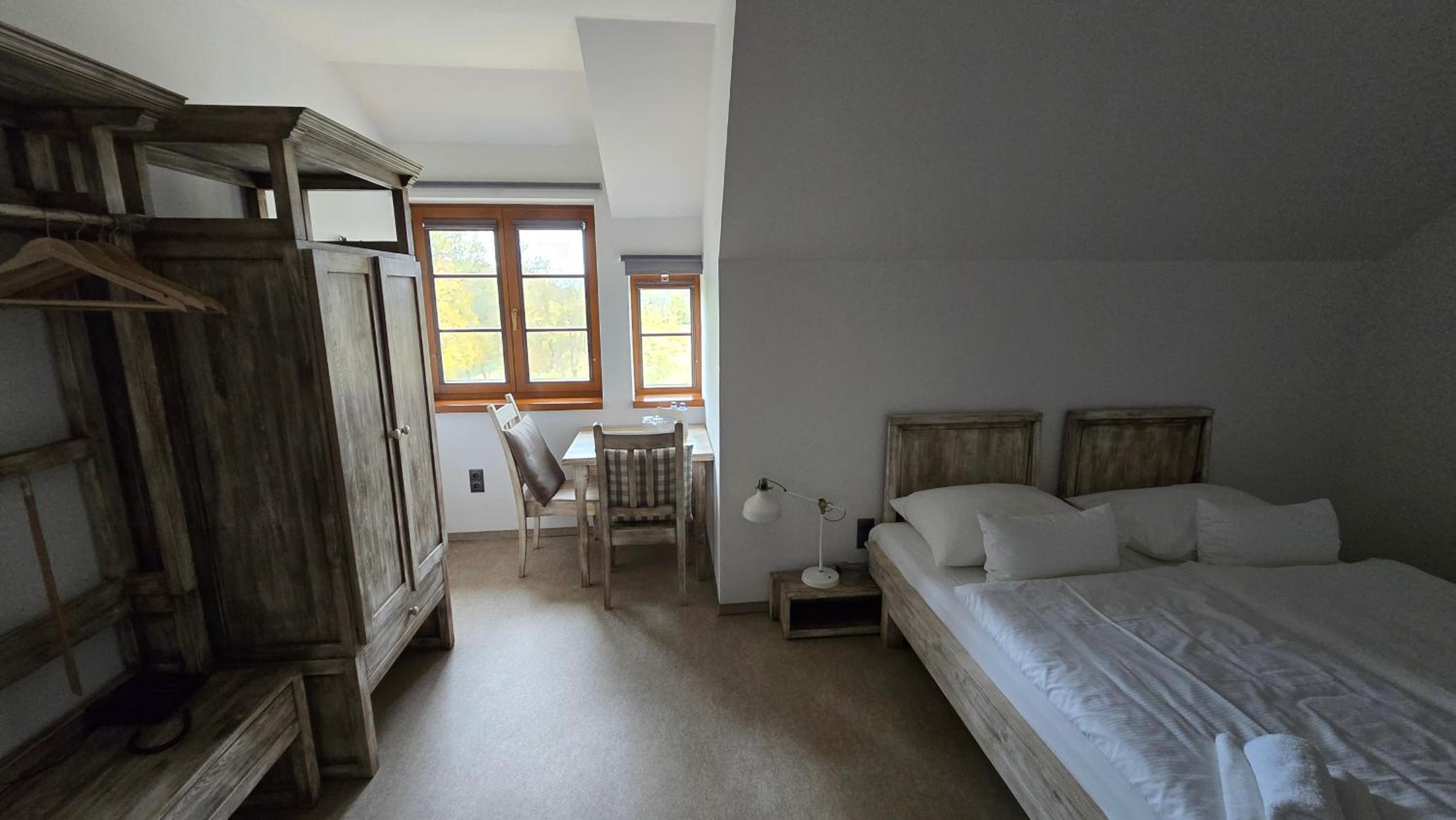 Nádherné venkovní prostory, skvělé jídlo/pivo v restauraci a výborná snídaně.