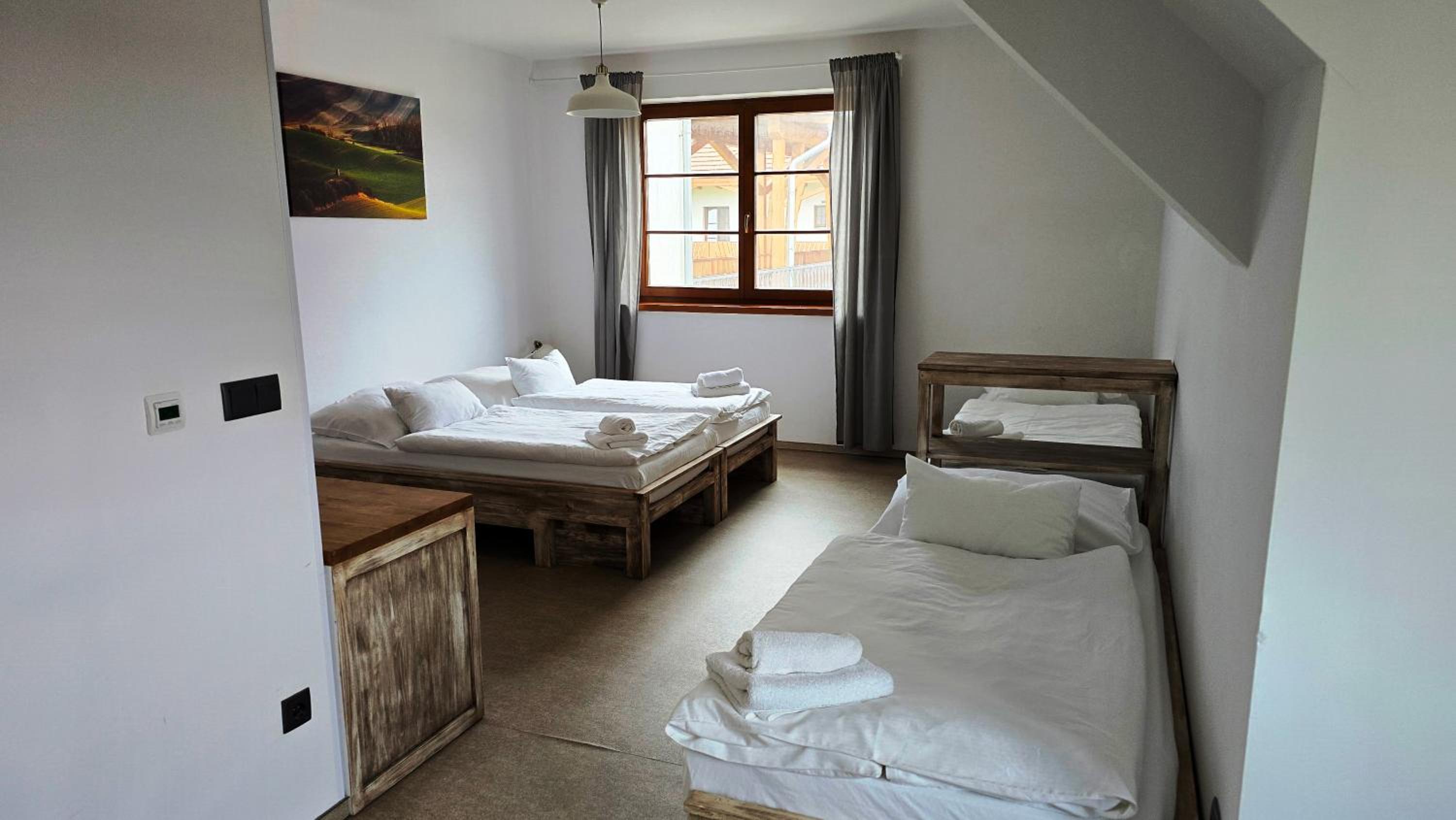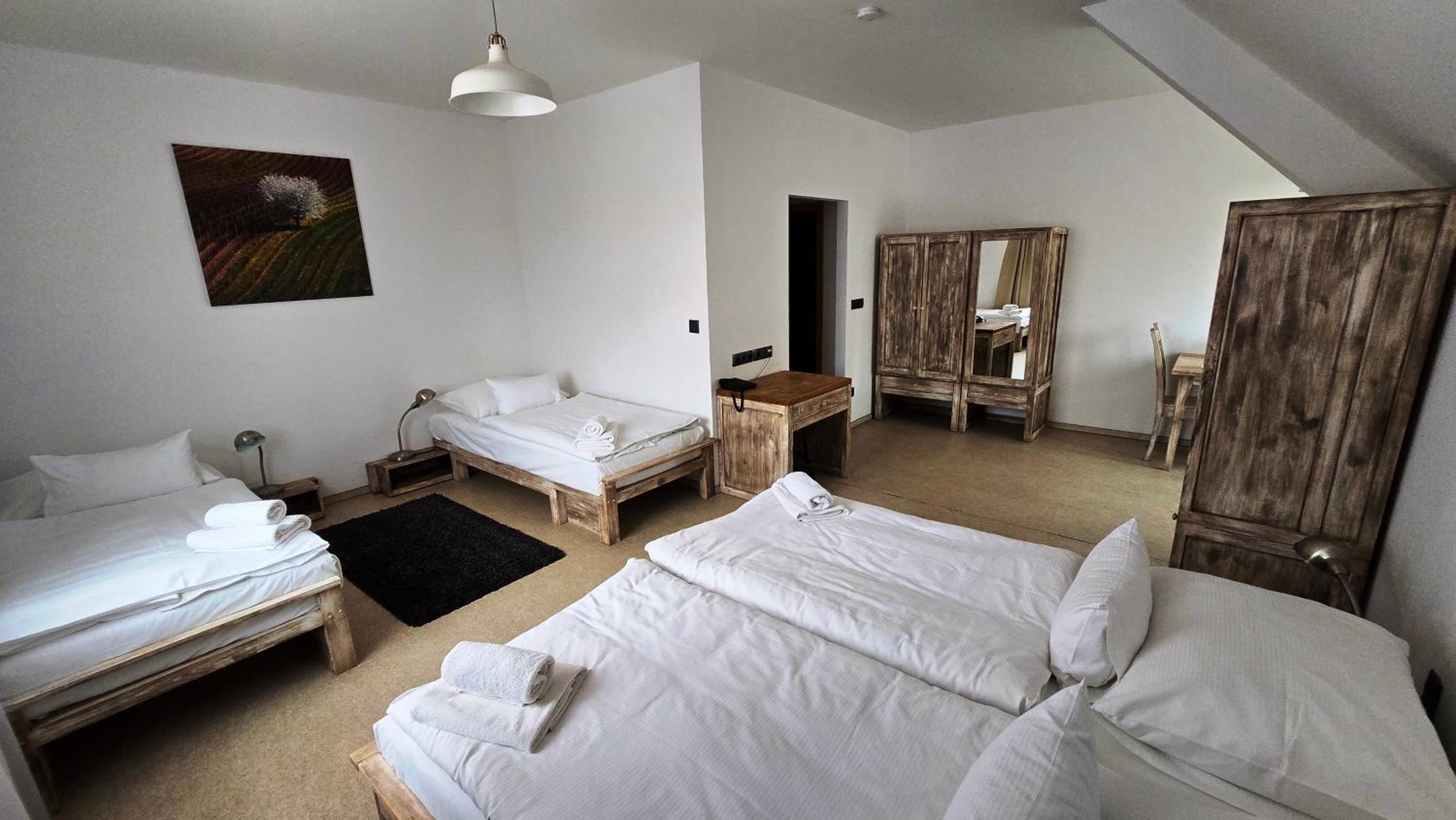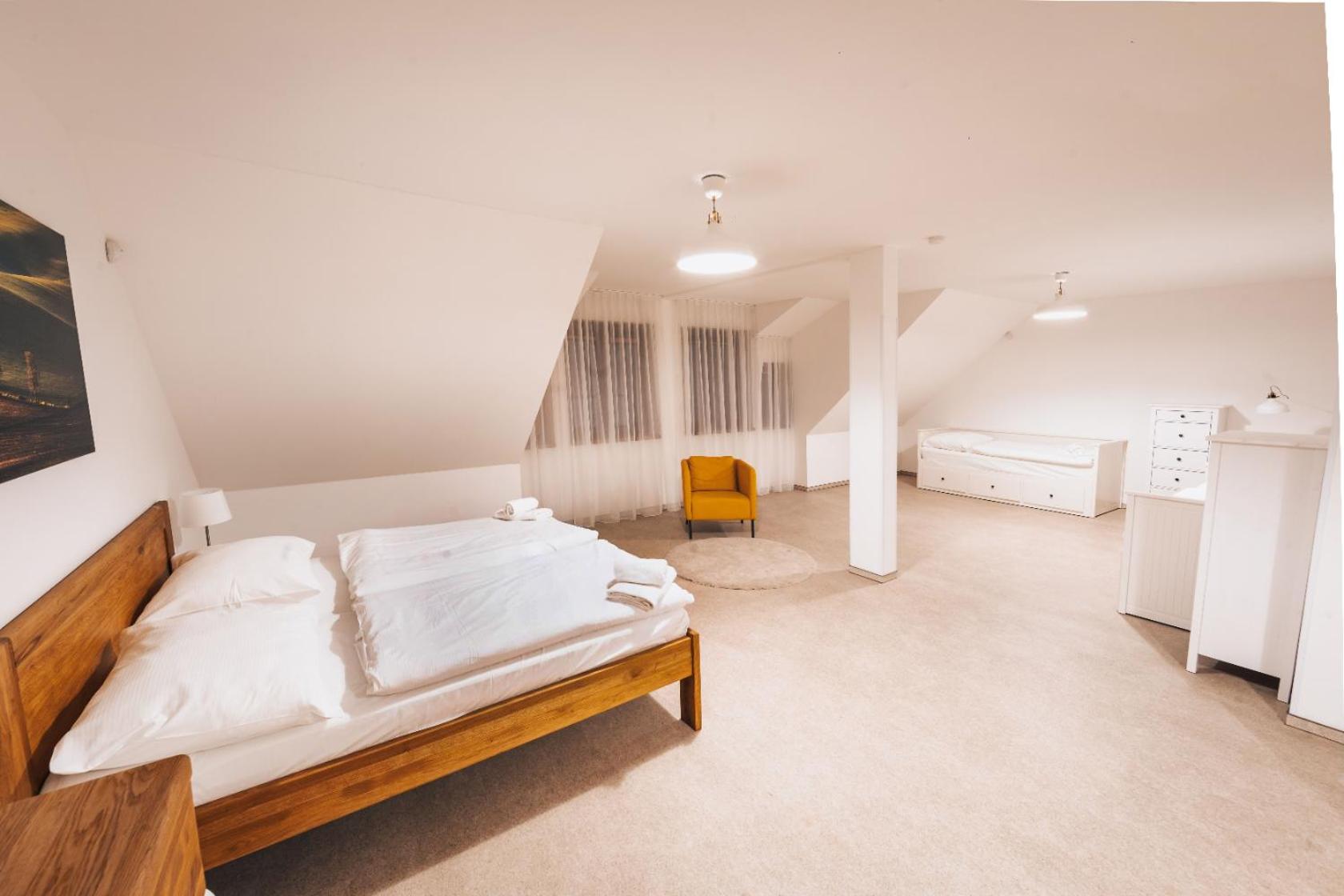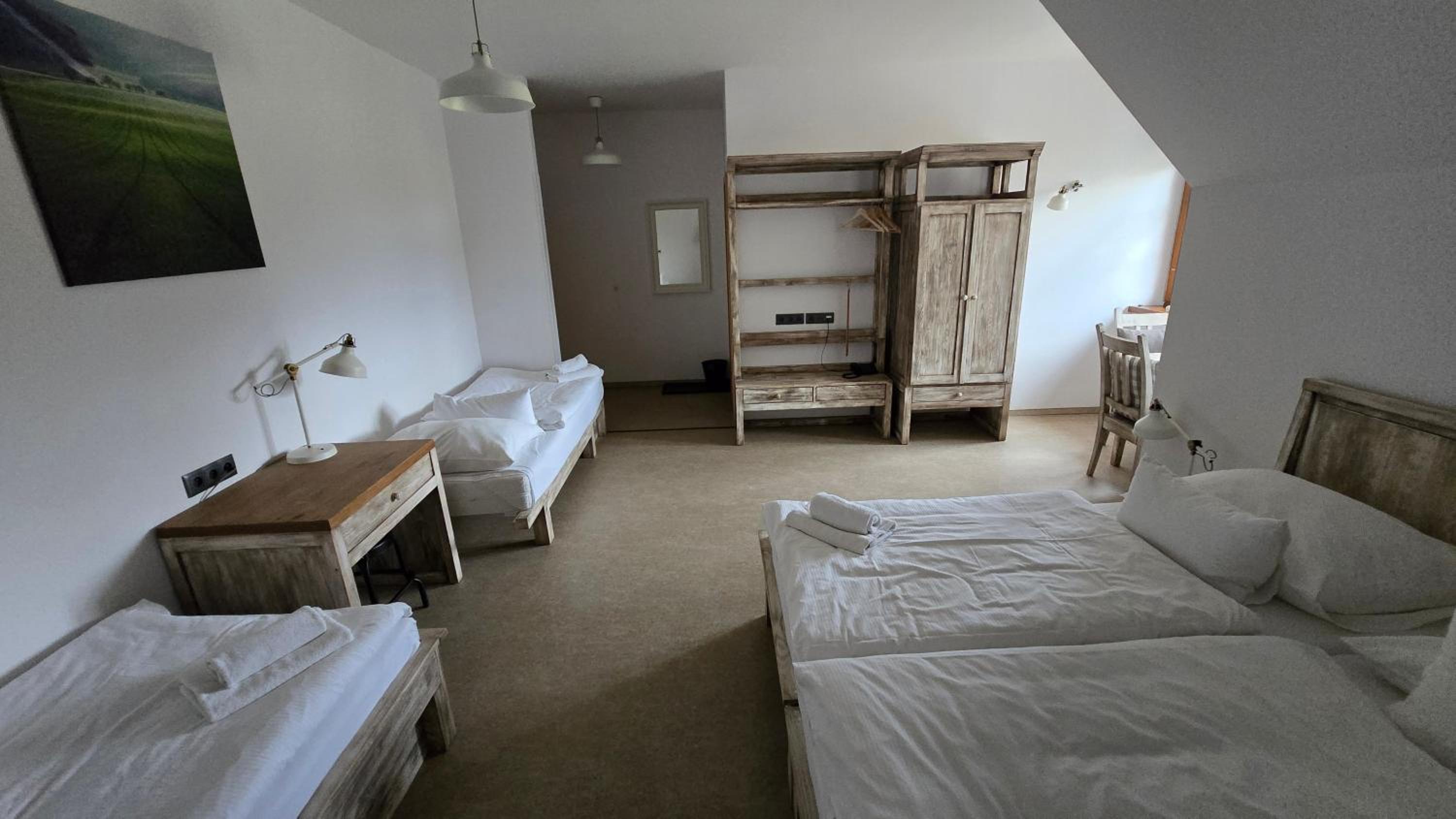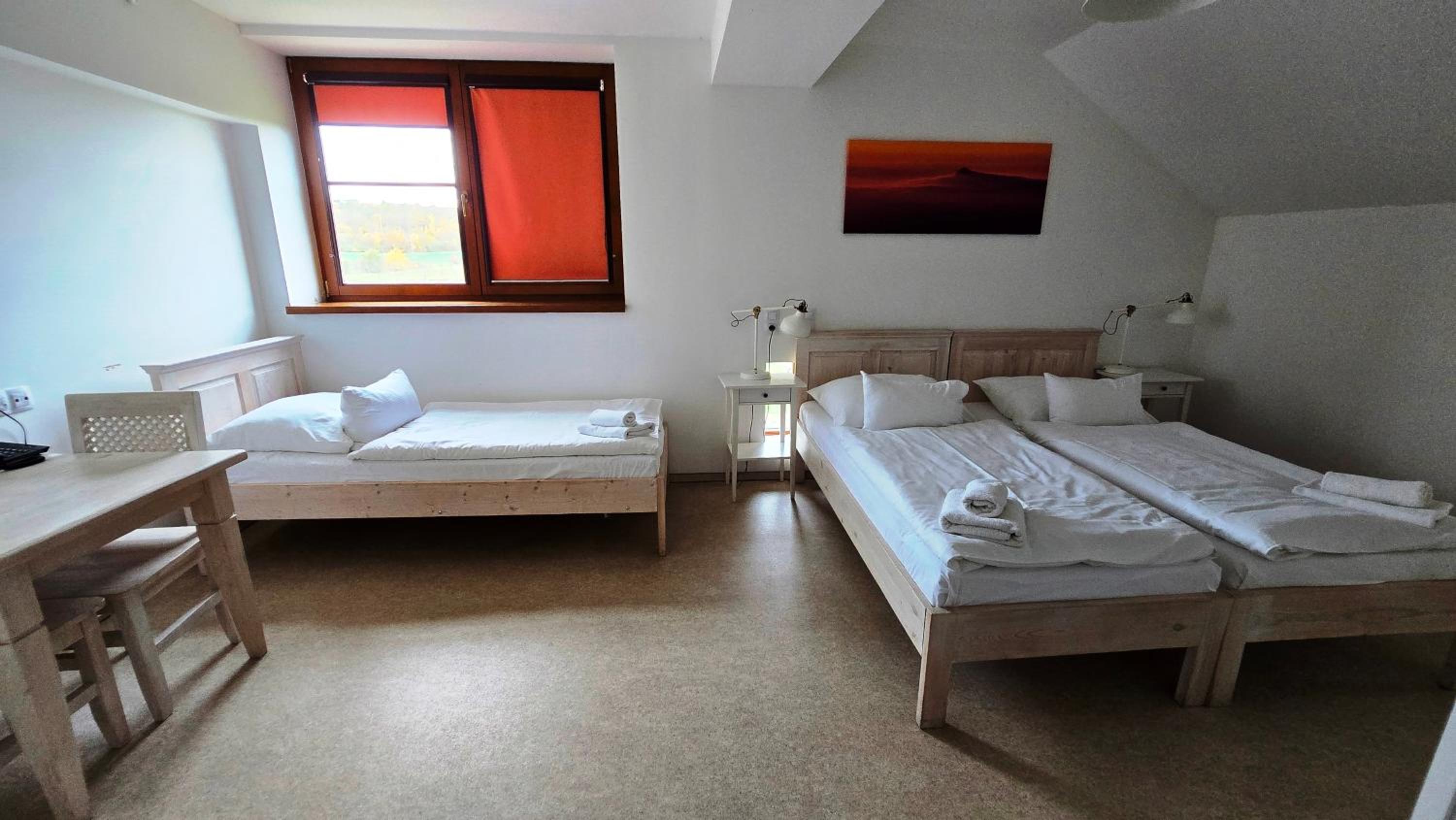 Nádherné venkovní prostory, skvělé jídlo/pivo v restauraci a výborná snídaně.