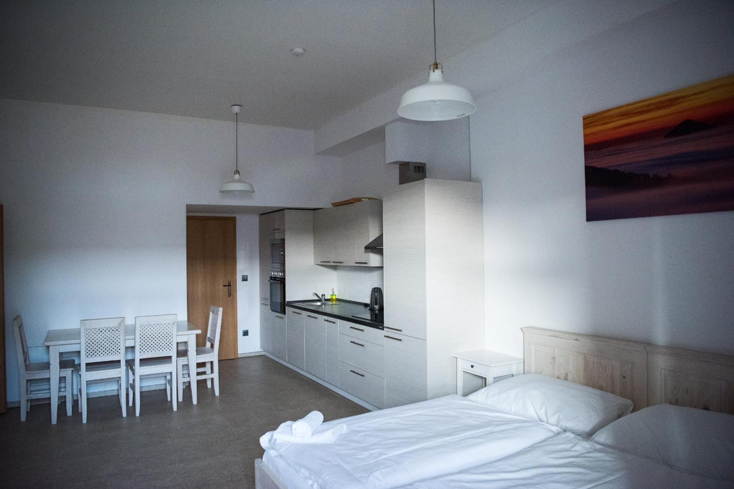 Pěkné prostorné apartmány, krásné místo. Ocenili bychom možnost stravování (polopenze). Pokud chcete jíst v restauraci opakovaně, už máte problém si vybrat. Jinak velká spokojenost.