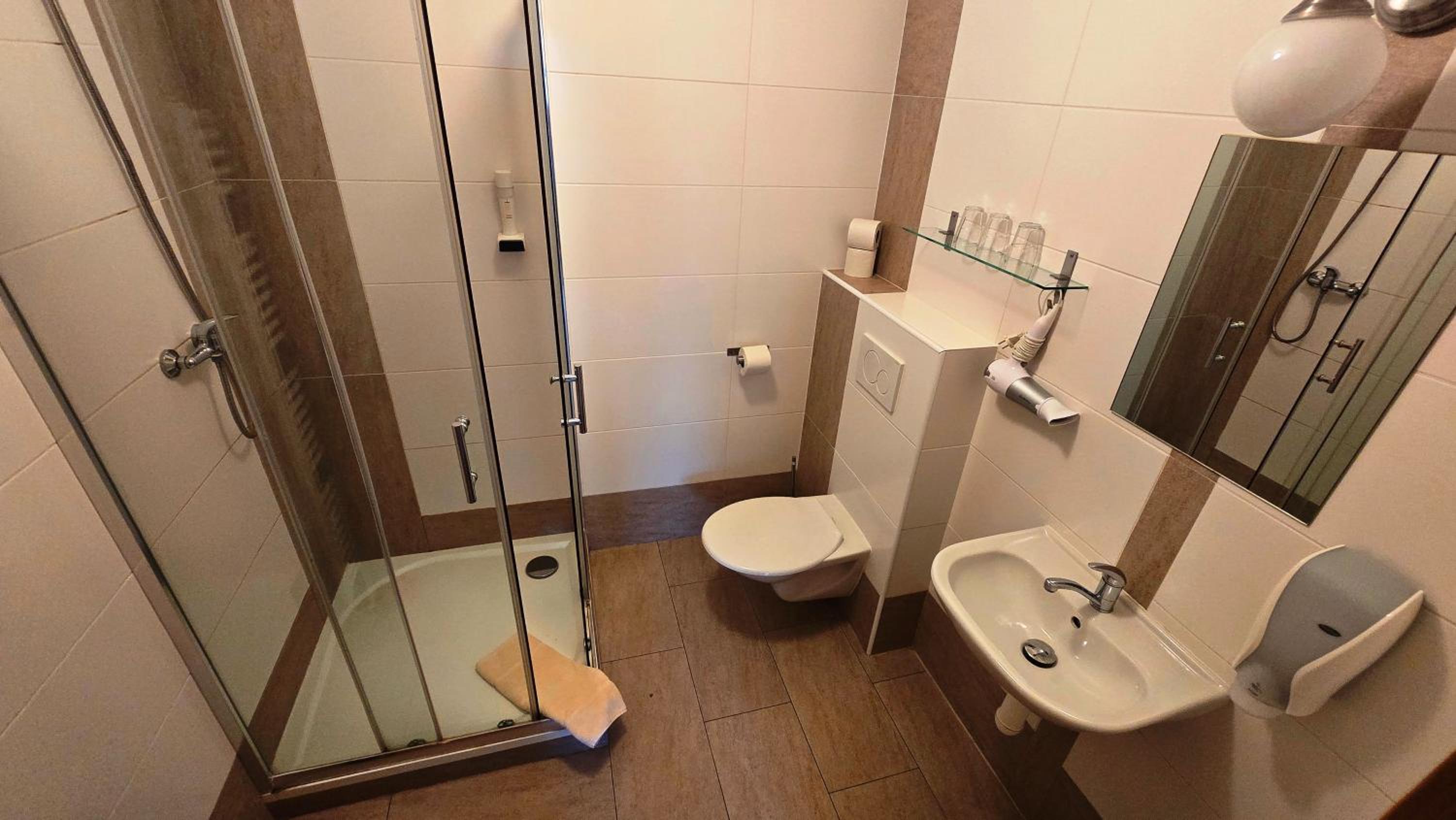 Shower in the bathroom, they need to replace overall I guess, because I also noticed in the wellness area, they are very smaller as they supposed to be.