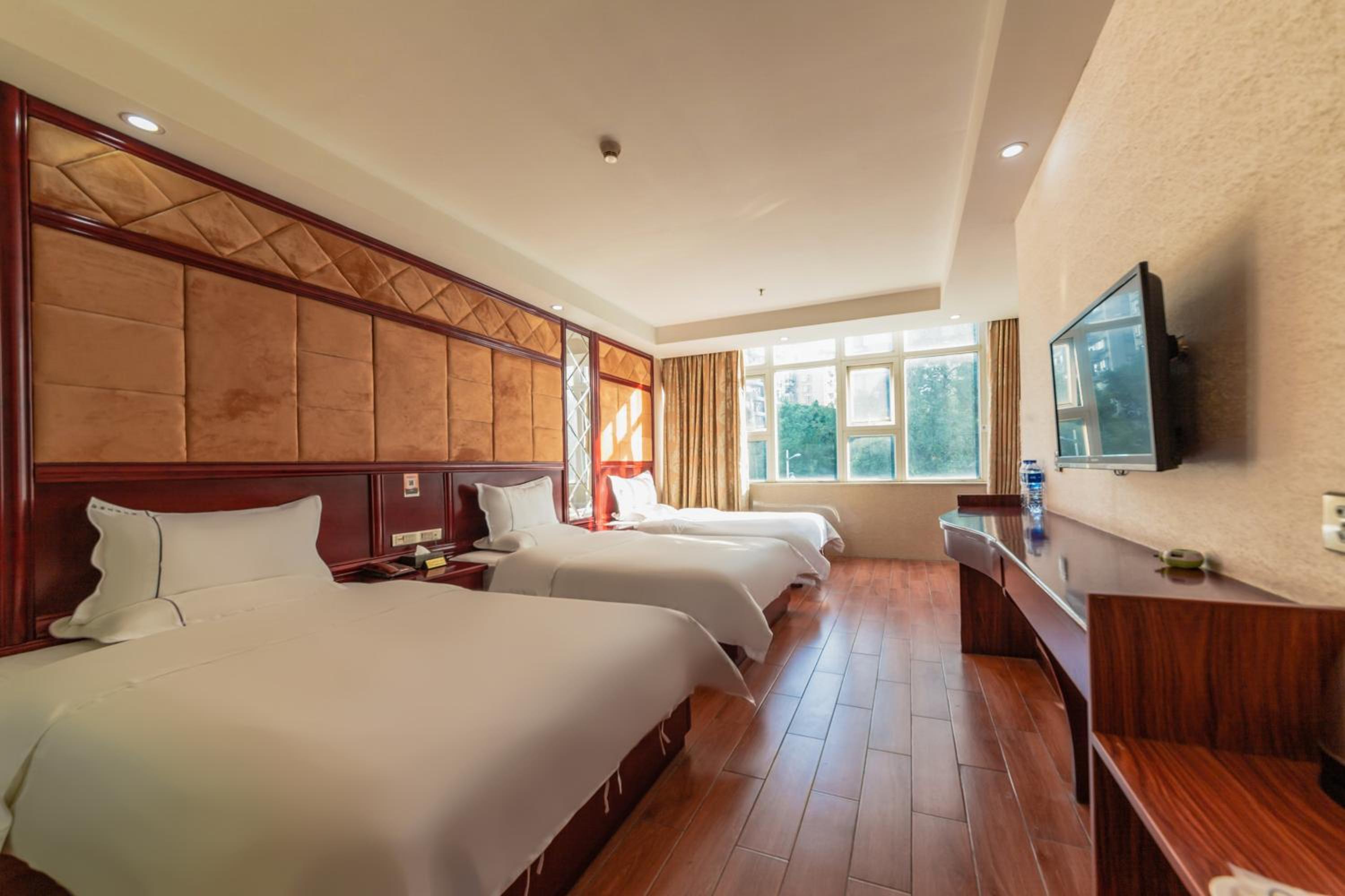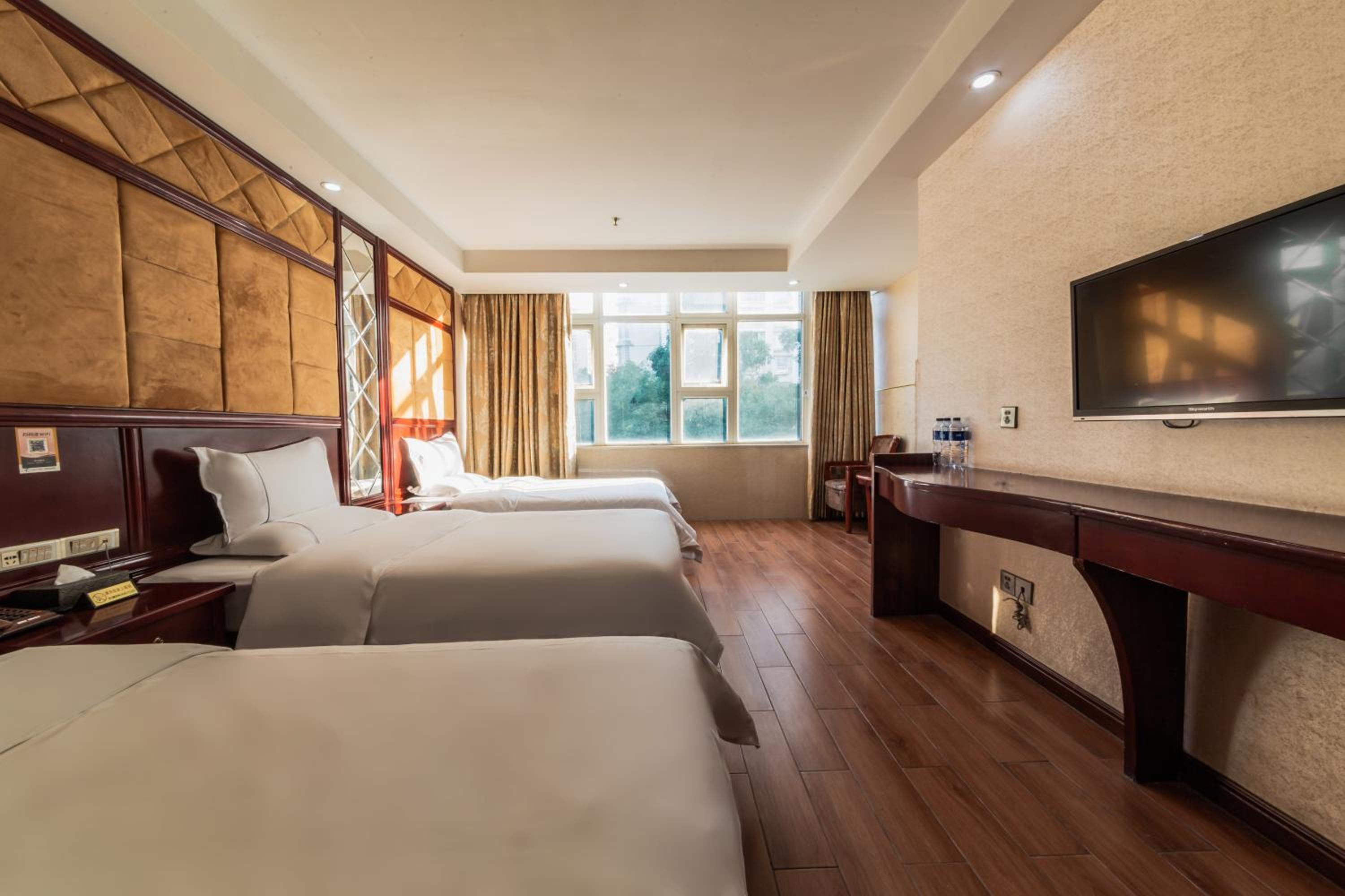 Air-conditioned rooms with flat-screen TVs, seating areas, and private bathrooms.