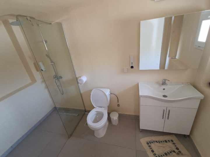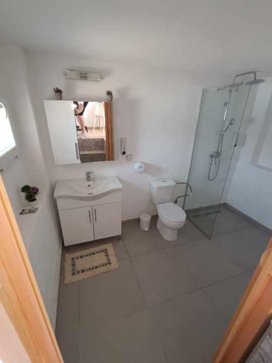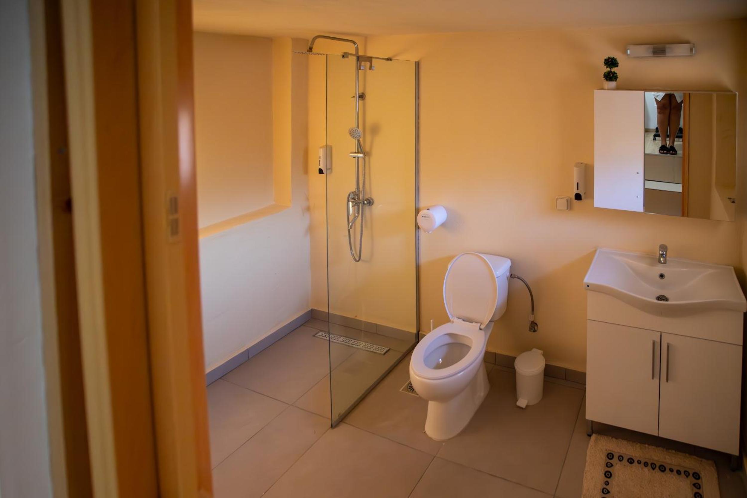 Hidden gem, budget friendly, Nicholas a lovely owner. It's not 5*, expect a bit worn bits in bathroom, bathroom big. Comfiest of beds, which can be put together. Suntrap, and huge lovely not deep pool. Drinks and food lovely and reasonable. Ooo I've slight sciatica and managed few steps to bathroom and few steps to bed with no problems. Definitely will return 😊