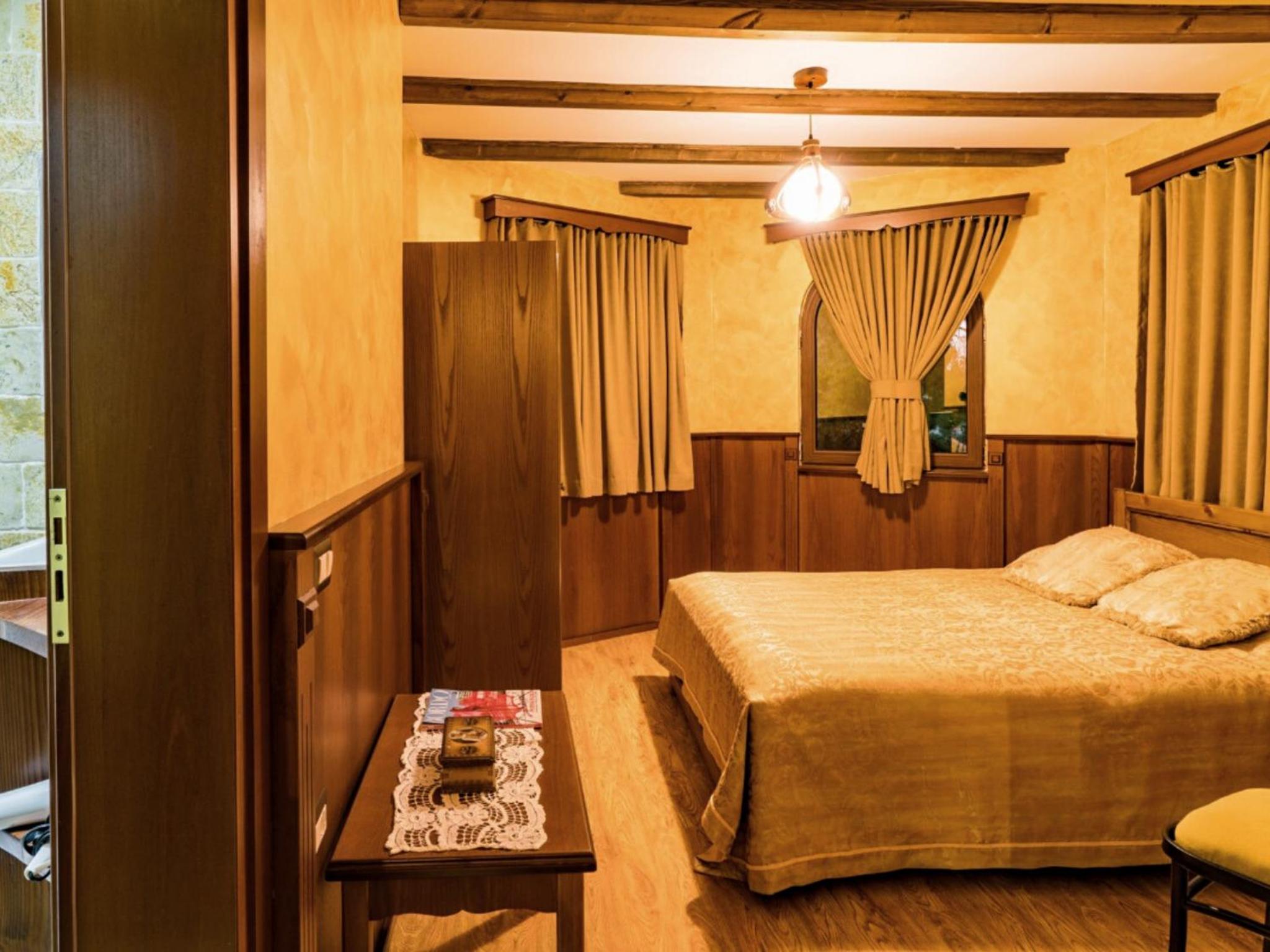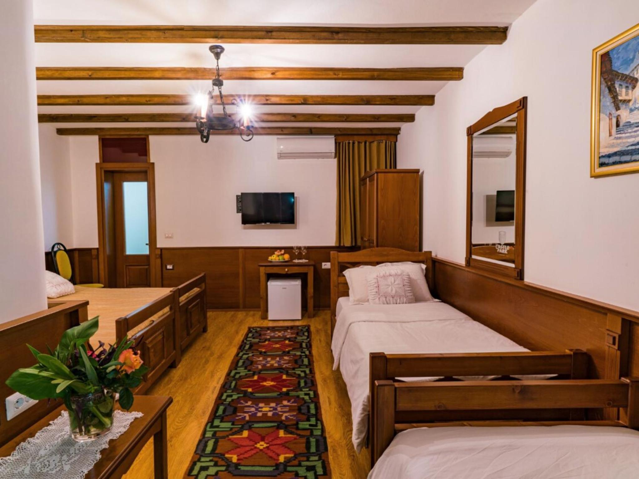 Castle Park offers a picturesque setting on the edge of a forest with stunning views of Tomori Mountain and the city of Berat. The rooms feature air conditioning, balconies, and additional amenities like cable TV and refrigerators. Some lodging options even include private entrances in detached lodges for added privacy.