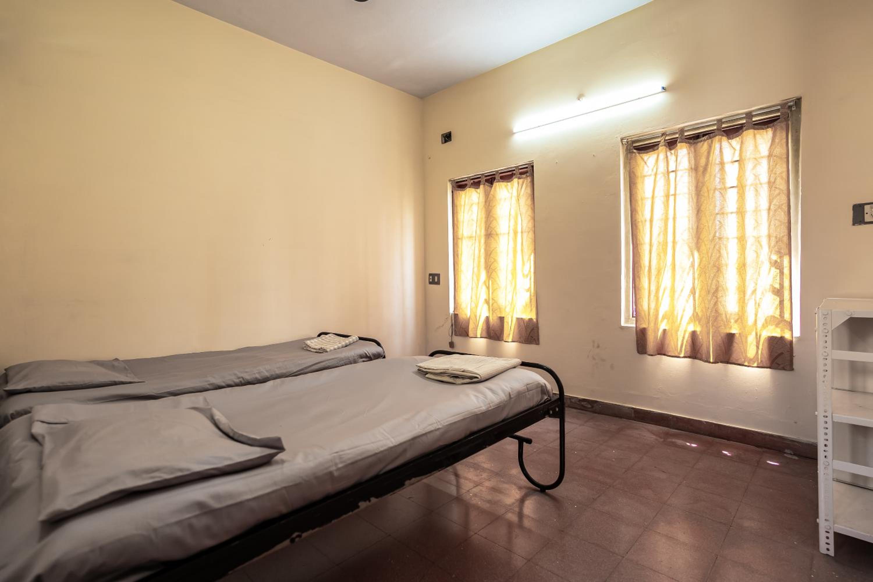 Everything is fine we stay as if we are at home but fooding arrangement is not available .I suggest to provide fooding arrangement.