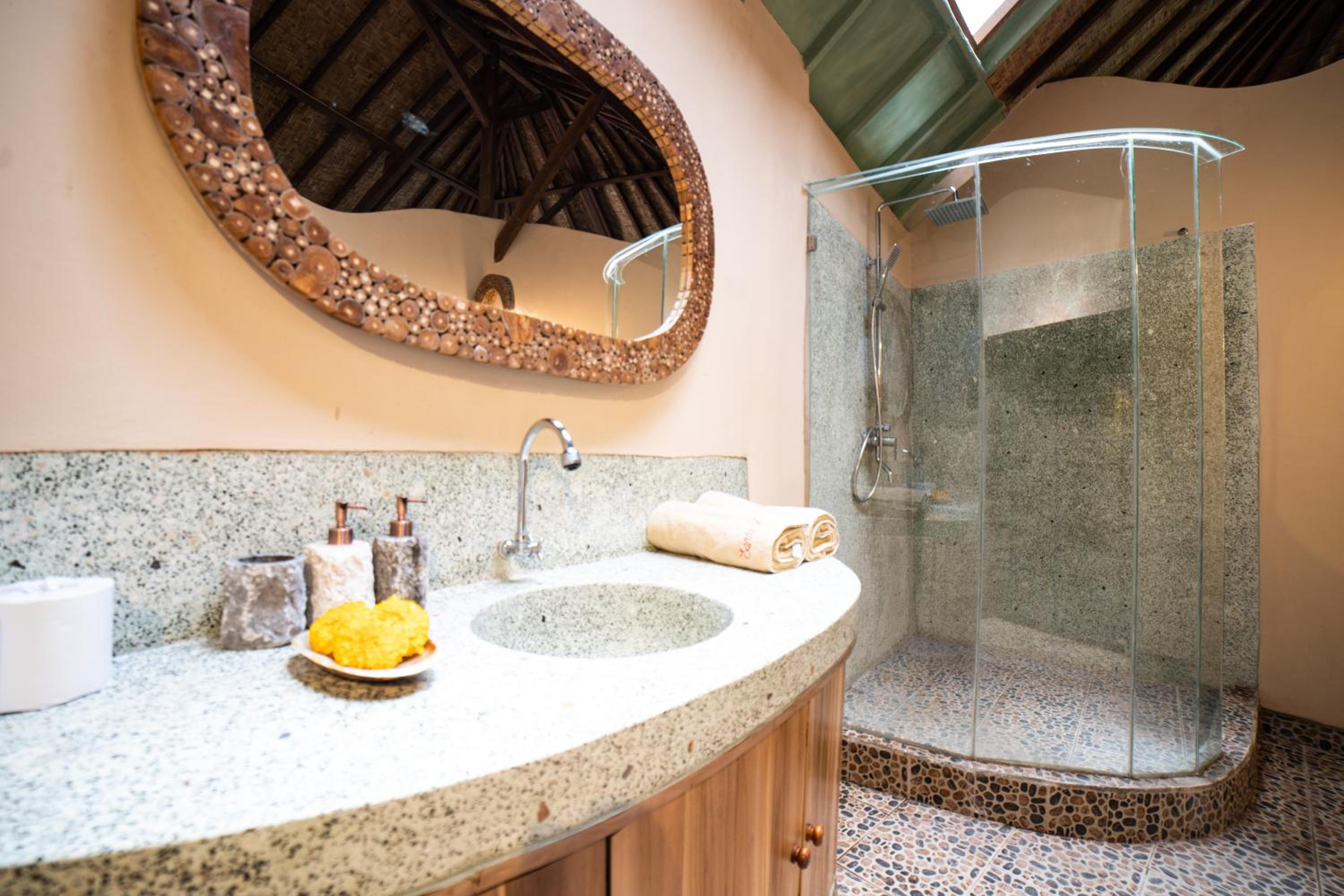 This is not your average conventional hotel experience but if you want peace, overload of nature, open scenic djungle views woth the sound of birds, geckos and a river it is perfect.