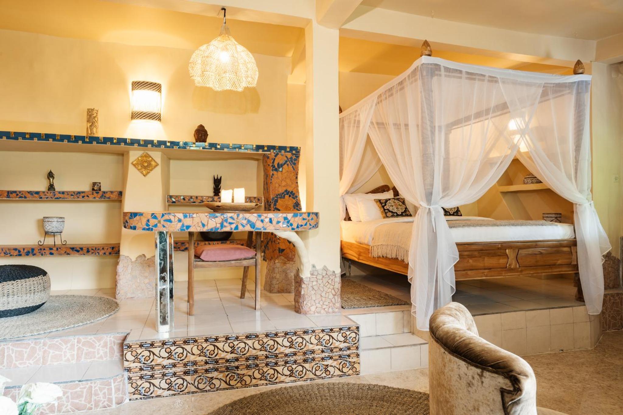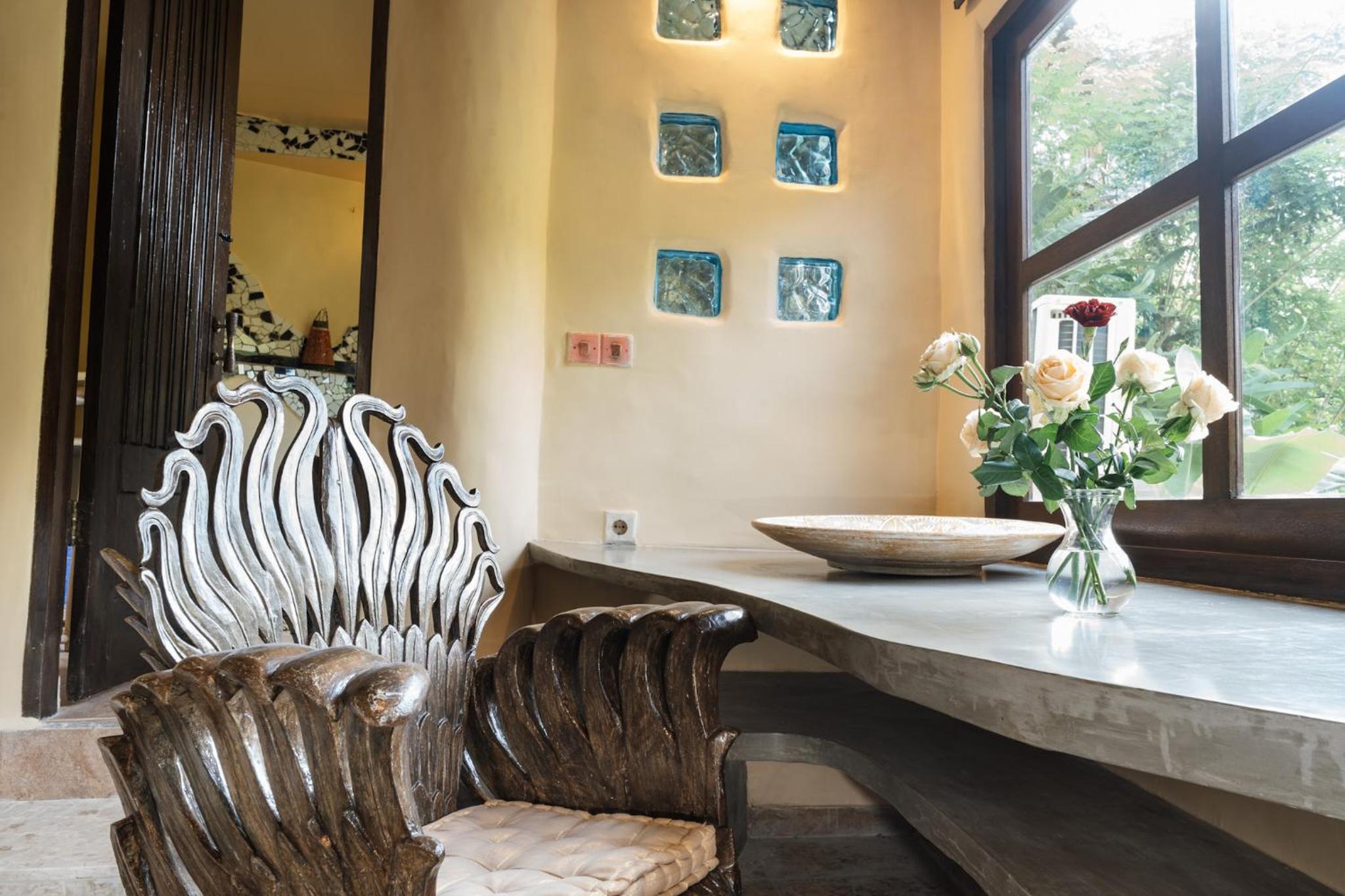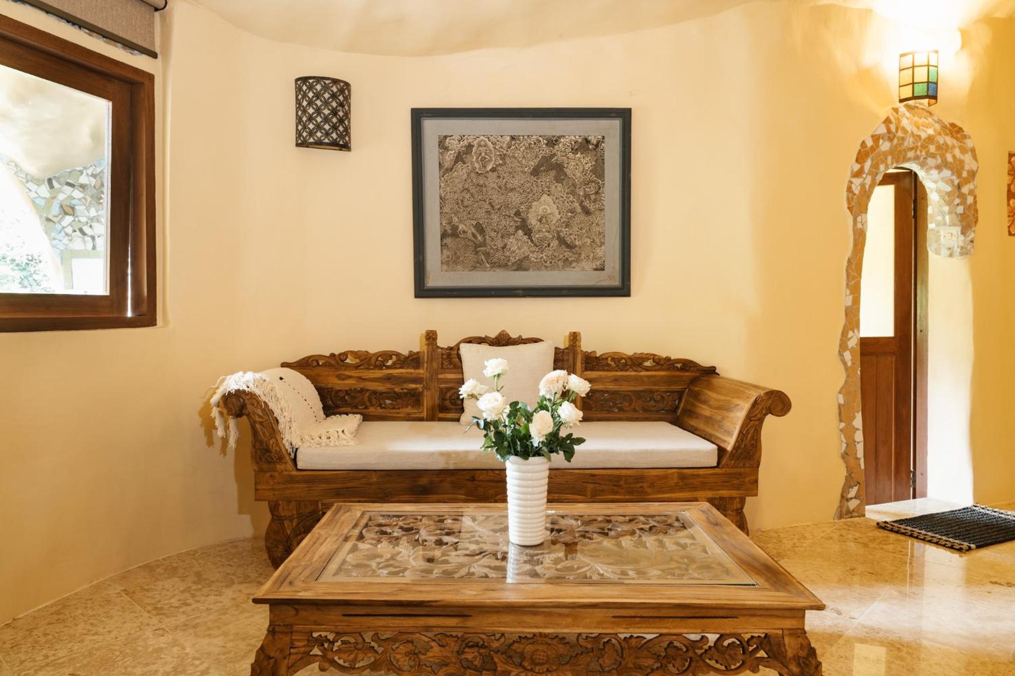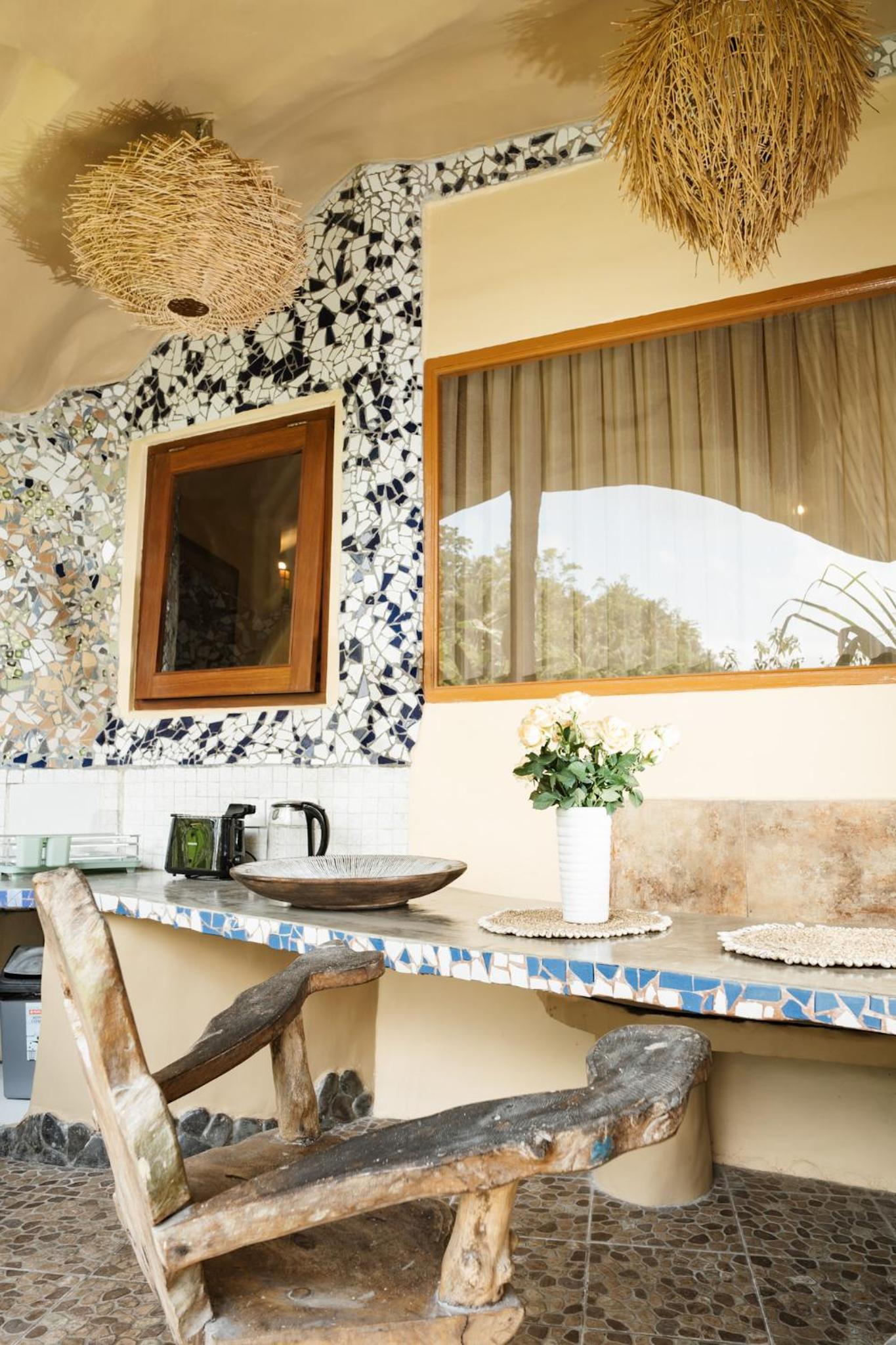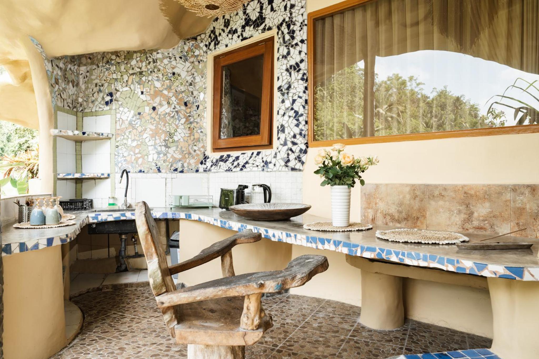 The place is absolutely stunning, designed in a truly original way that combines Gaudí-inspired elements, Balinese influences, and unique artistry. The room was comfortable and inviting, and the staff was warm and attentive. There is a lovely small pool with breathtaking views, and yoga classes are offered on the property. Breakfast is available on-site. We enjoyed our stay very much and will definitely be back.