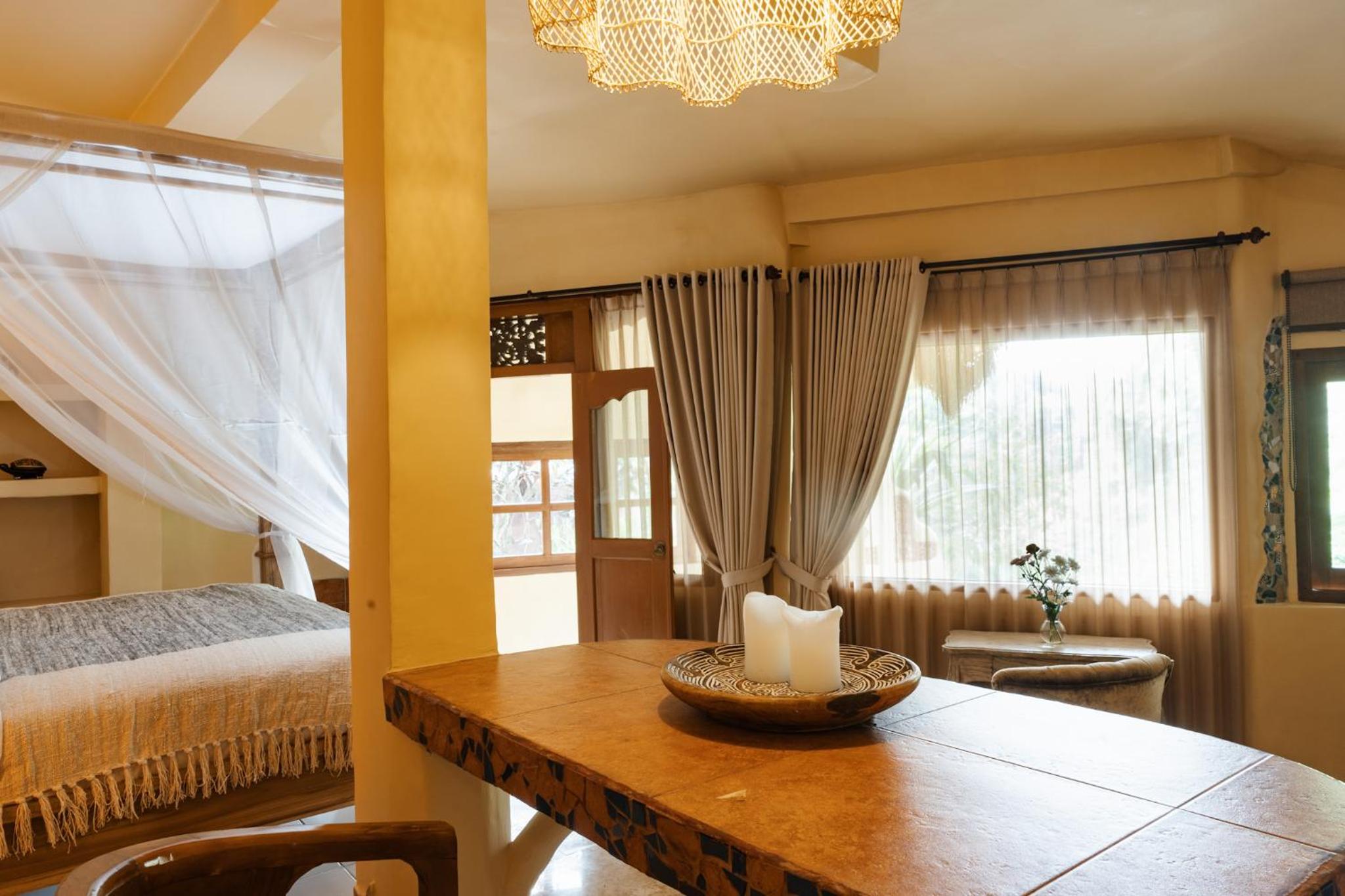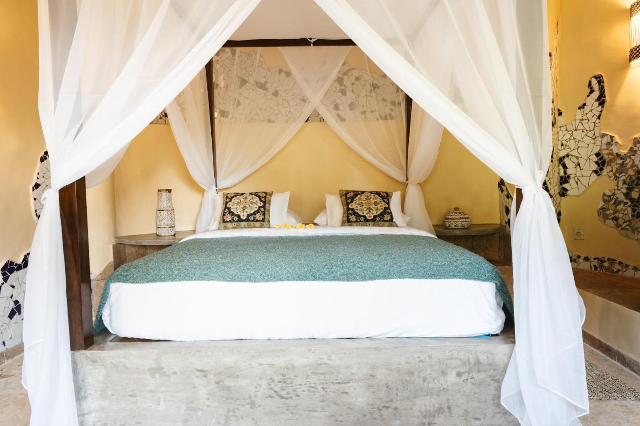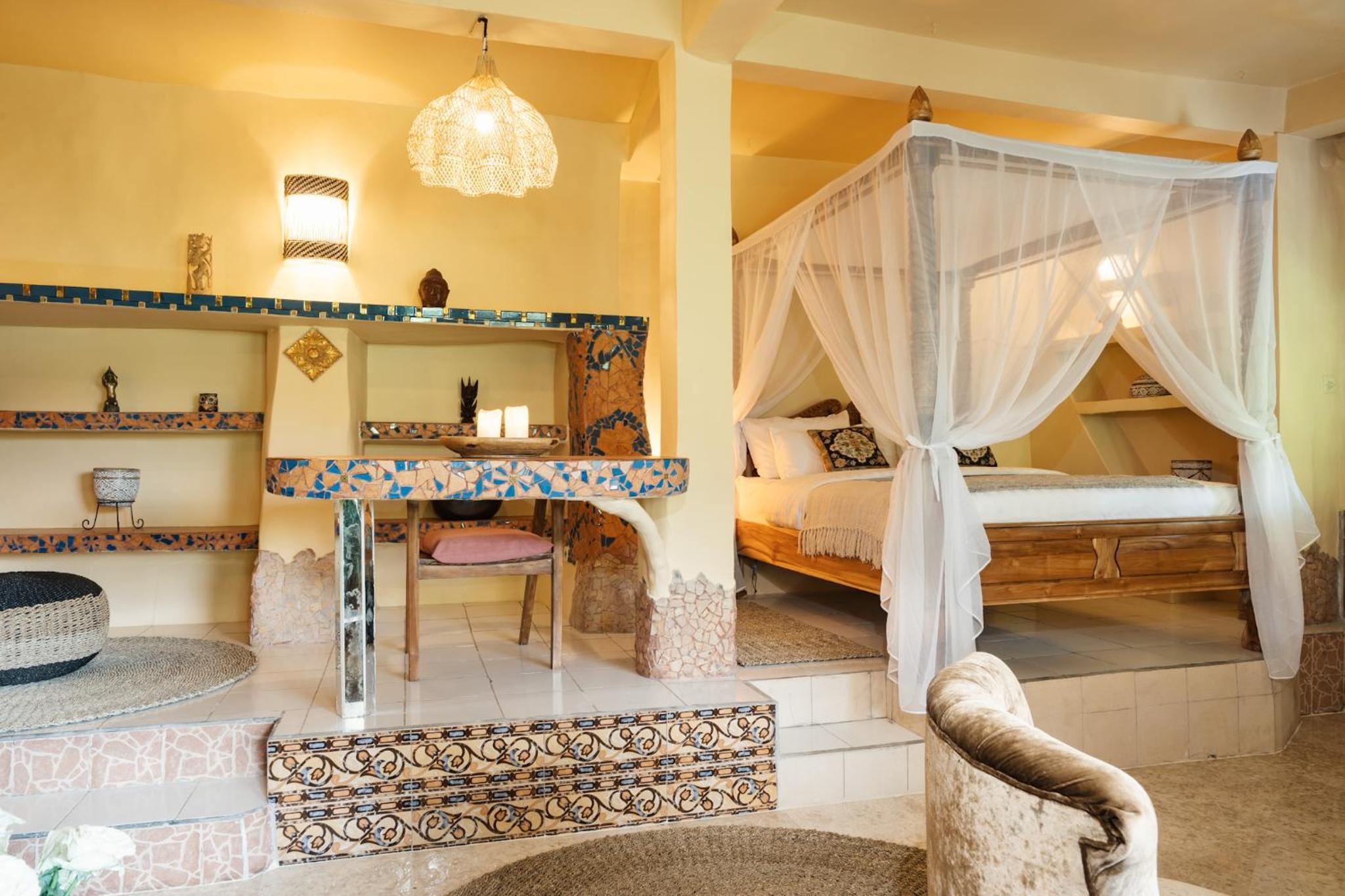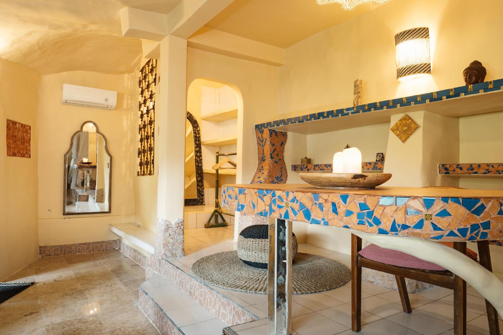 The place is absolutely stunning, designed in a truly original way that combines Gaudí-inspired elements, Balinese influences, and unique artistry. The room was comfortable and inviting, and the staff was warm and attentive. There is a lovely small pool with breathtaking views, and yoga classes are offered on the property. Breakfast is available on-site. We enjoyed our stay very much and will definitely be back.