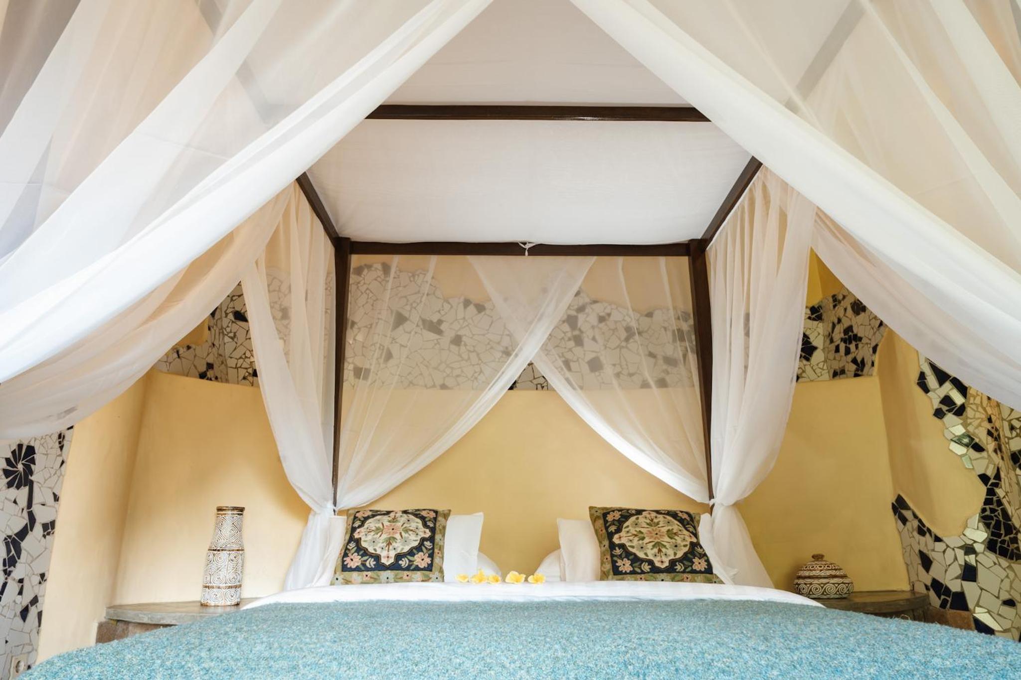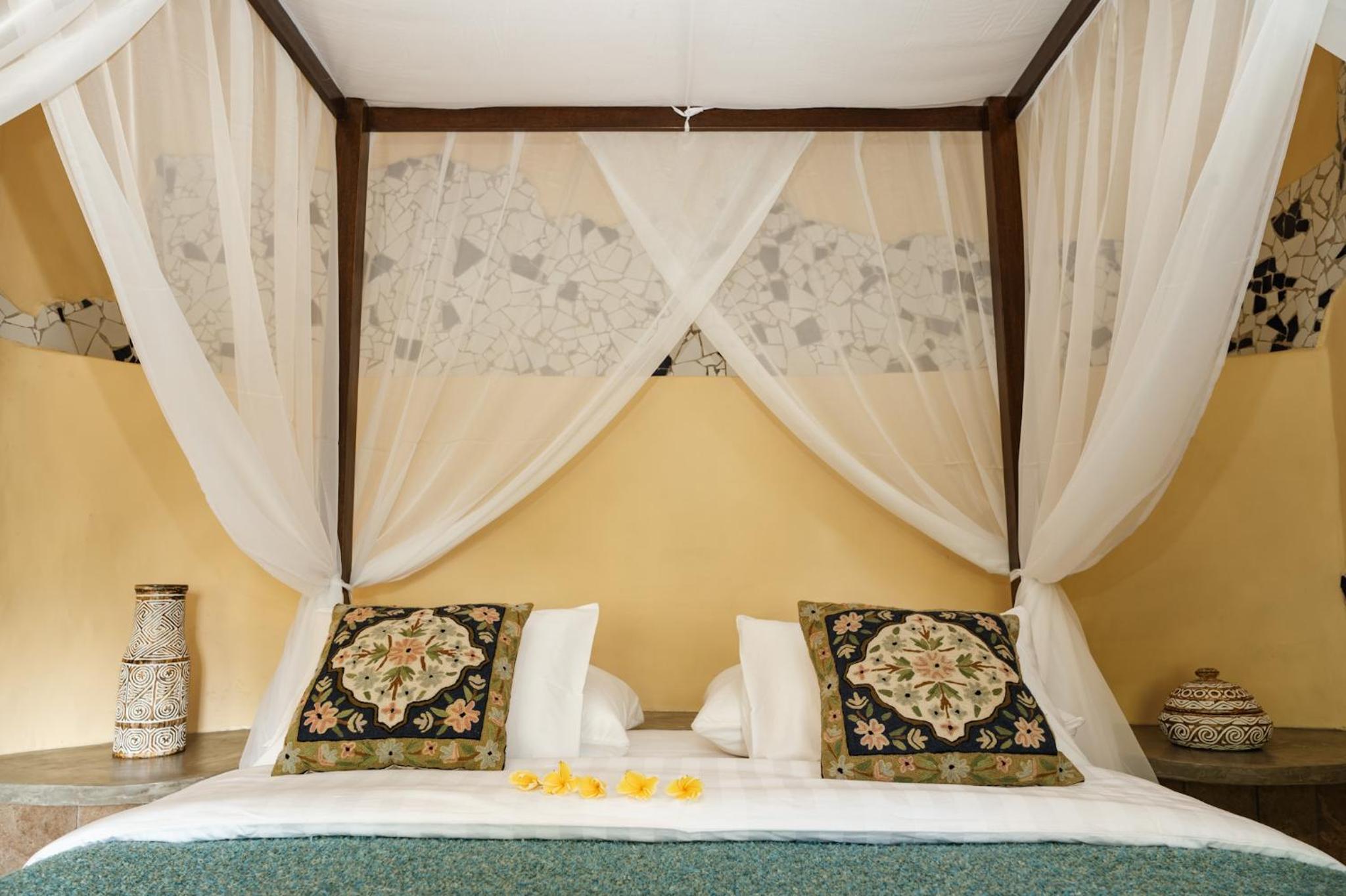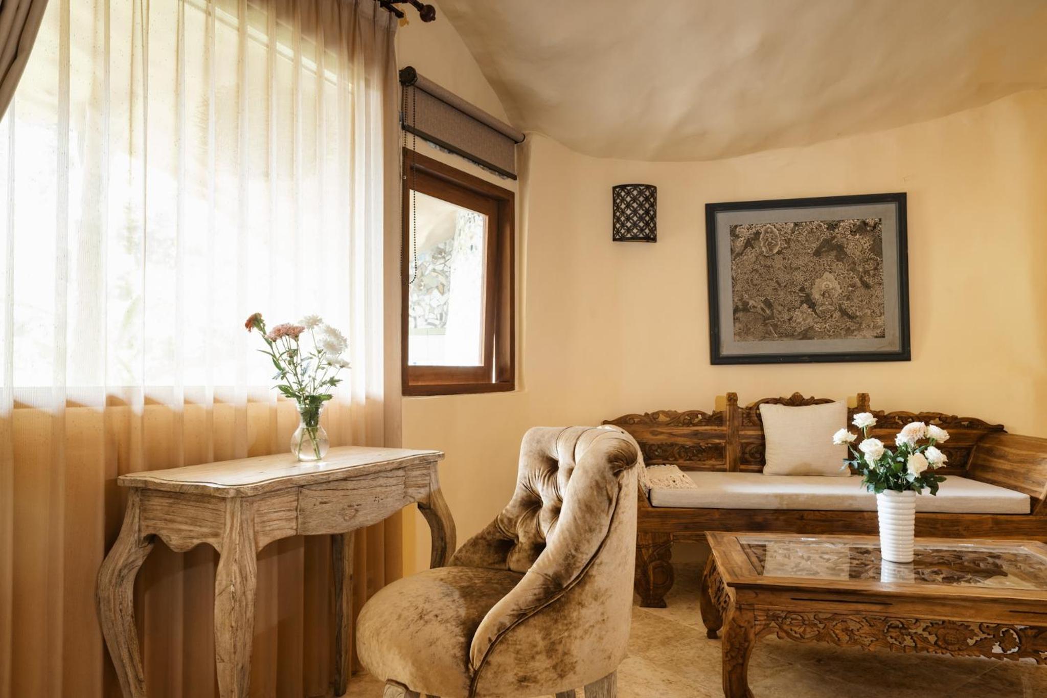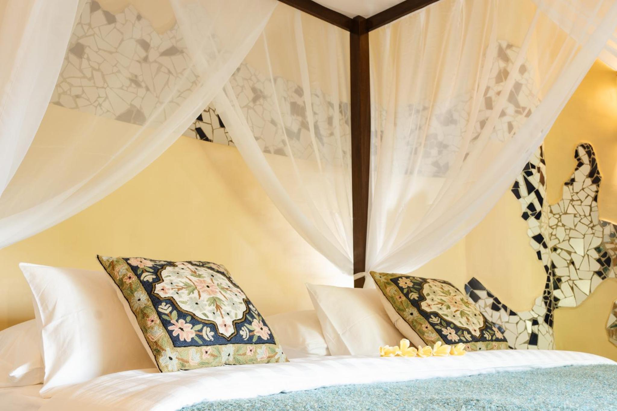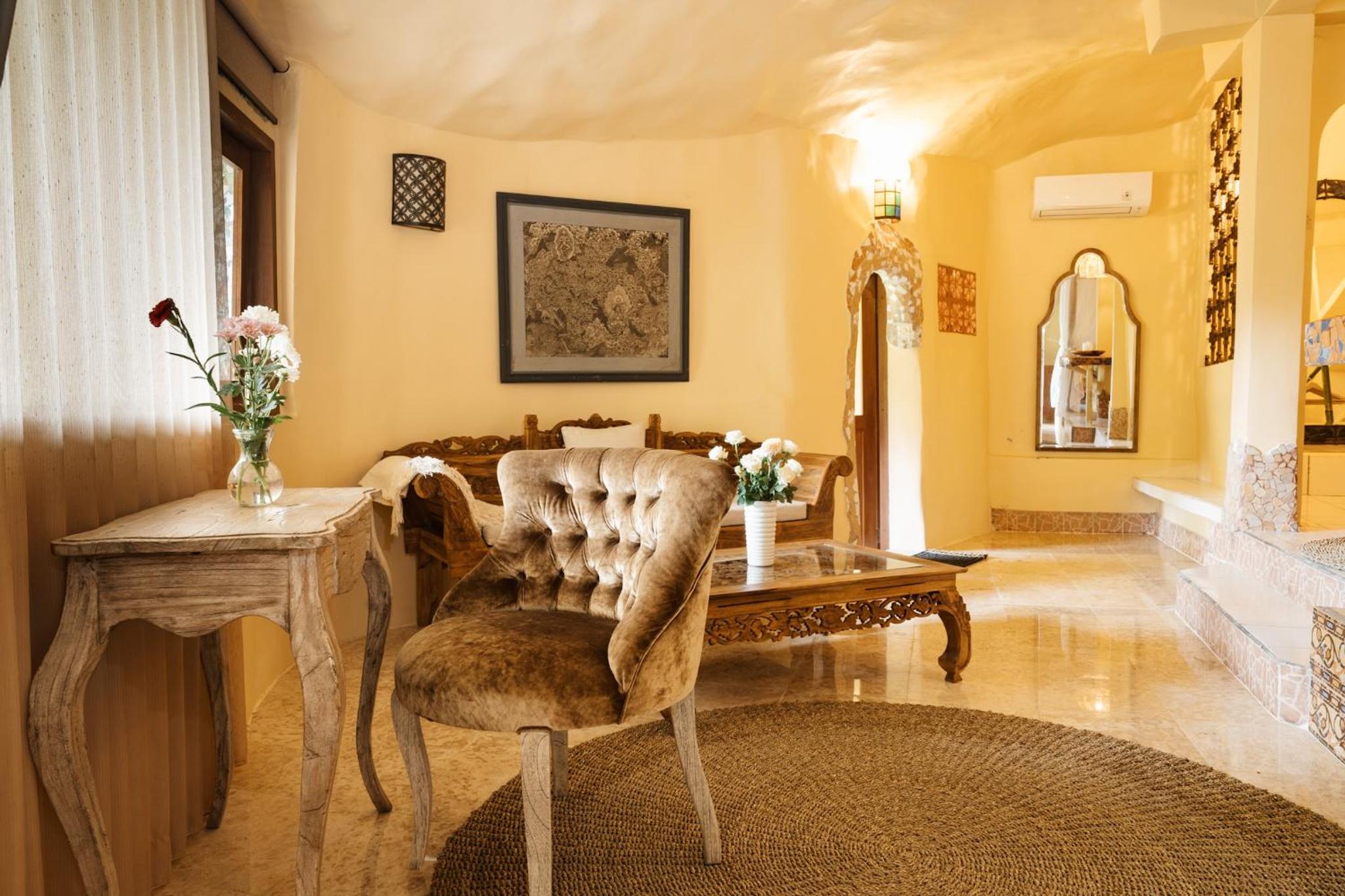 The place is absolutely stunning, designed in a truly original way that combines Gaudí-inspired elements, Balinese influences, and unique artistry. The room was comfortable and inviting, and the staff was warm and attentive. There is a lovely small pool with breathtaking views, and yoga classes are offered on the property. Breakfast is available on-site. We enjoyed our stay very much and will definitely be back.