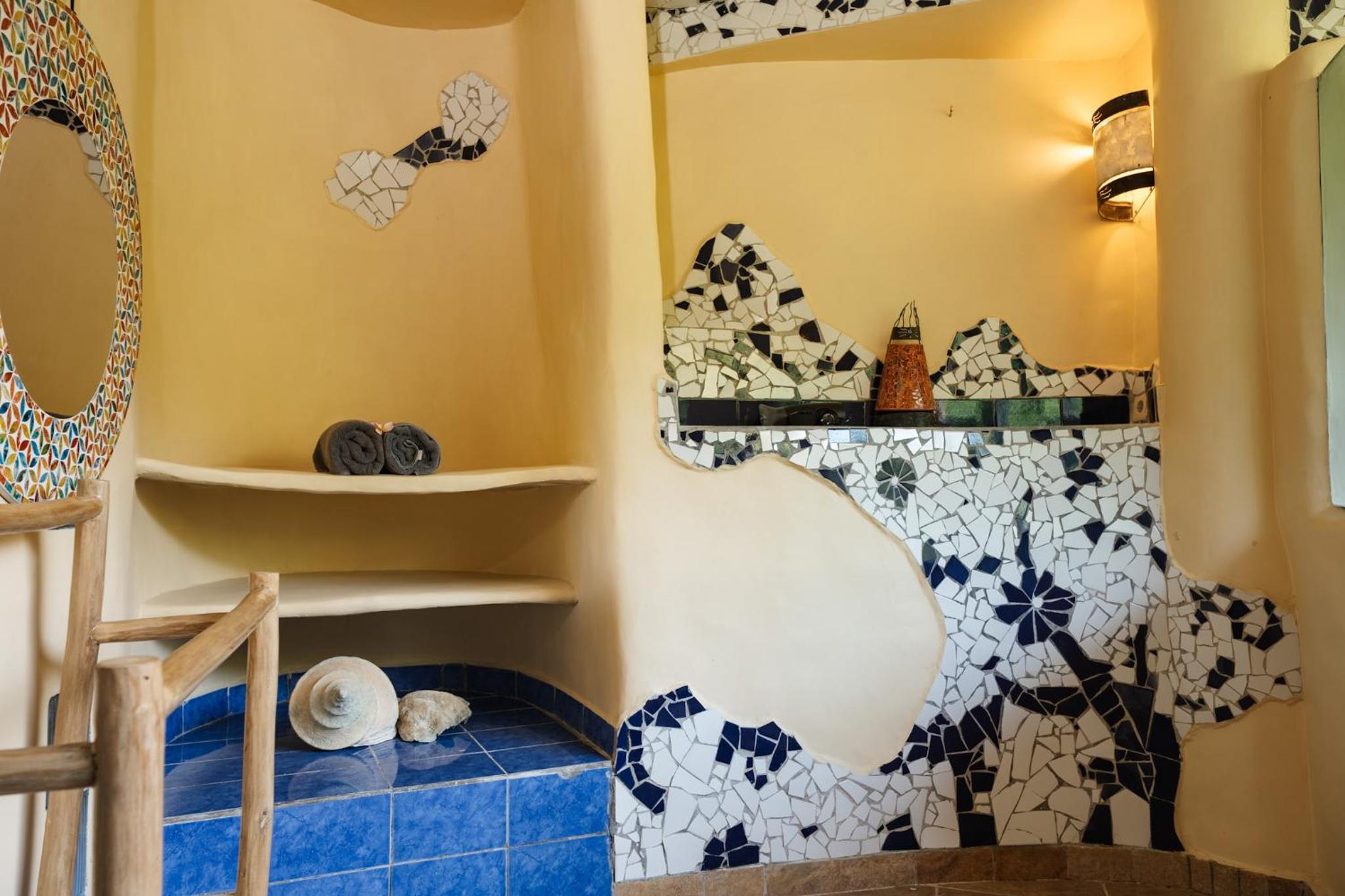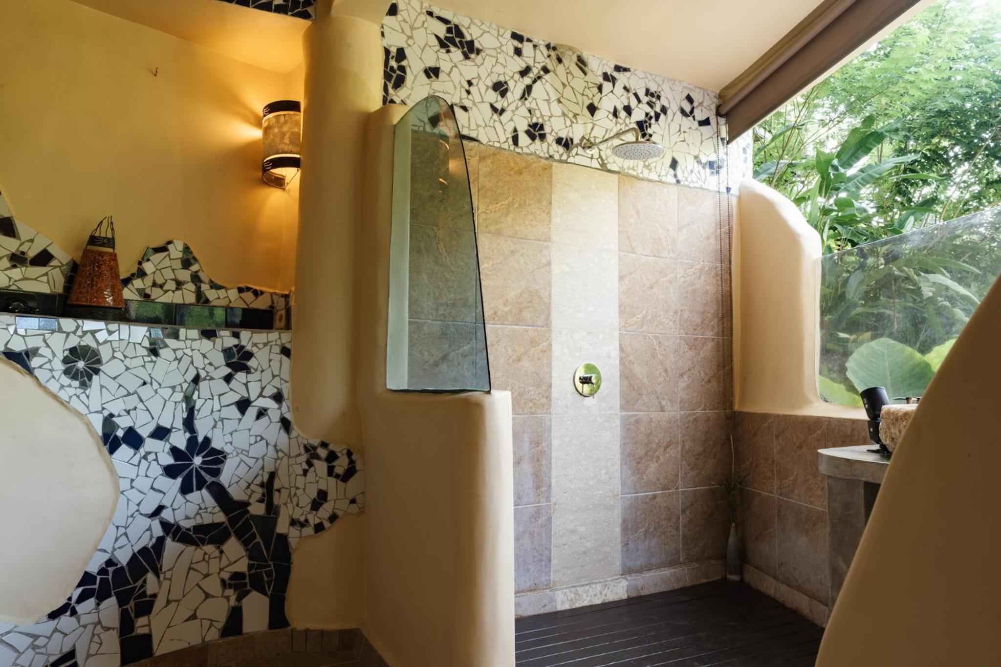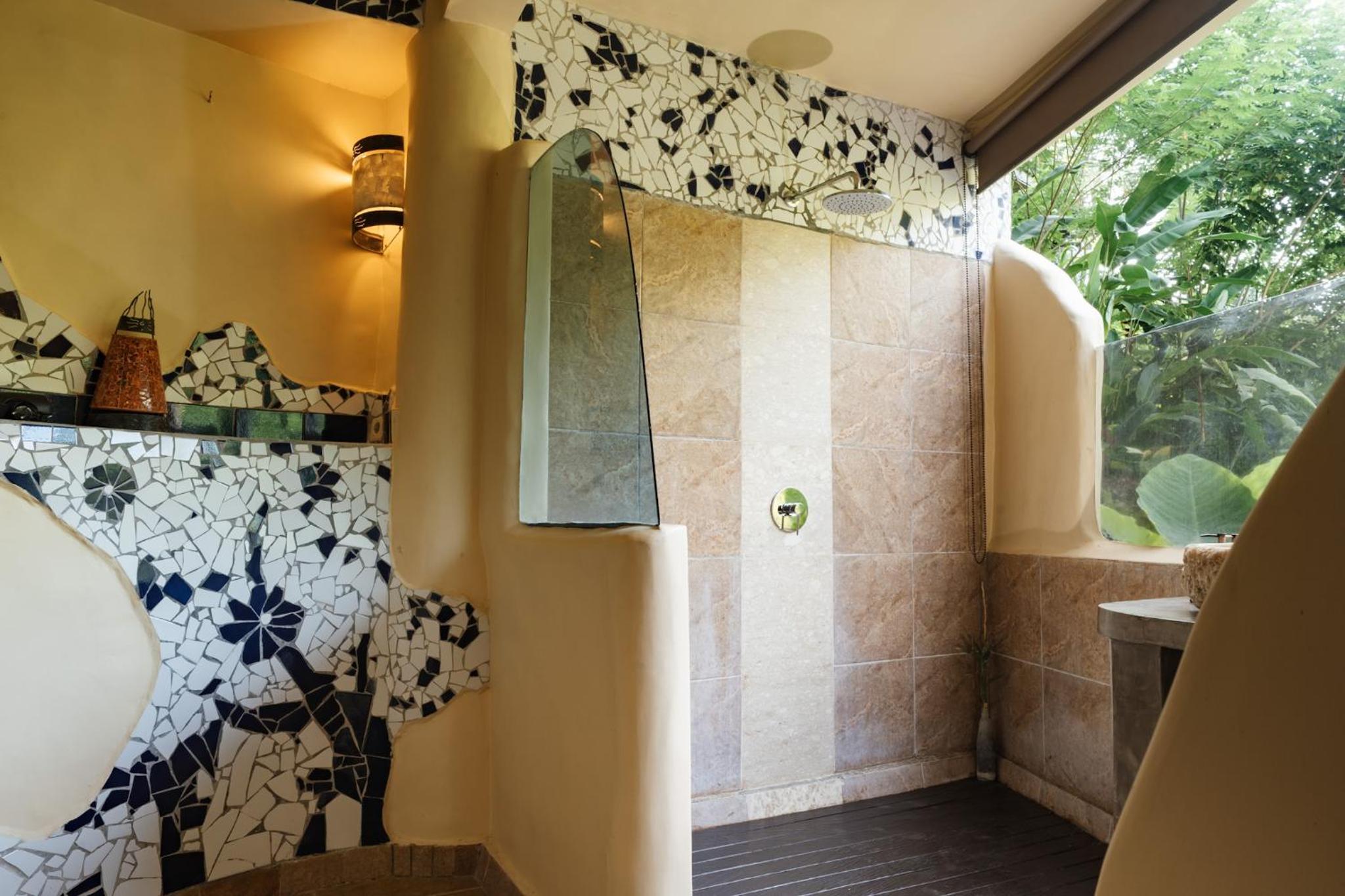 Unique and beautiful architecture and design. The organic shapes and mosaic tiling are thoughtful and charming. The view of the forest and river is lovely. Can tell a lot of love and care went into the crafting of this place.