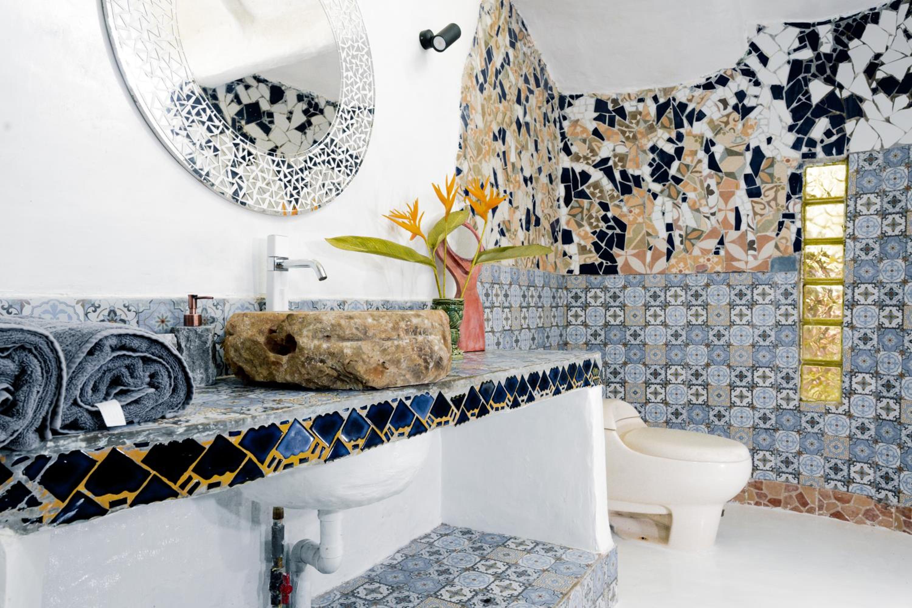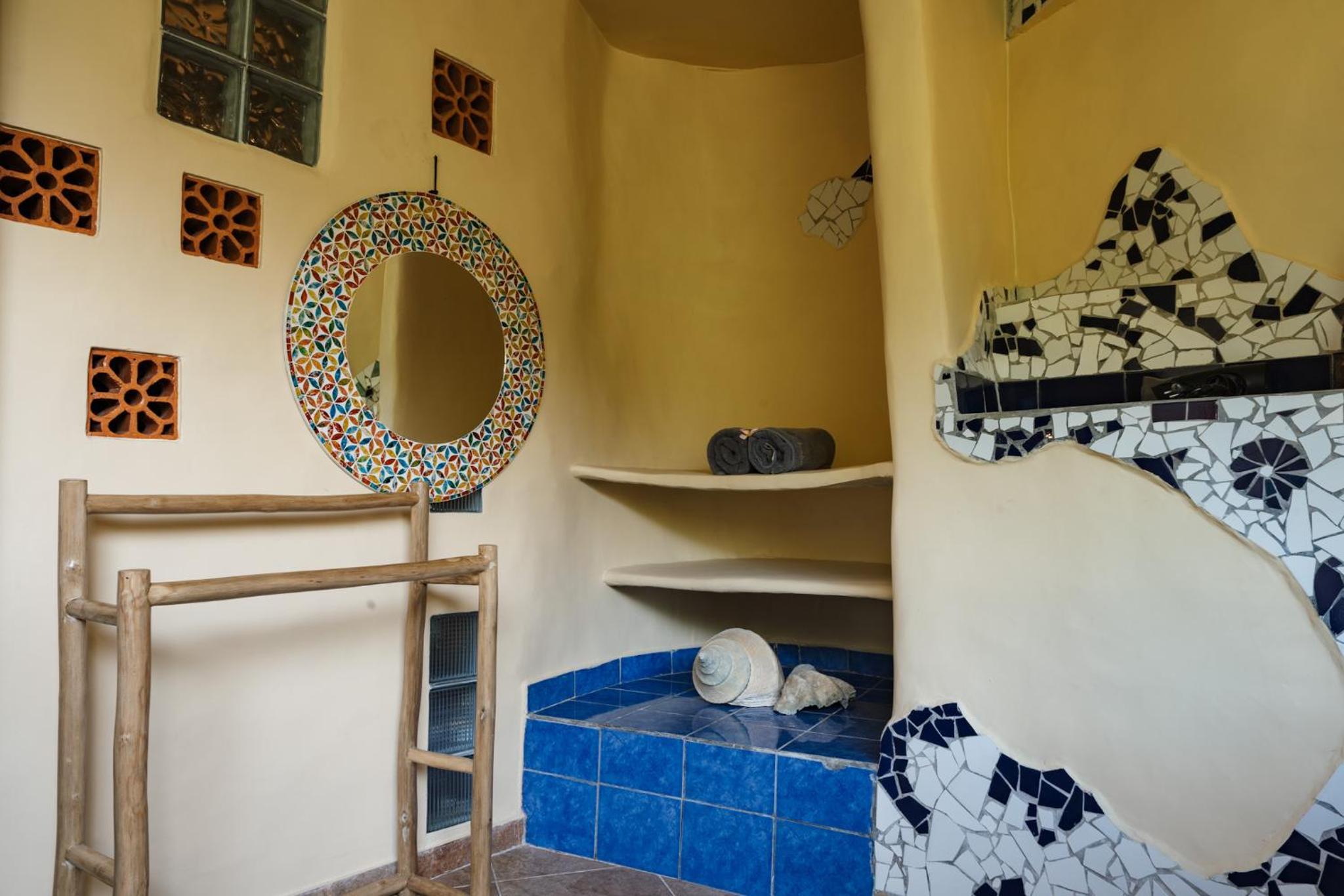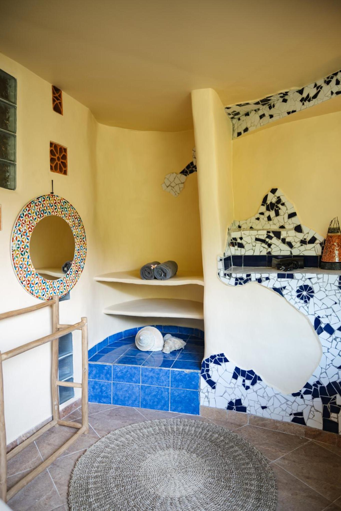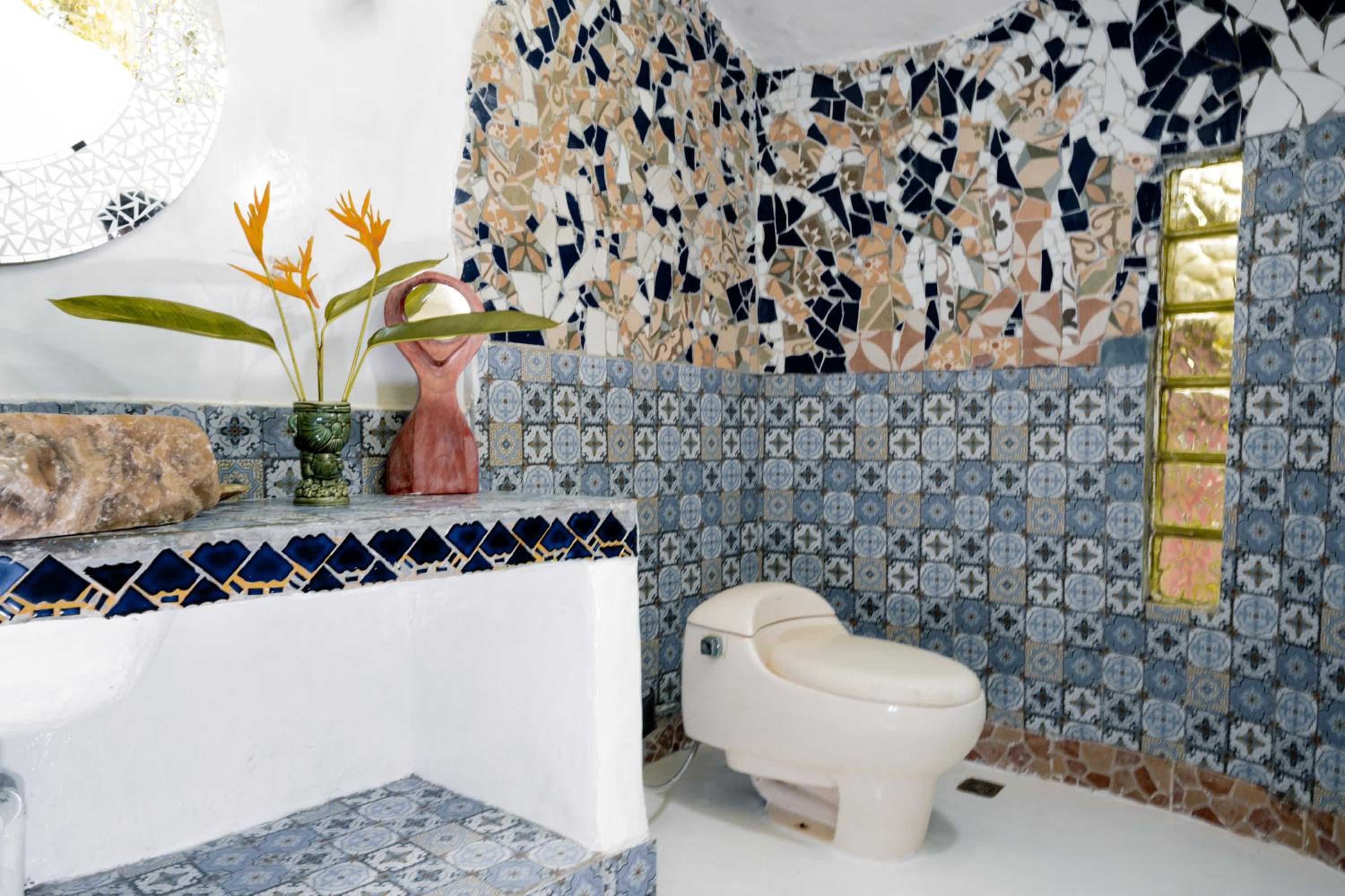 Unique and beautiful architecture and design. The organic shapes and mosaic tiling are thoughtful and charming. The view of the forest and river is lovely. Can tell a lot of love and care went into the crafting of this place.