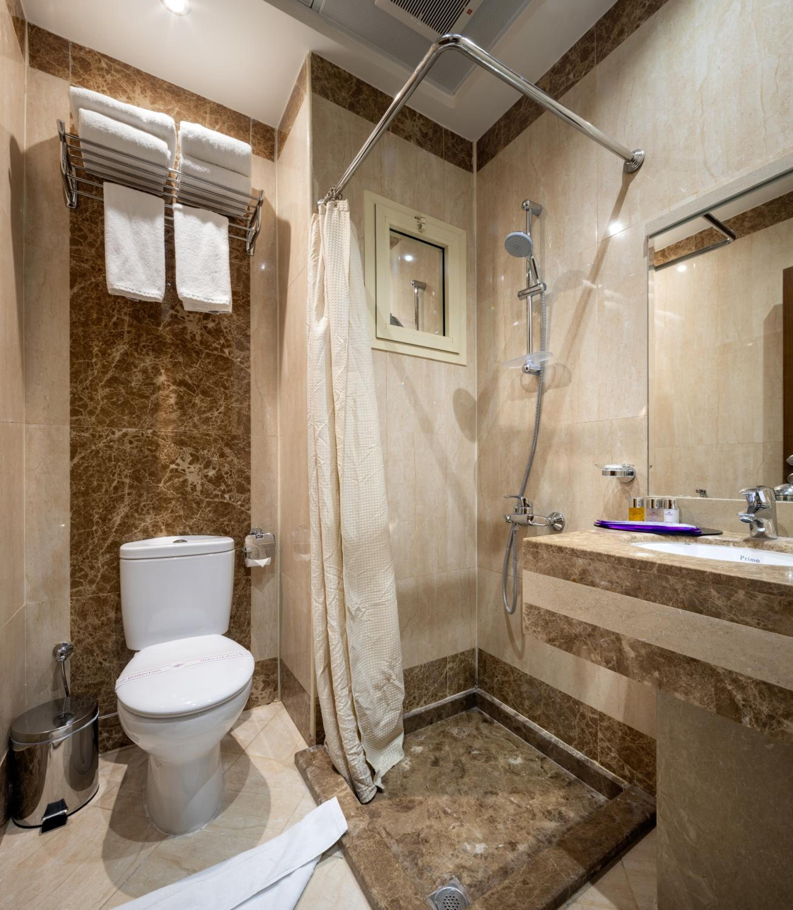 الحمام كان يصدر رائحة كريهة من البالوعة، وتم تغيير الغرفة اكثر من مره، ولكن مازالت الرائحة موجودة ومزعجة، ولكن عالجوها ببخاخ الجوء ( معطر الجو ).