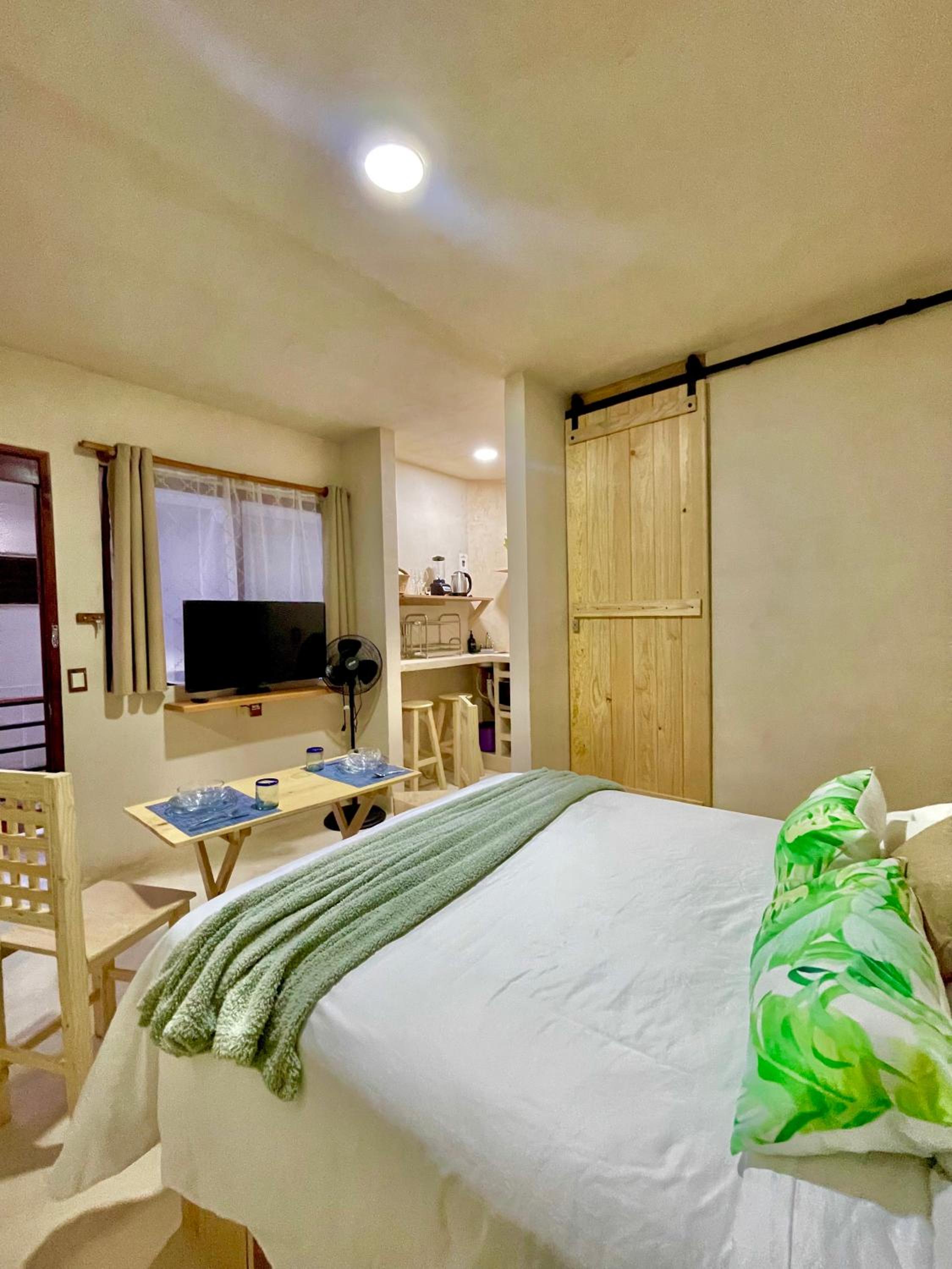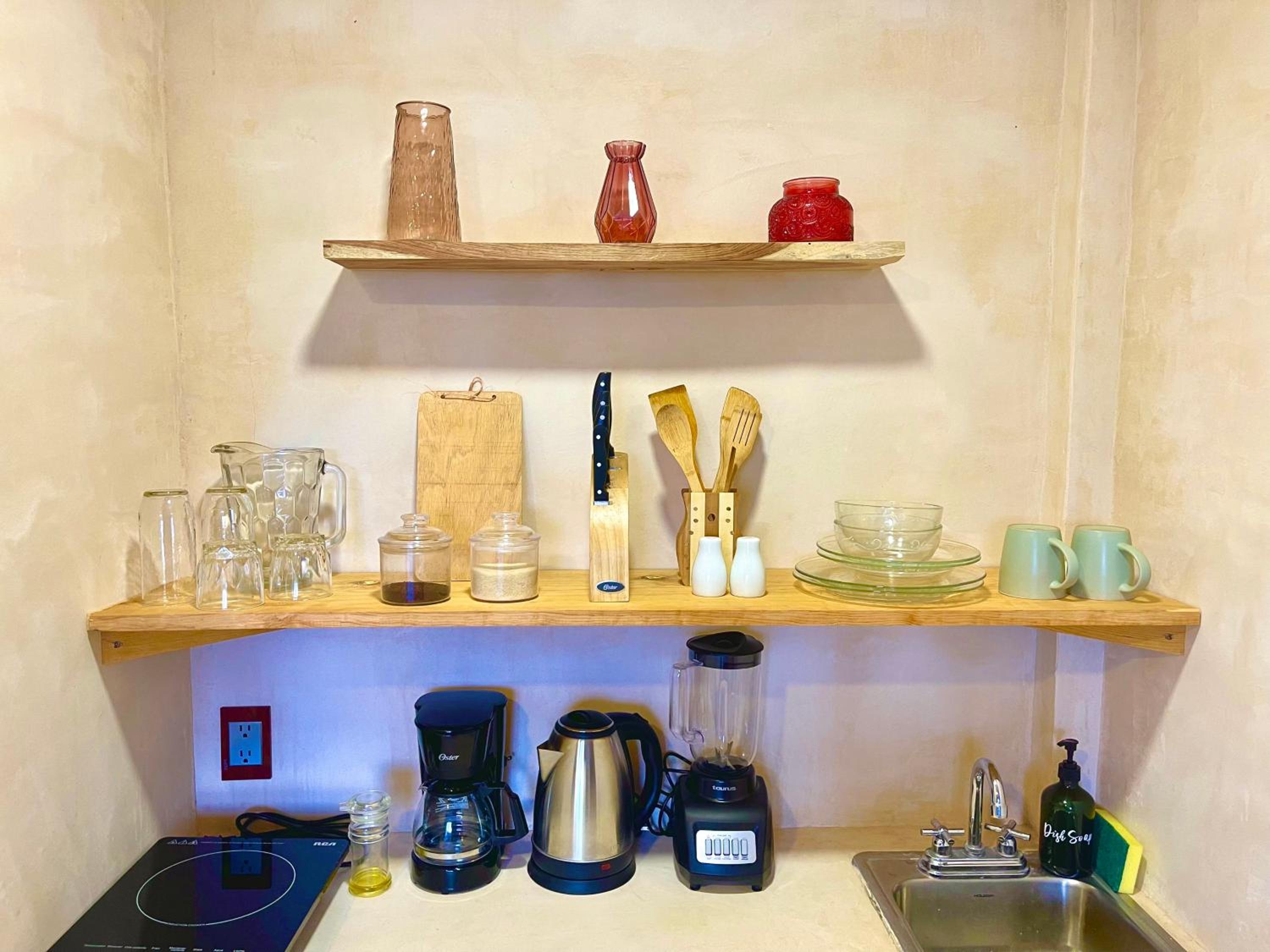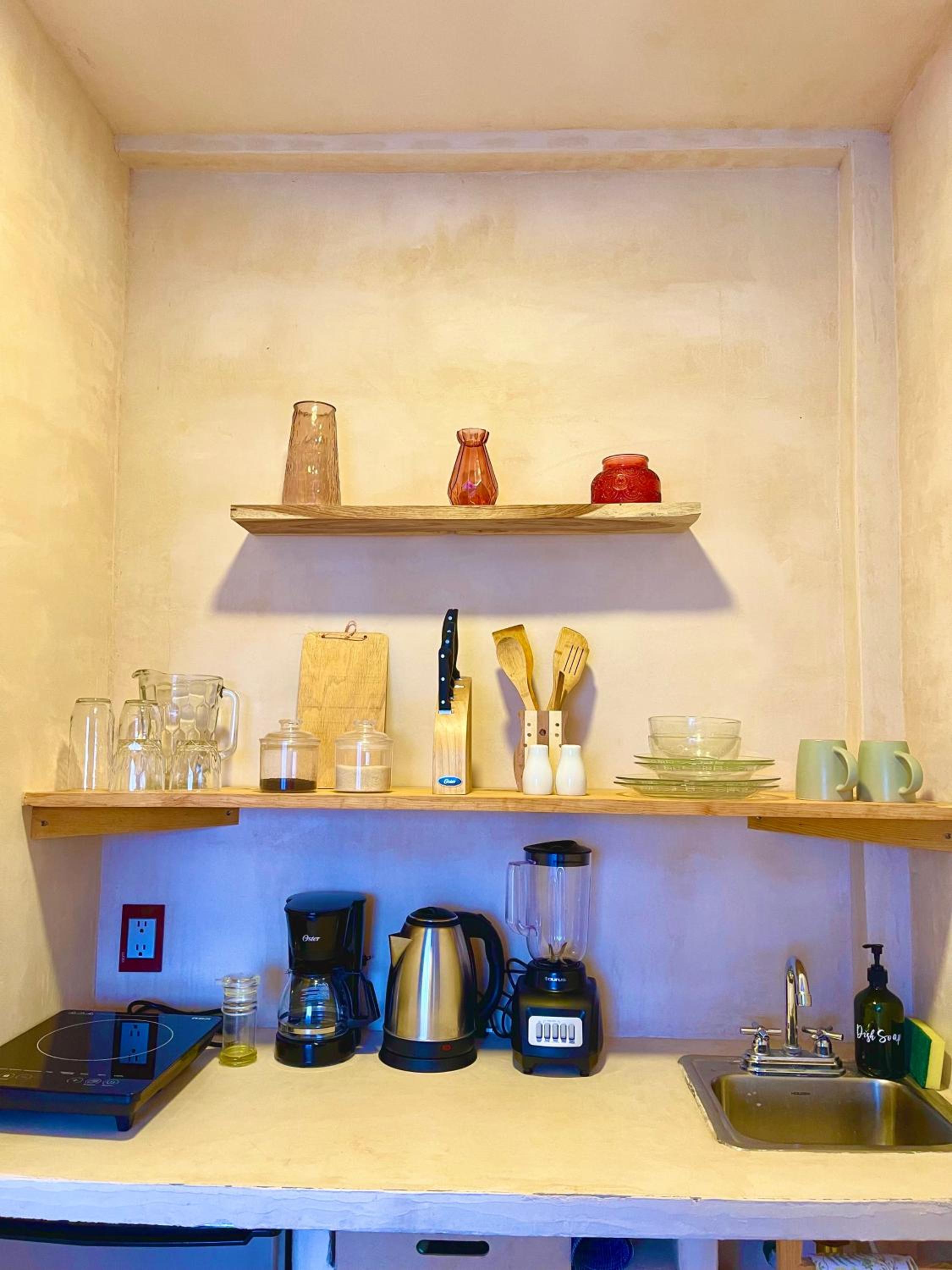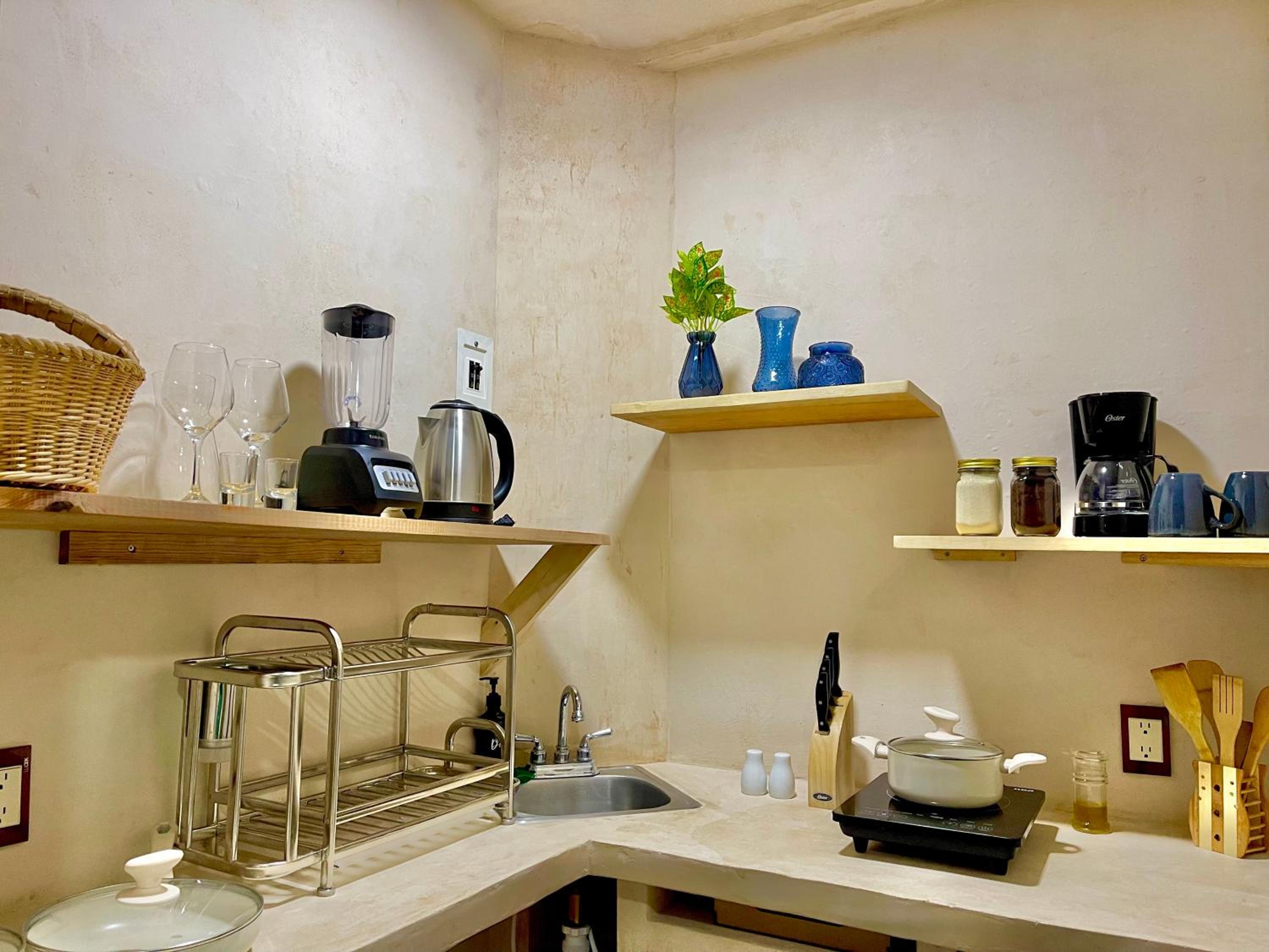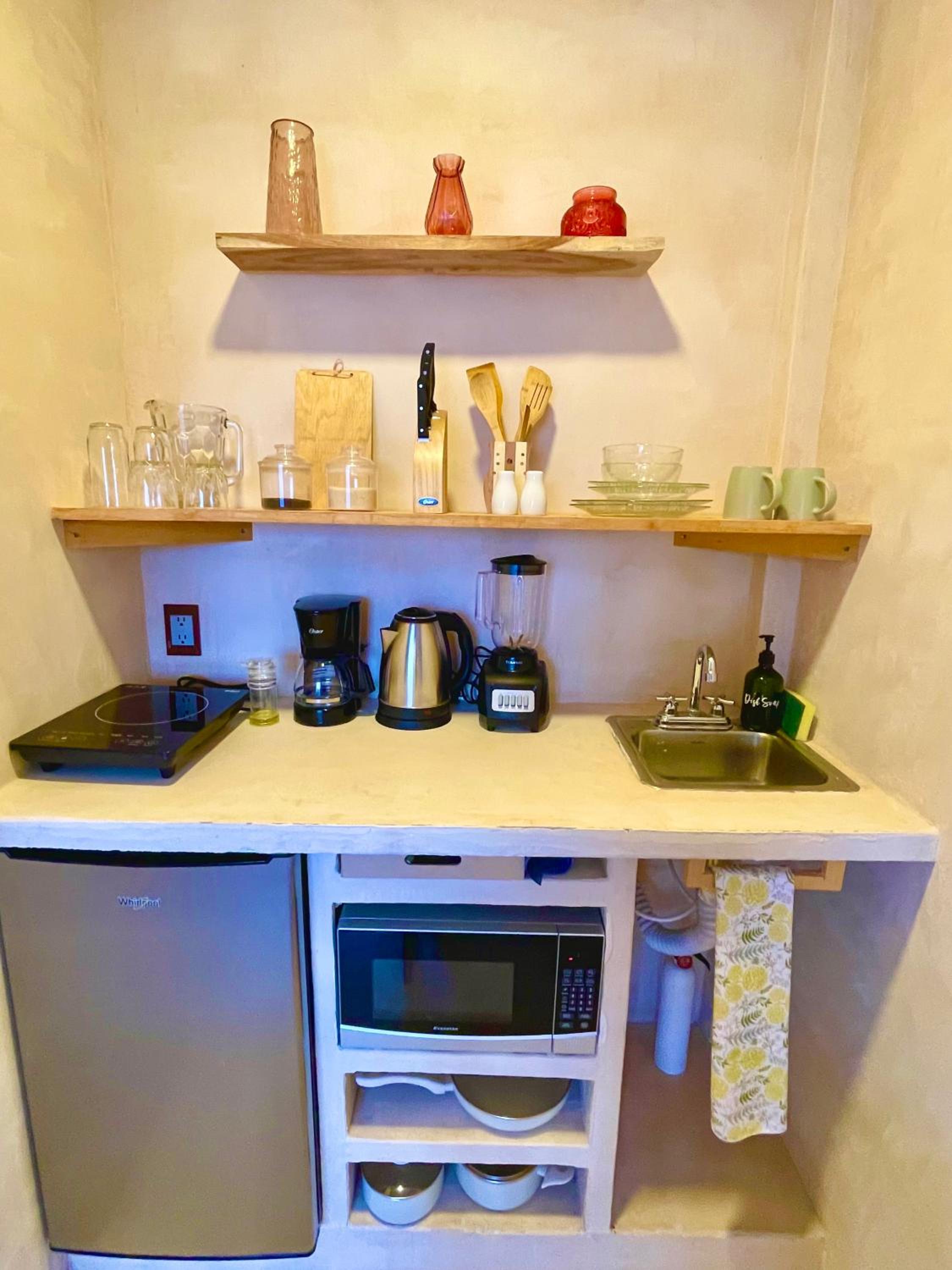 Tiene todo para estar súper cómodo, te dejan café y una cocina con lo necesario más tu balcón. Bellísimo lugar