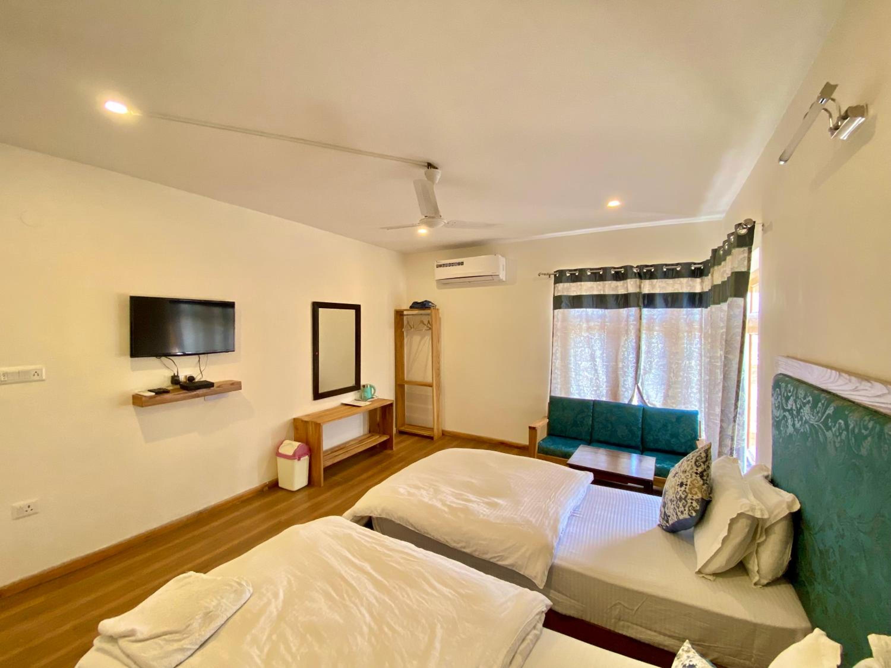 Experience a cozy stay at Hotel Palam Hills with well-equipped rooms offering garden views, flat-screen TVs, and private bathrooms. Relax in the seating area and enjoy the convenience of room service and free WiFi during your stay.